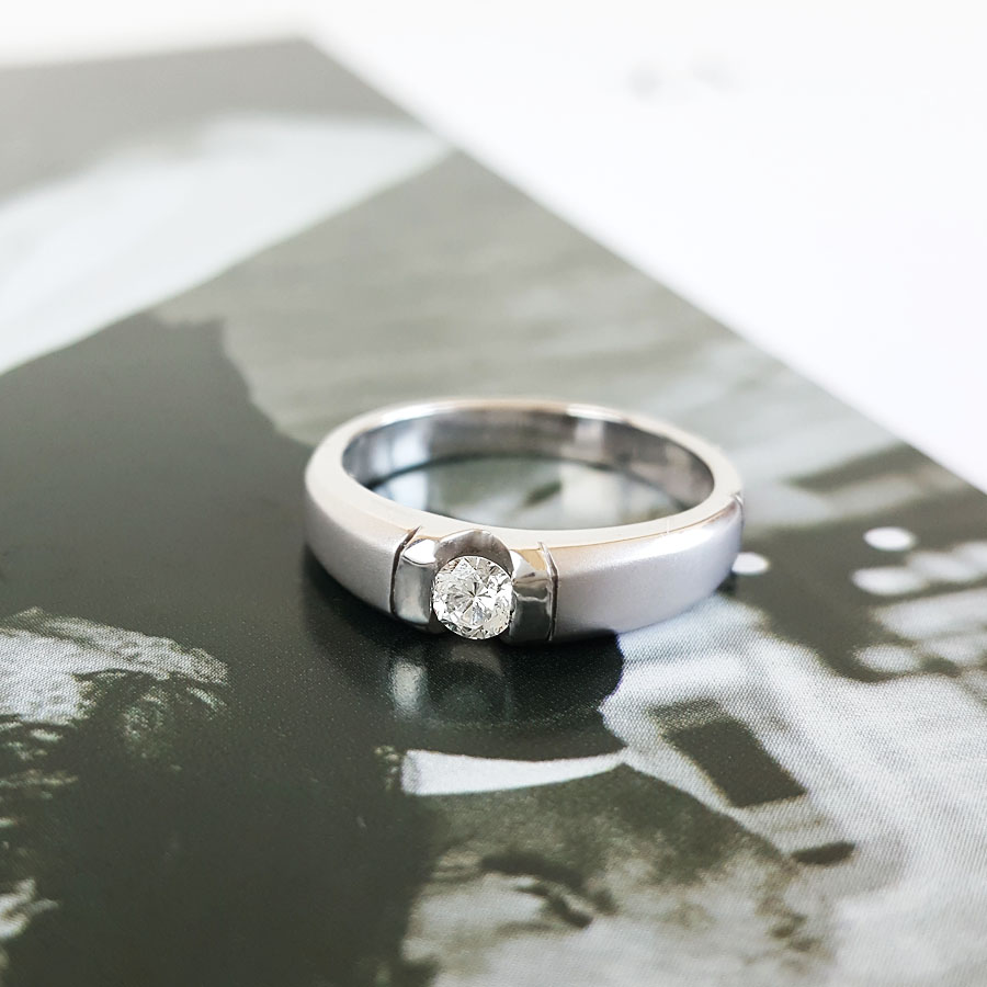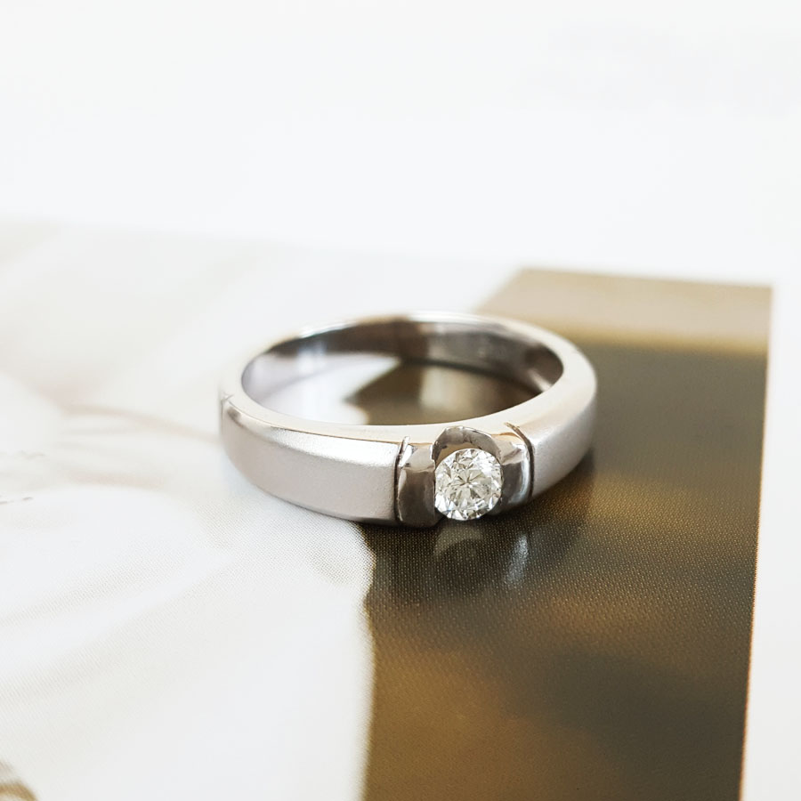 款式 | AU750白金时尚经典款0.16克拉钻石磨砂戒指 |