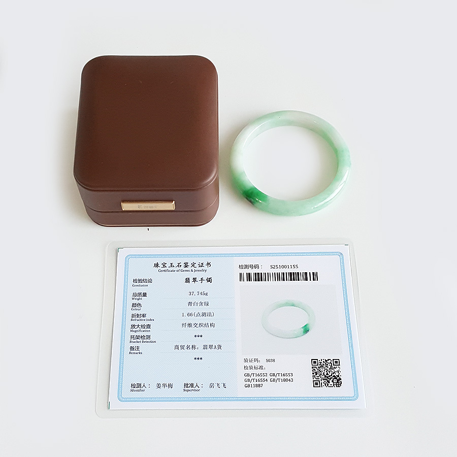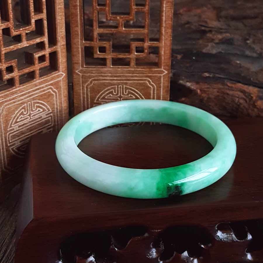 名称 | 天然细腻糯种飘辣阳绿54号翡翠手镯 |