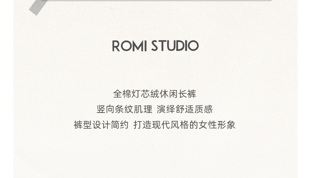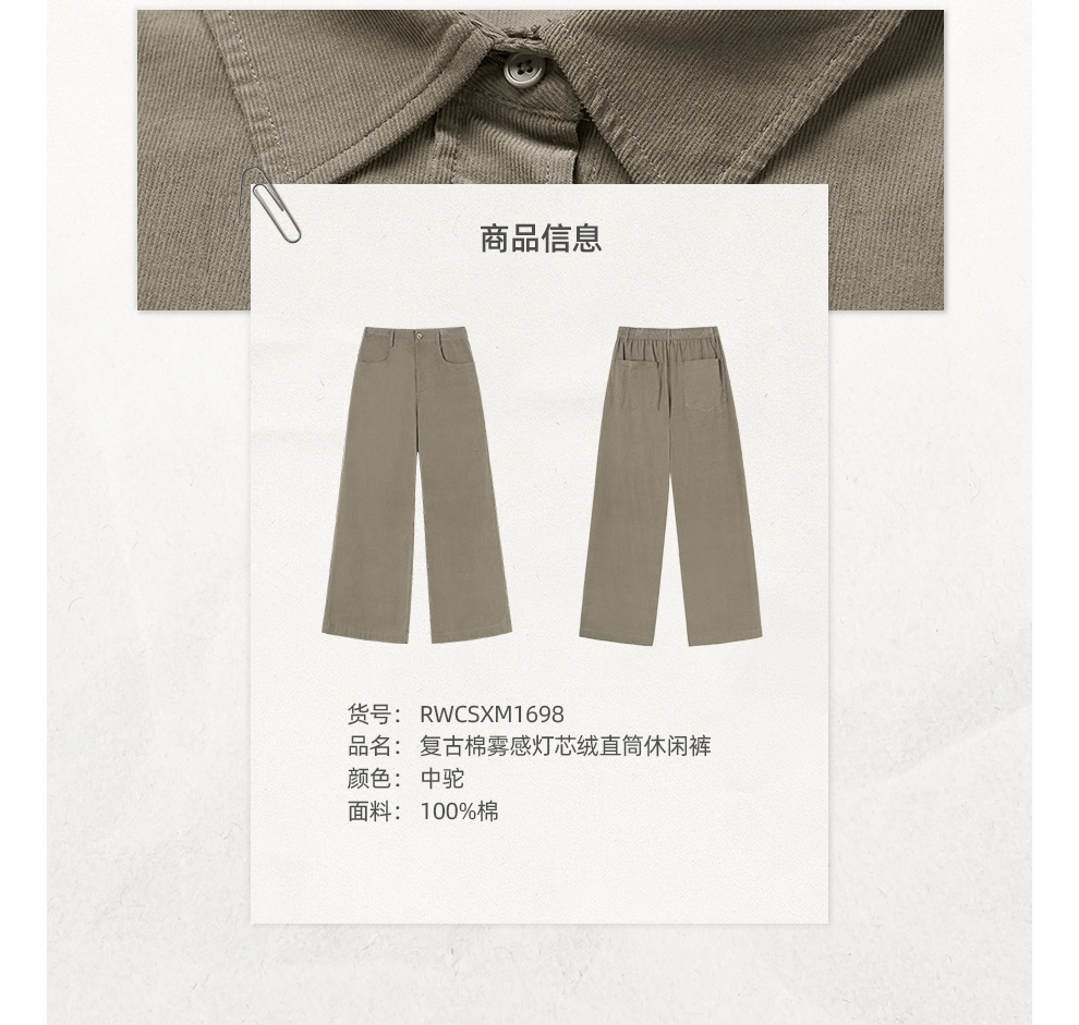 ROMI STUDIO“松弛复古”100棉灯芯绒雾感宽松直筒休闲裤RWCSXM1698