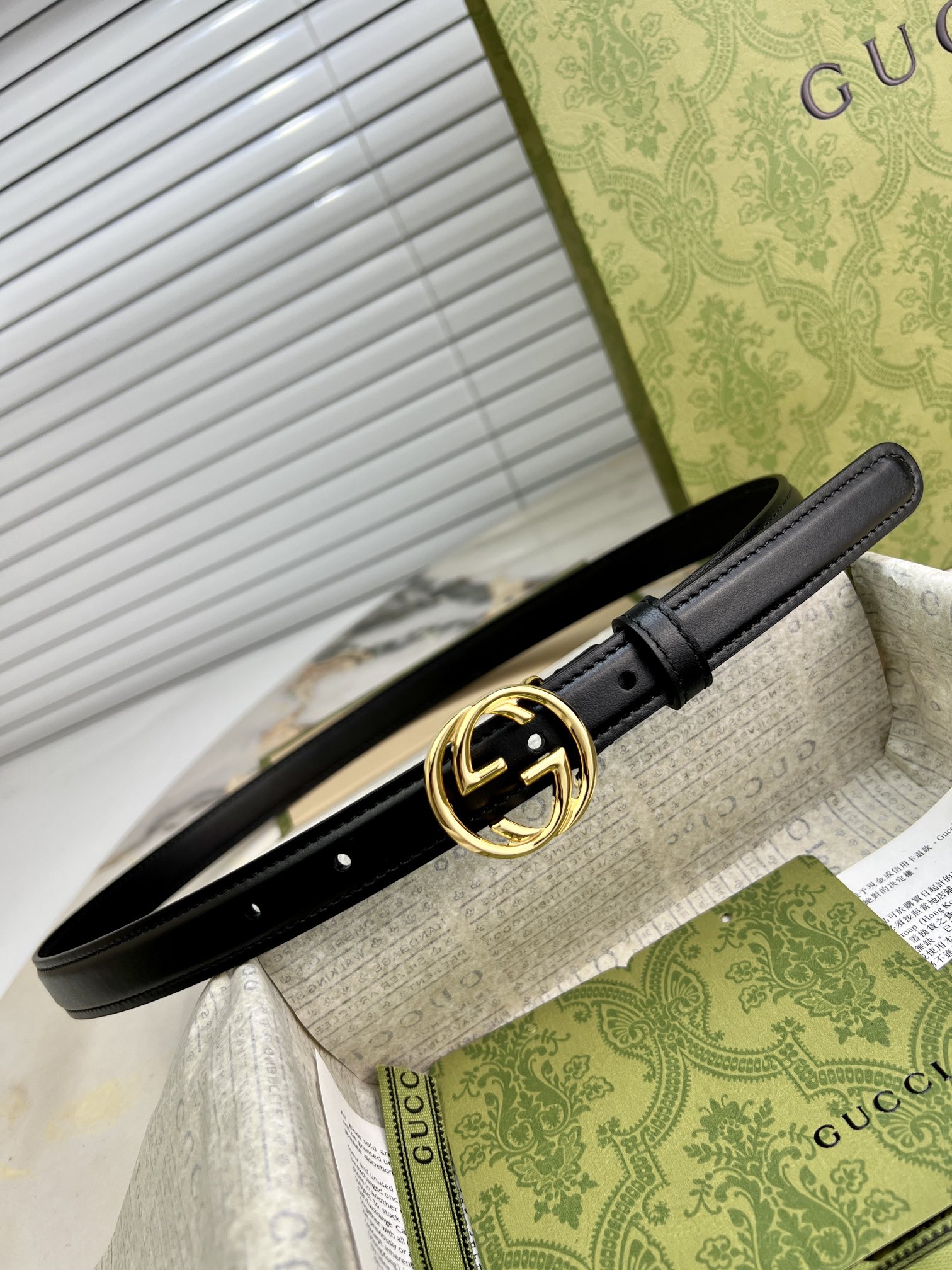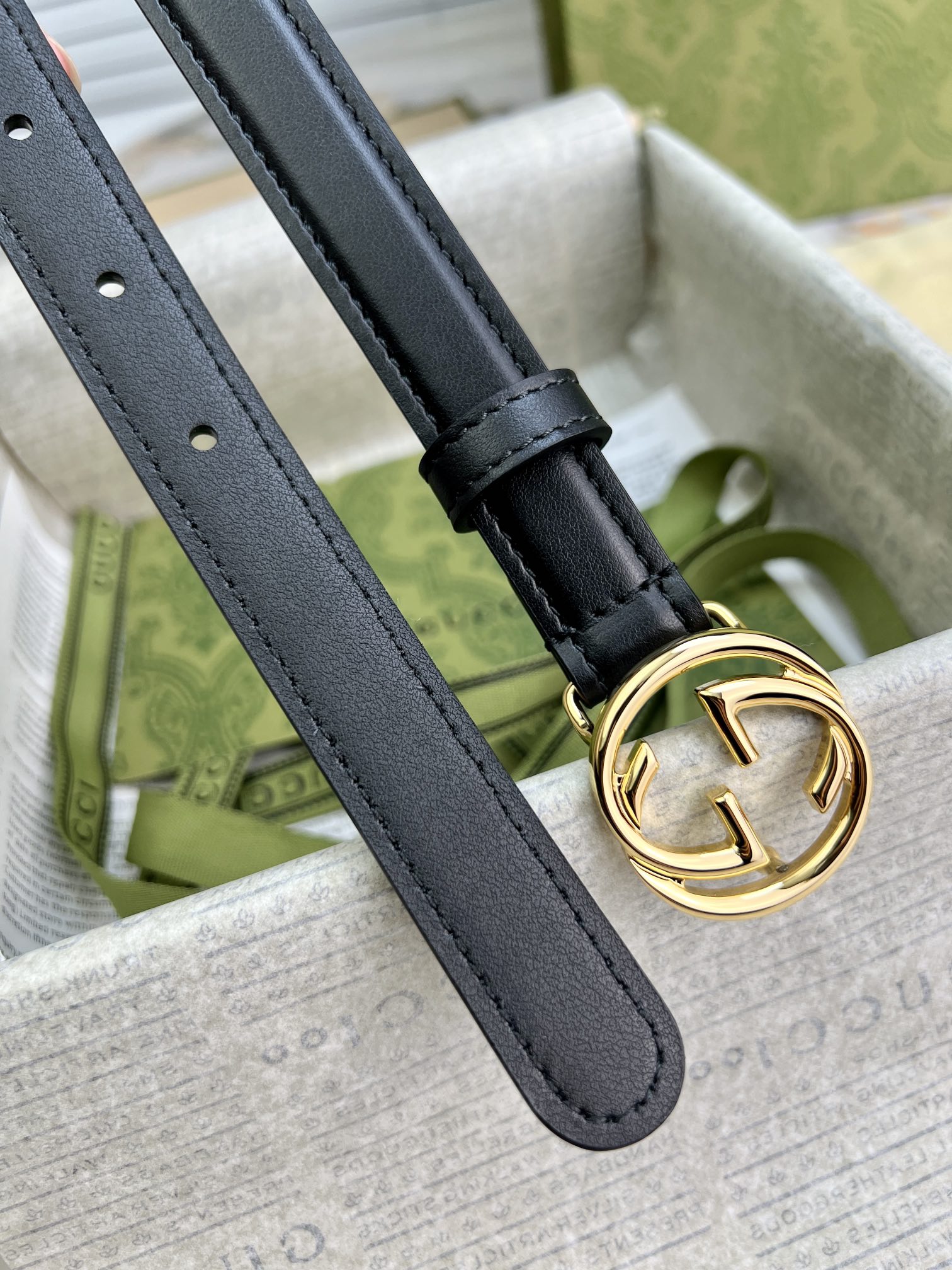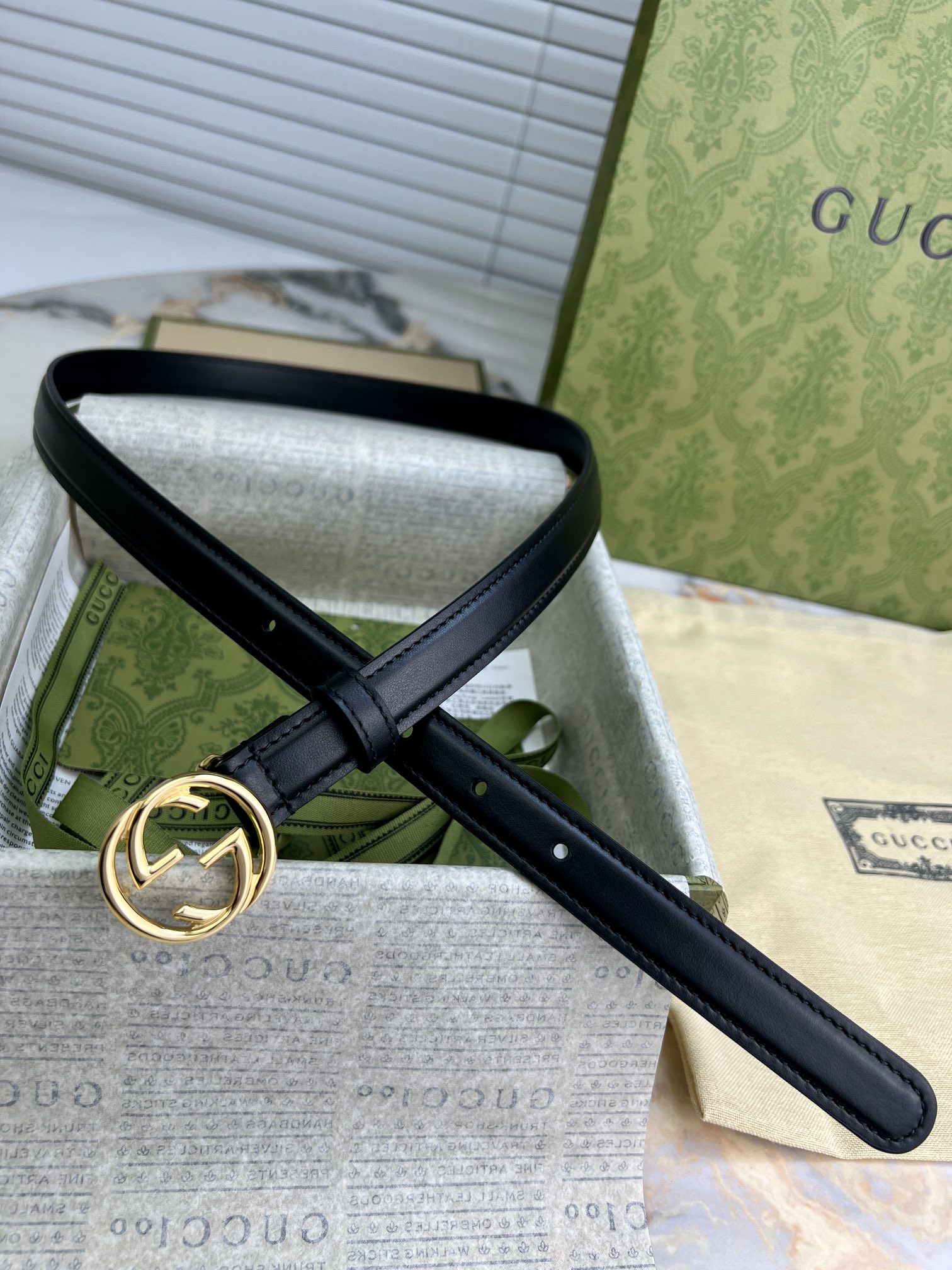 GU 腰带 光面平纹牛皮🐂 专属定制真空电镀亮面五金 ,😍时尚出行 🎁配专柜全套包装,宽:2cm