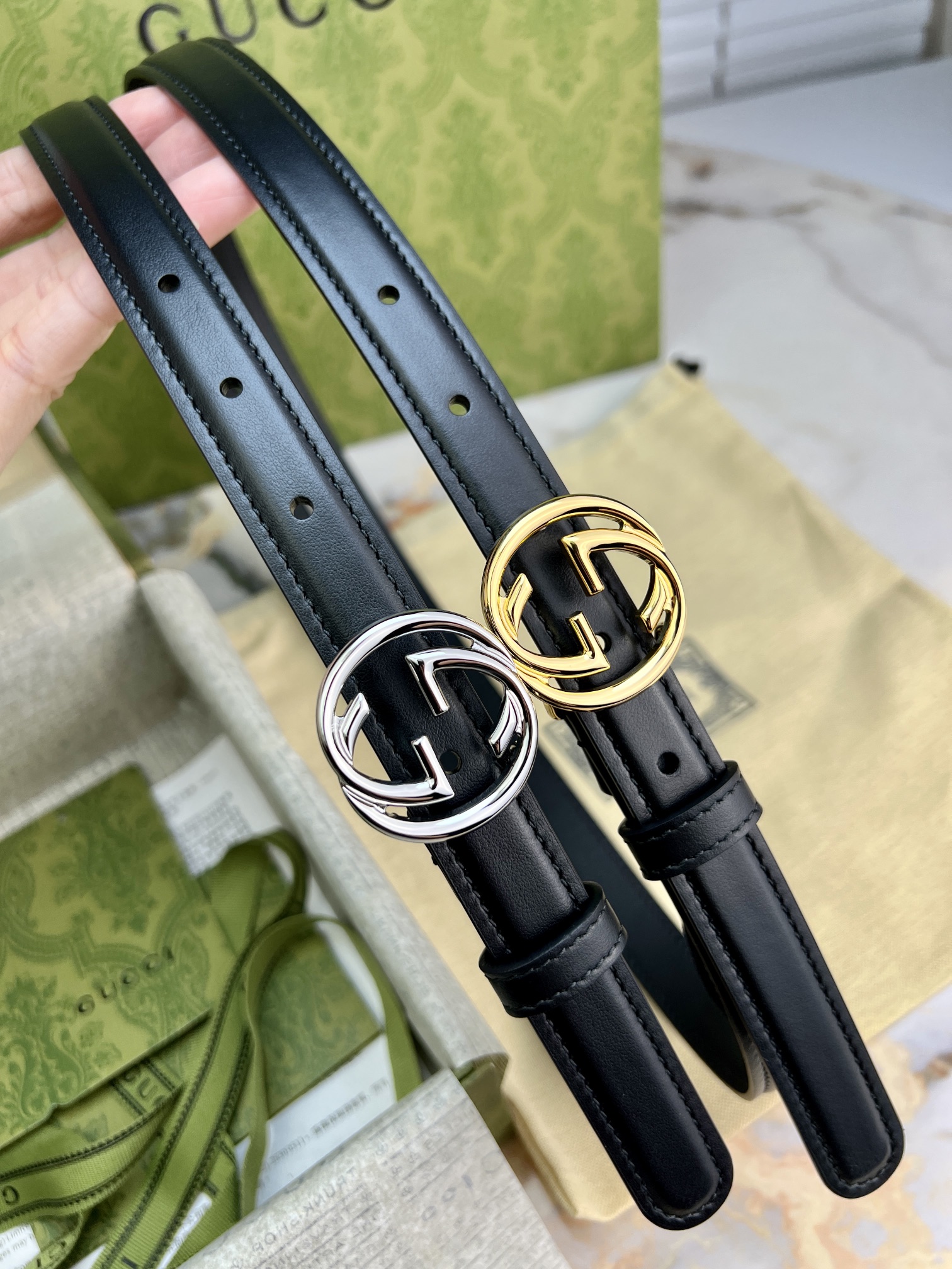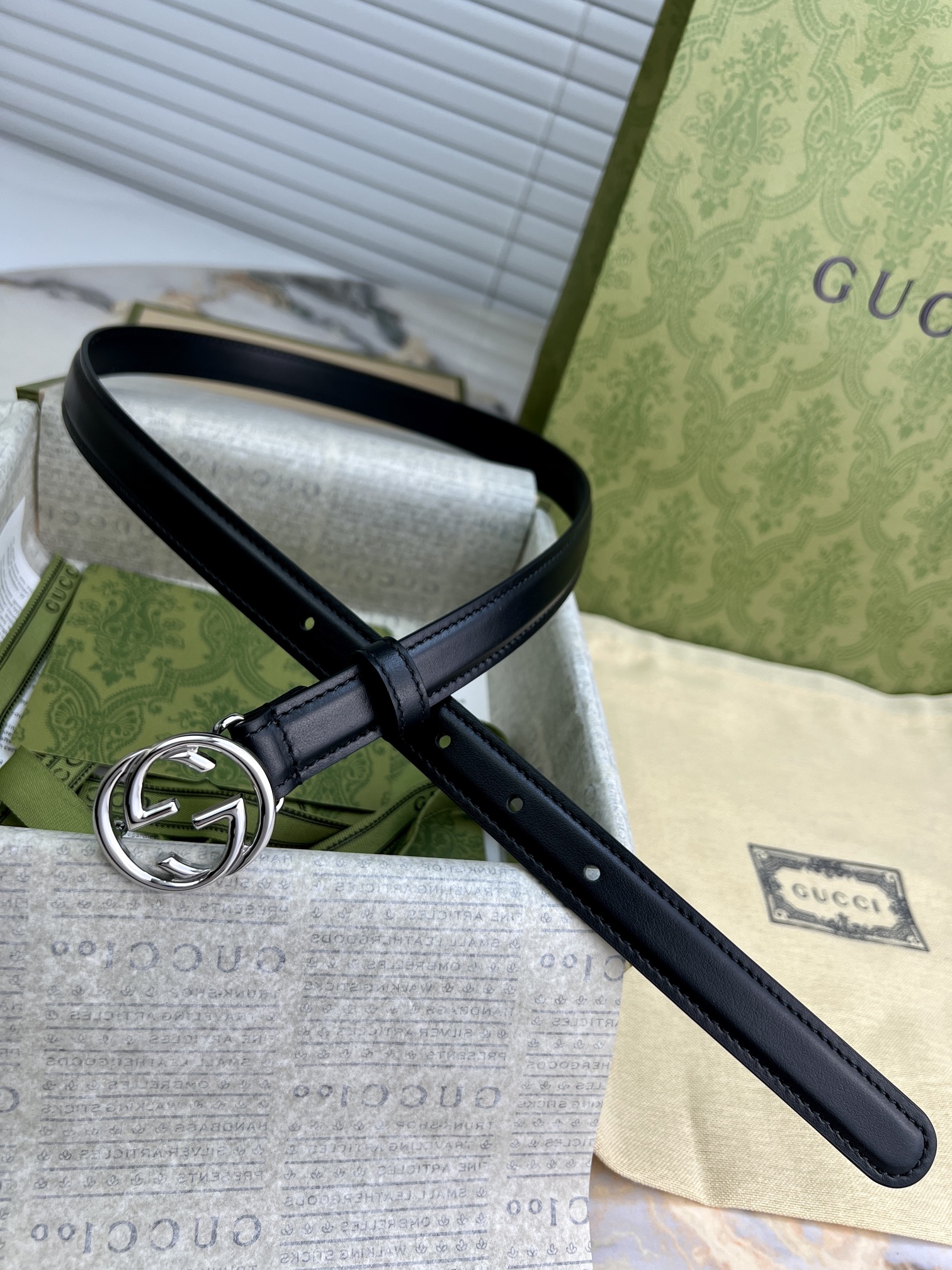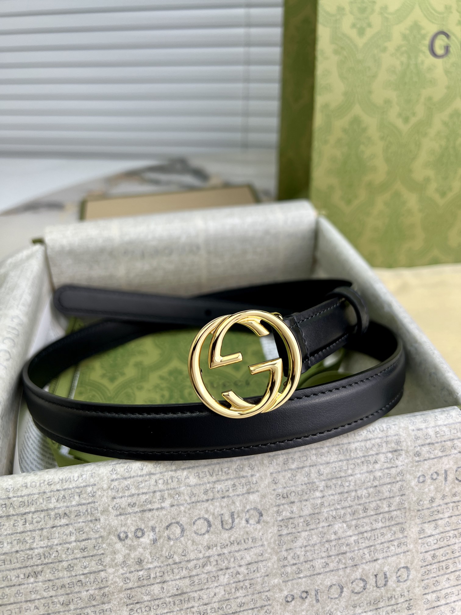 GU 腰带 光面平纹牛皮🐂 专属定制真空电镀亮面五金 ,😍时尚出行 🎁配专柜全套包装,宽:2cm