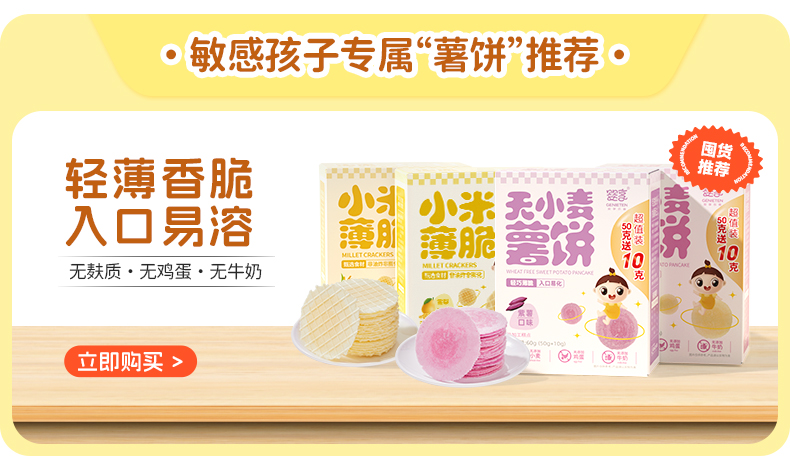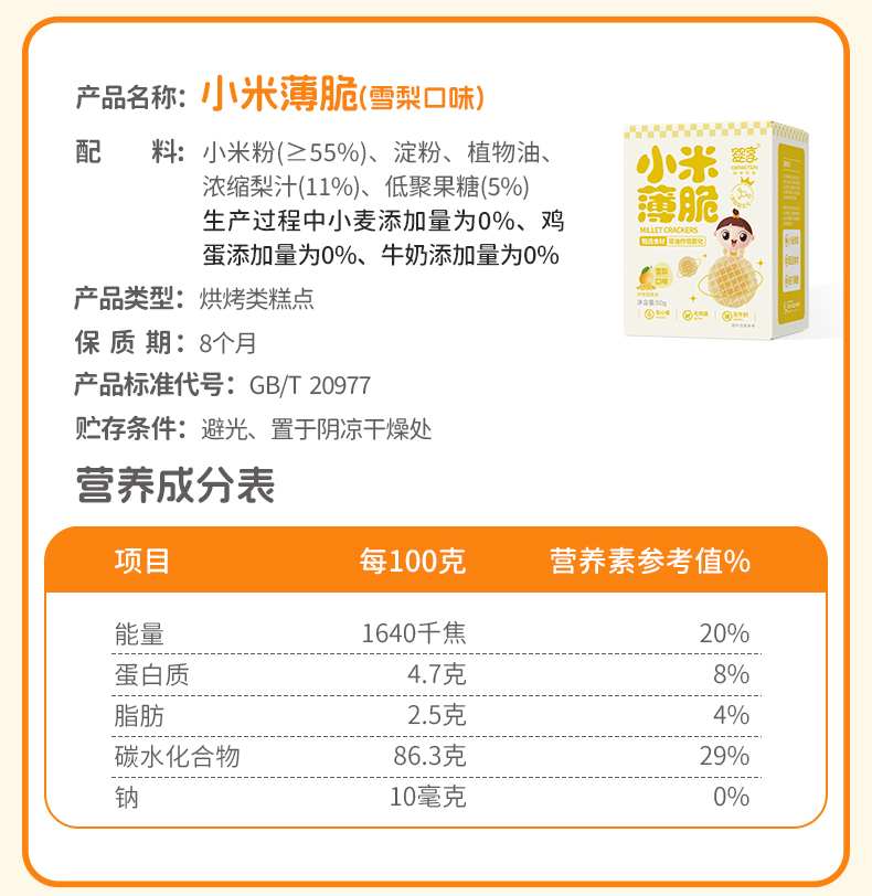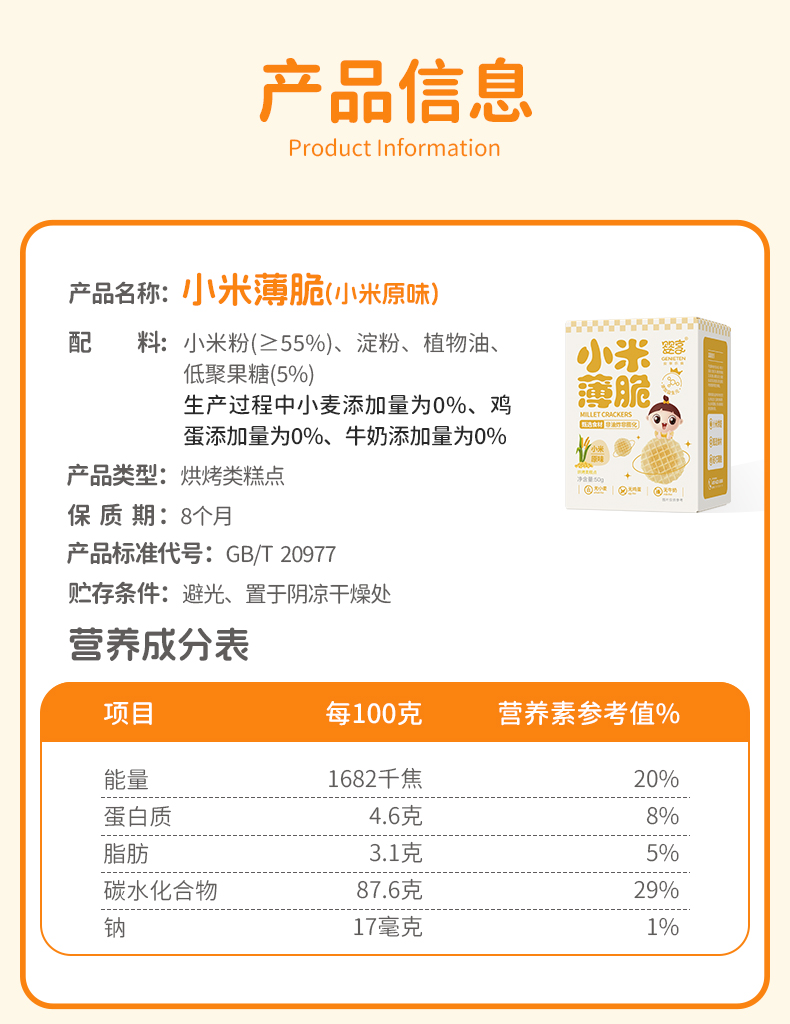 婴享无小麦小米薄脆休闲零食营养饼干儿童送婴幼儿宝宝辅食谱