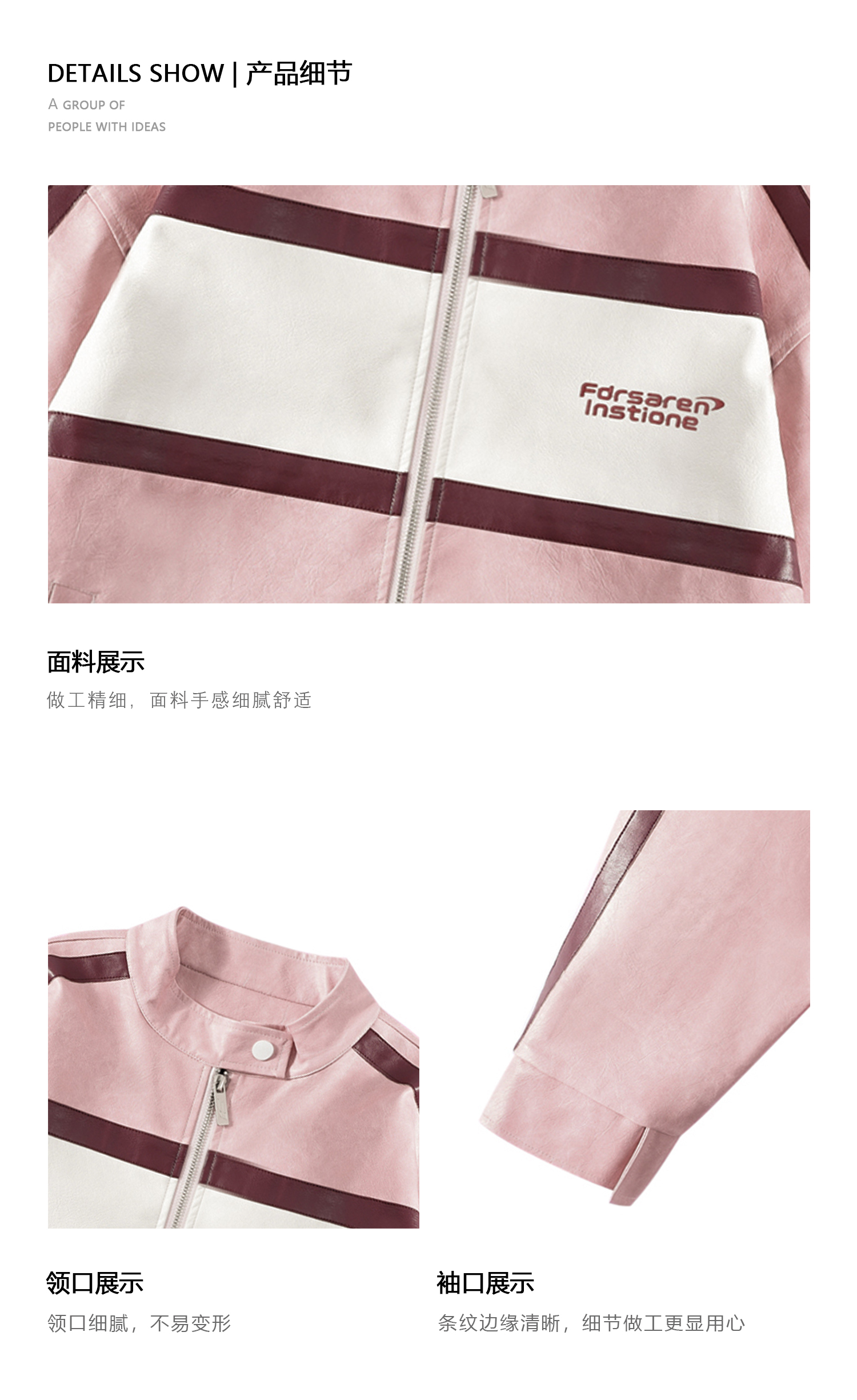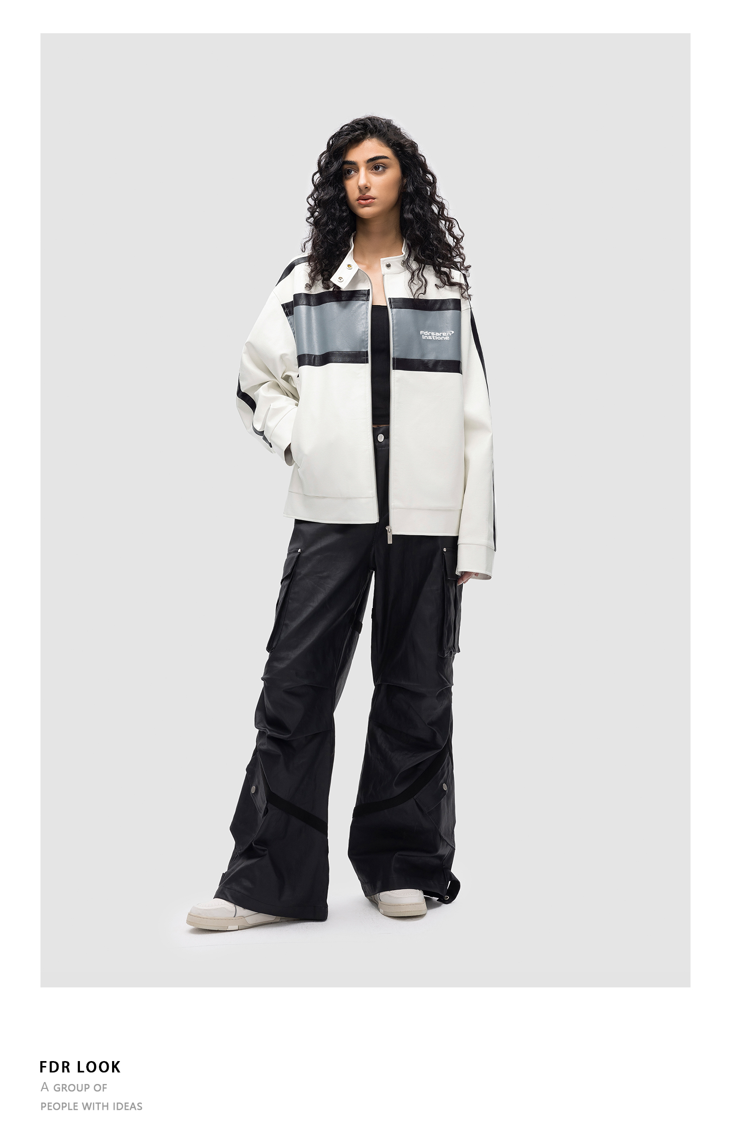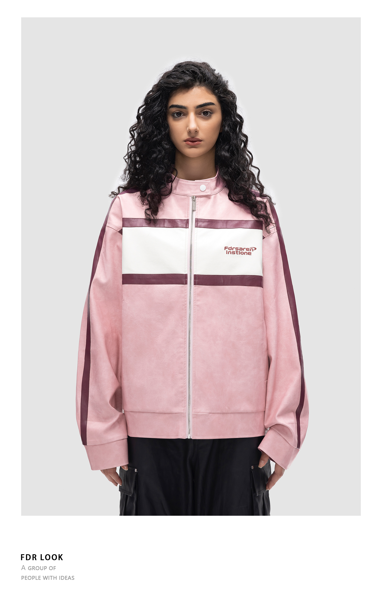 FDR官方店 国潮新款拼接撞色皮夹克女秋季美式潮牌外套宽松上衣