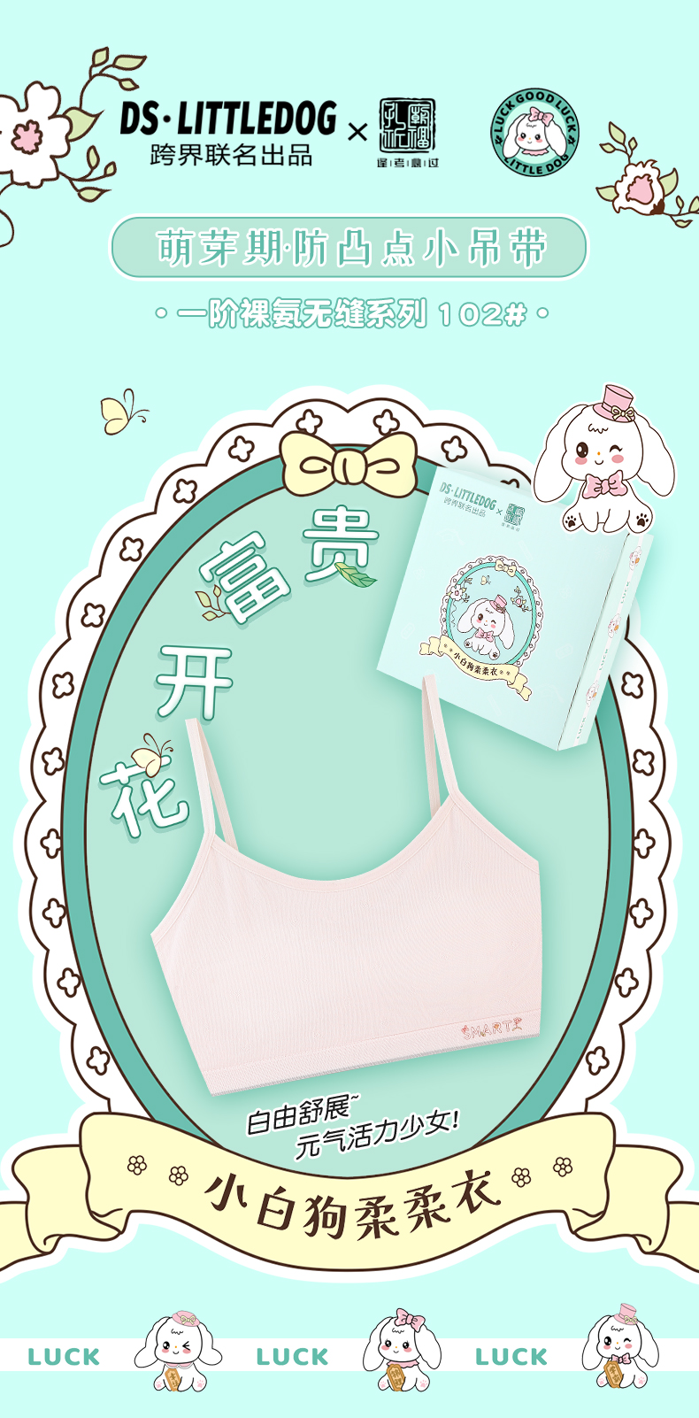 治愈小白狗柔柔衣一阶段裸氨无缝系列吊带款102#2件装专为成长期少女定制 商品图1