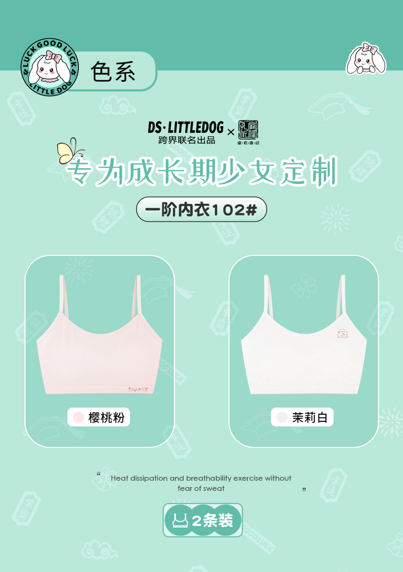 治愈小白狗柔柔衣一阶段裸氨无缝系列吊带款102#2件装专为成长期少女定制 商品图0