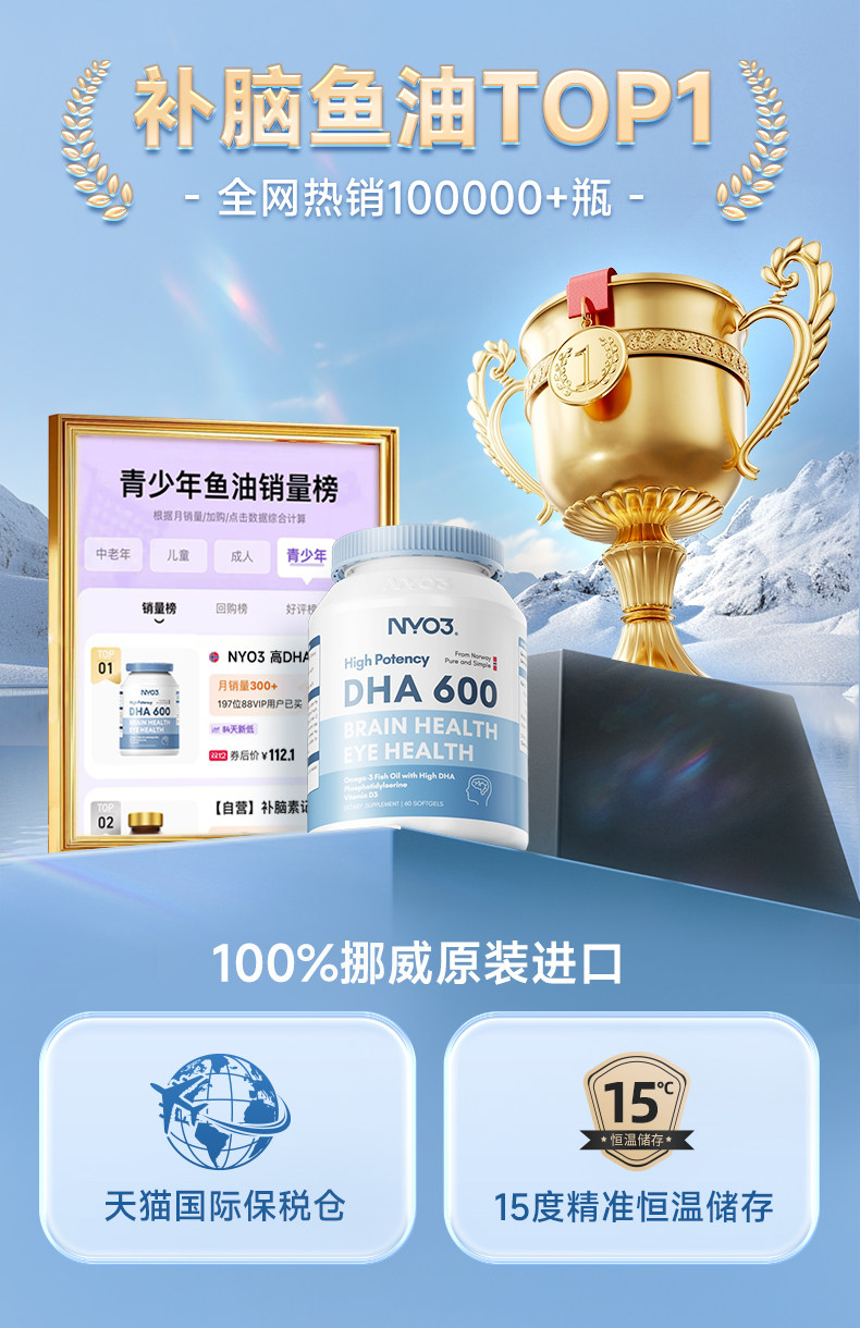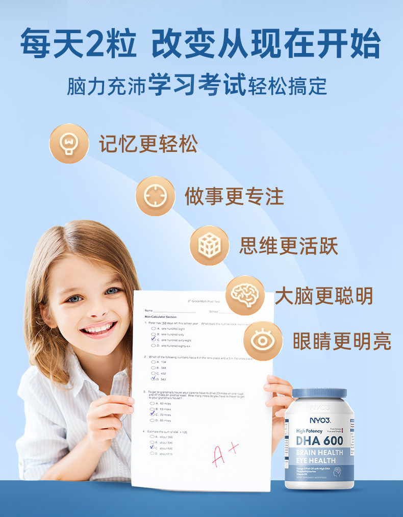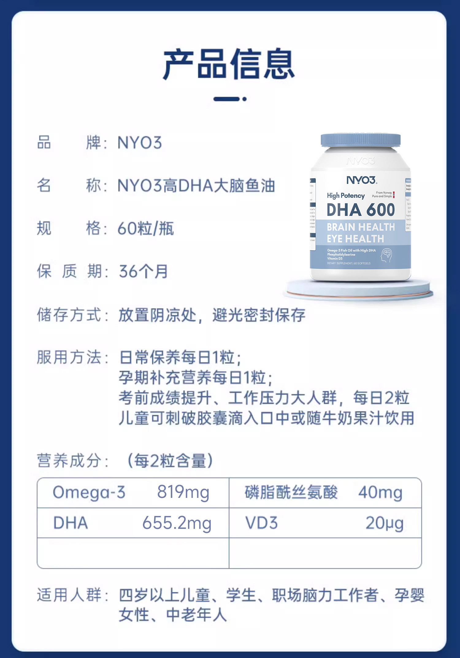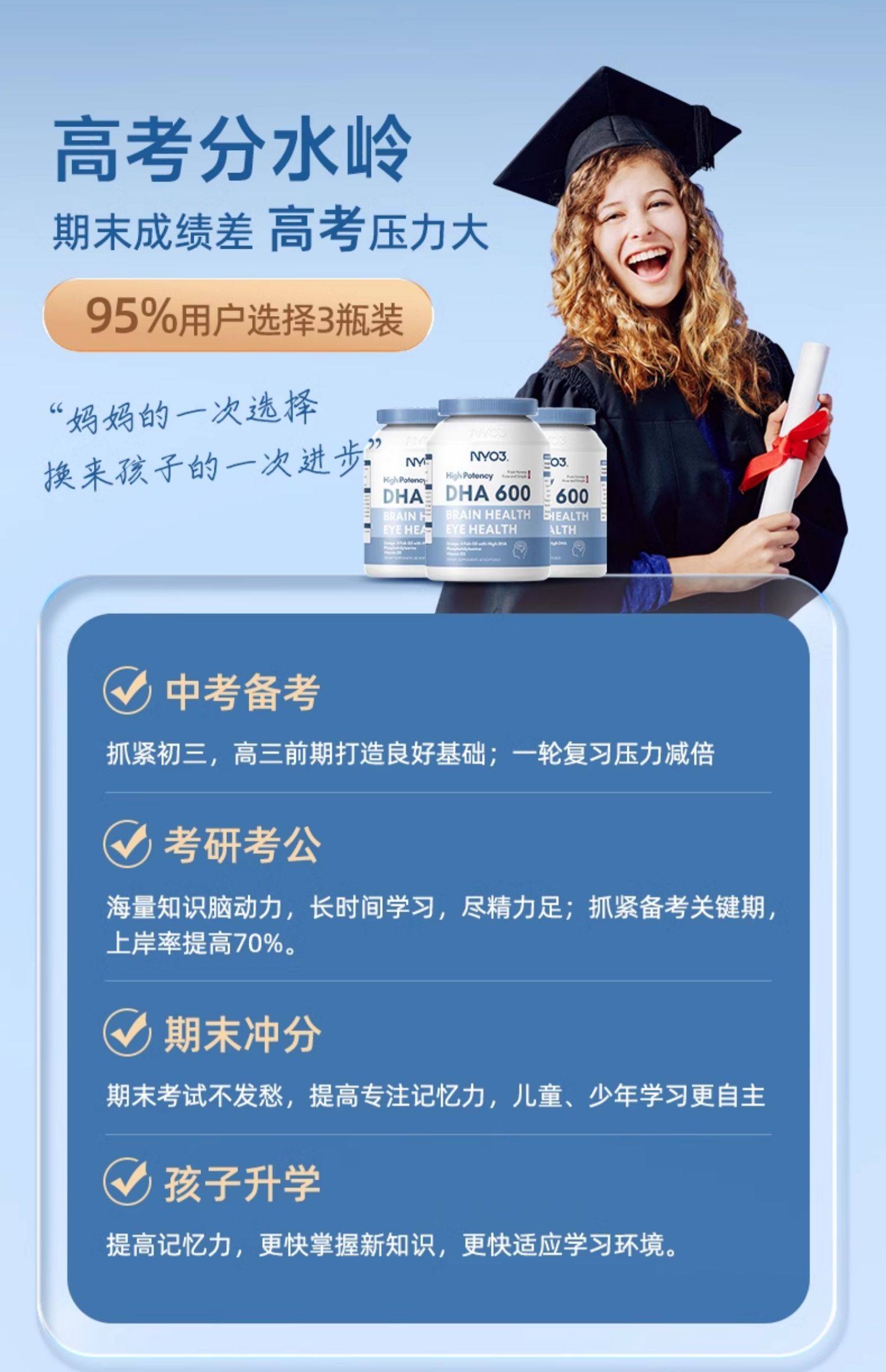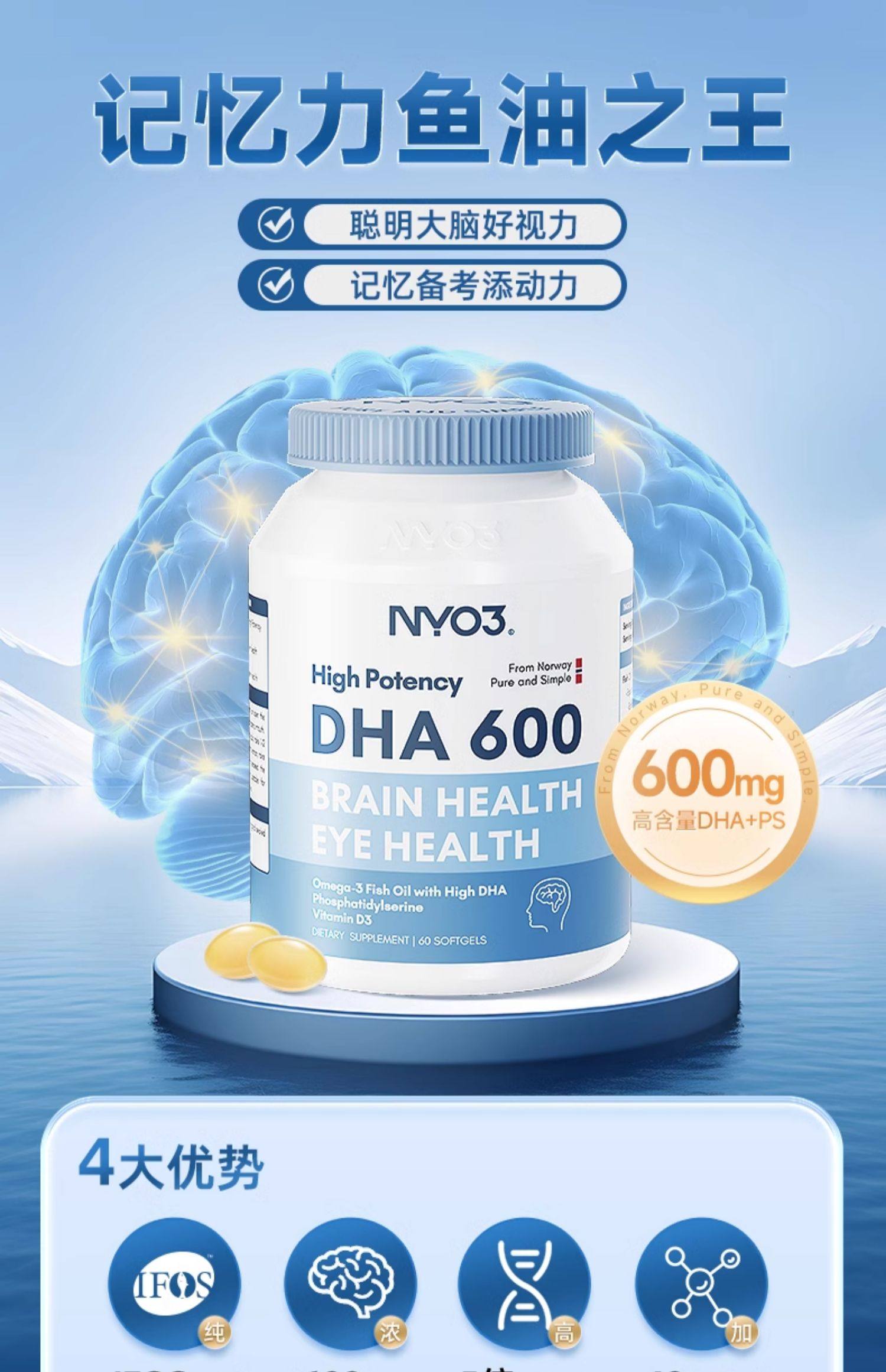 【活动专属】NYO3诺威佳鱼油DHA考研备考高考中考记忆力青少年