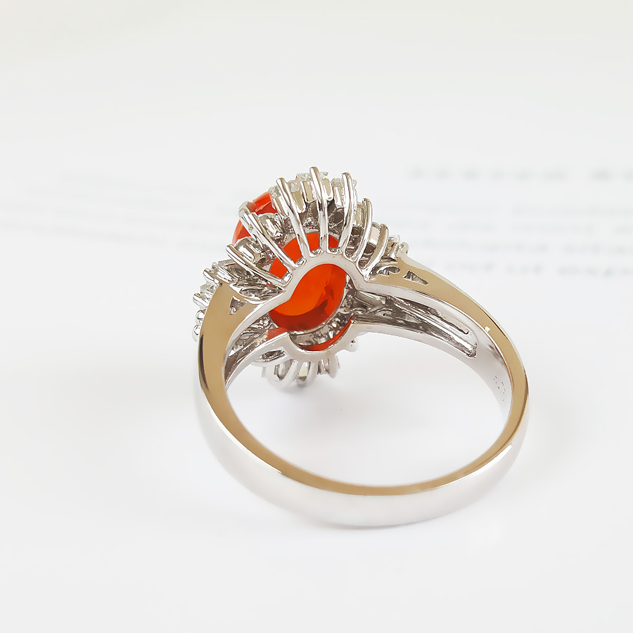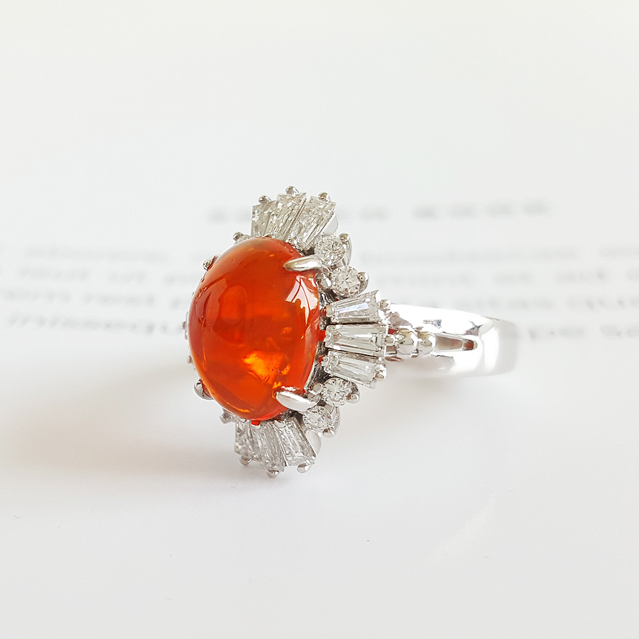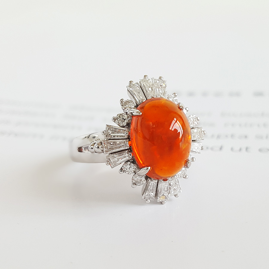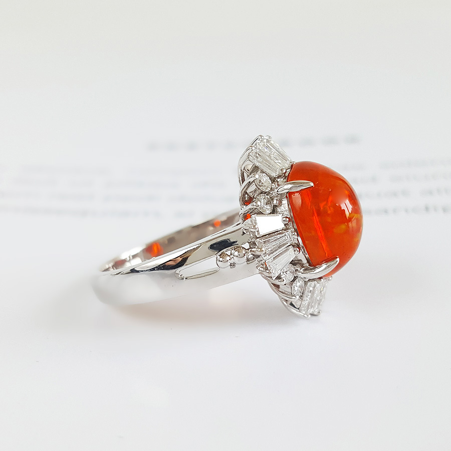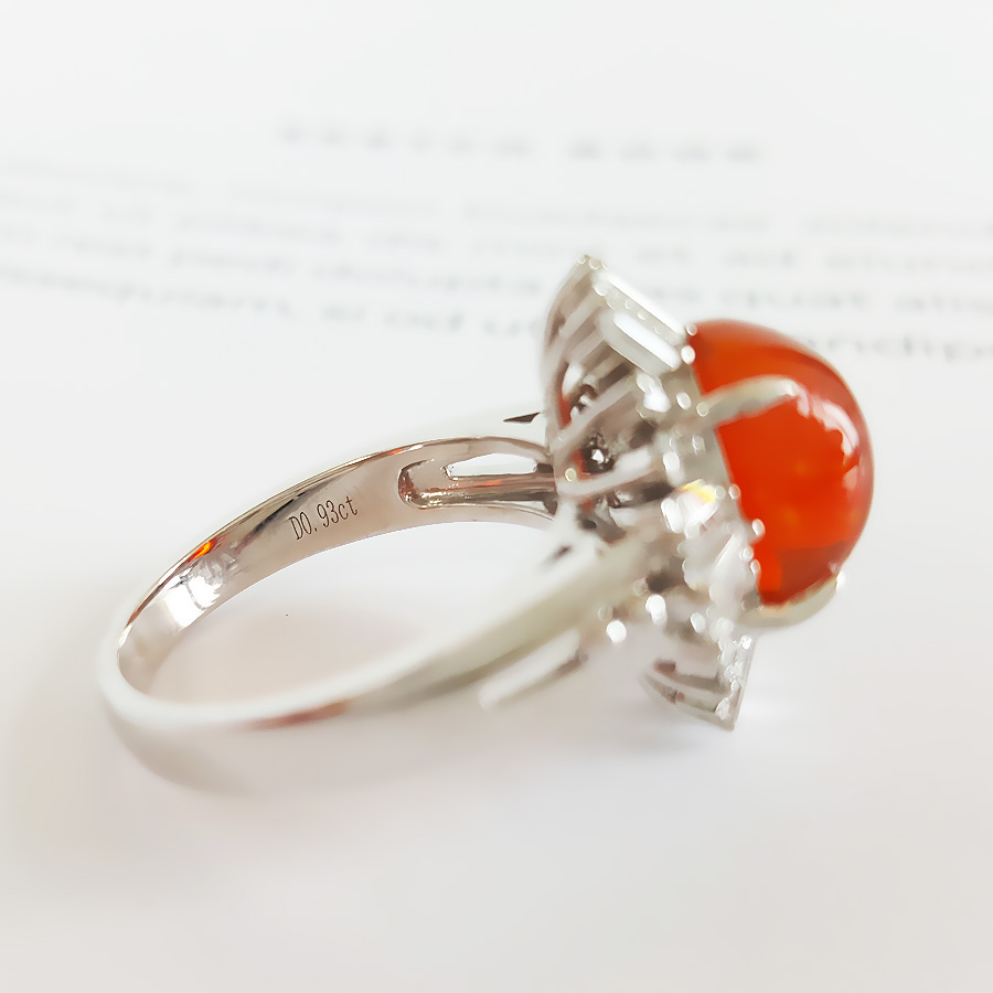 【天然正品】约2克拉火凤凰火欧泊蛋面欧泊AU750收藏级白金镶钻戒指12.5号(戒圈可改)120324NJ13+