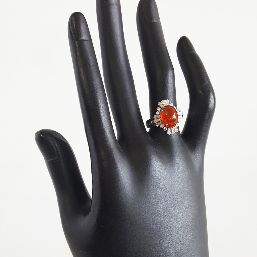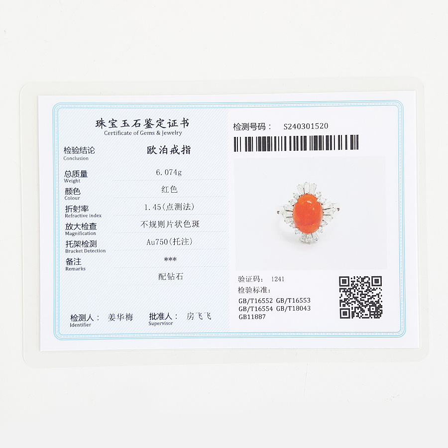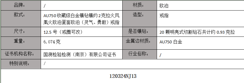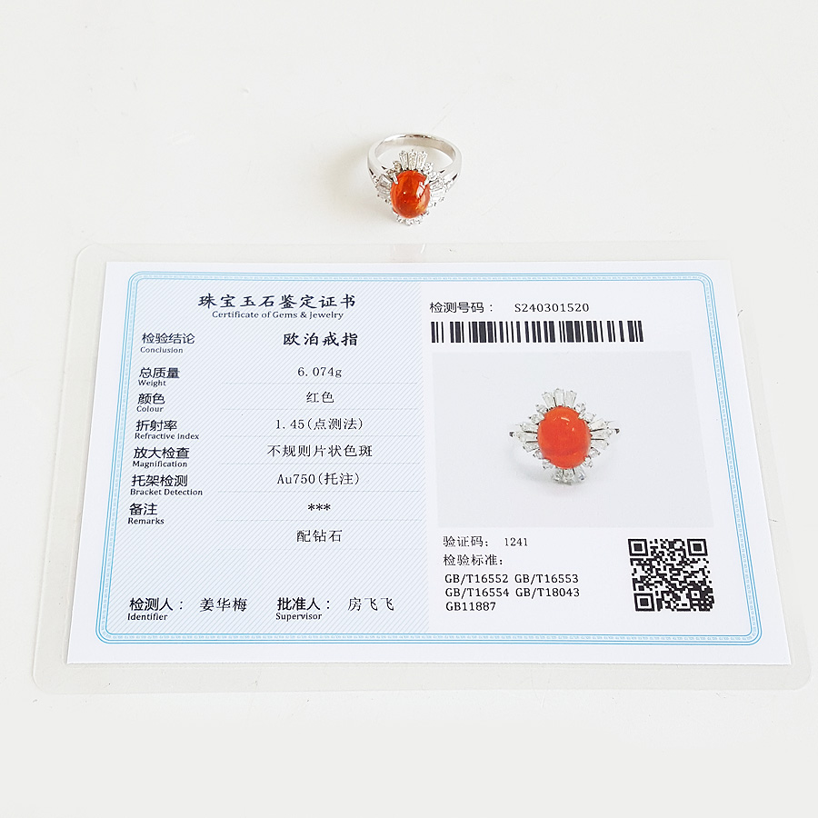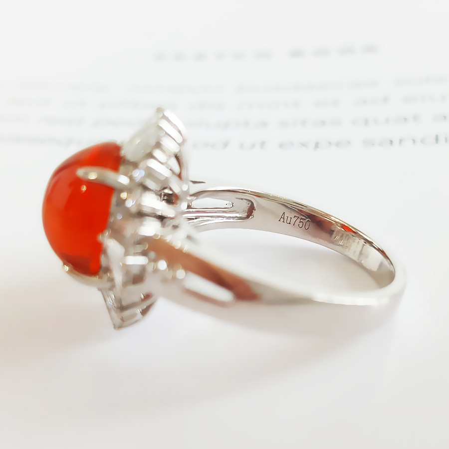 【天然正品】约2克拉火凤凰火欧泊蛋面欧泊AU750收藏级白金镶钻戒指12.5号(戒圈可改)120324NJ13+