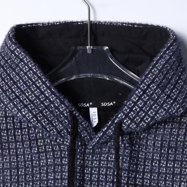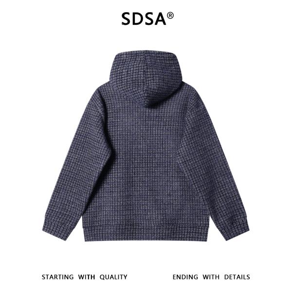 SDSA男士秋冬新款痞帅男装简约提花小格子连帽卫衣百搭宽松上衣