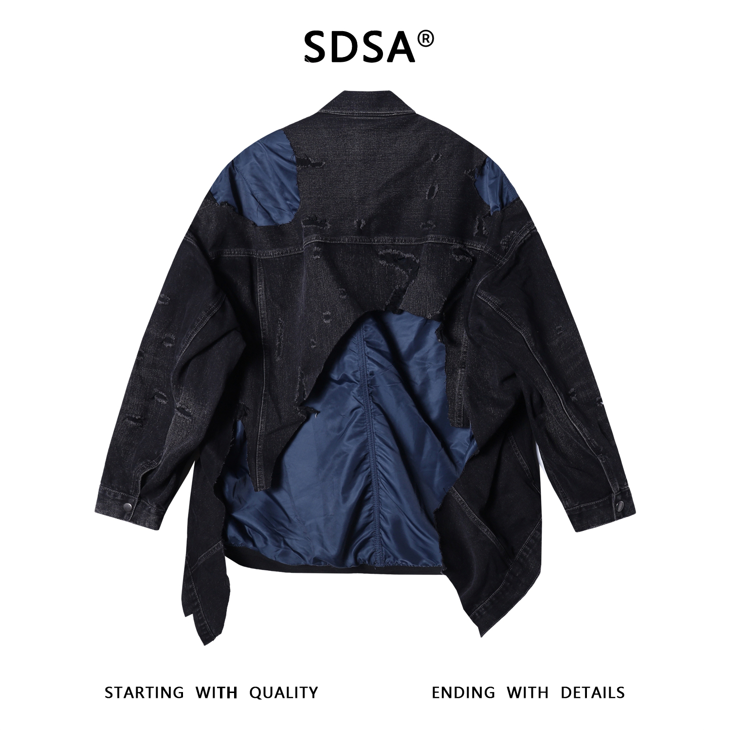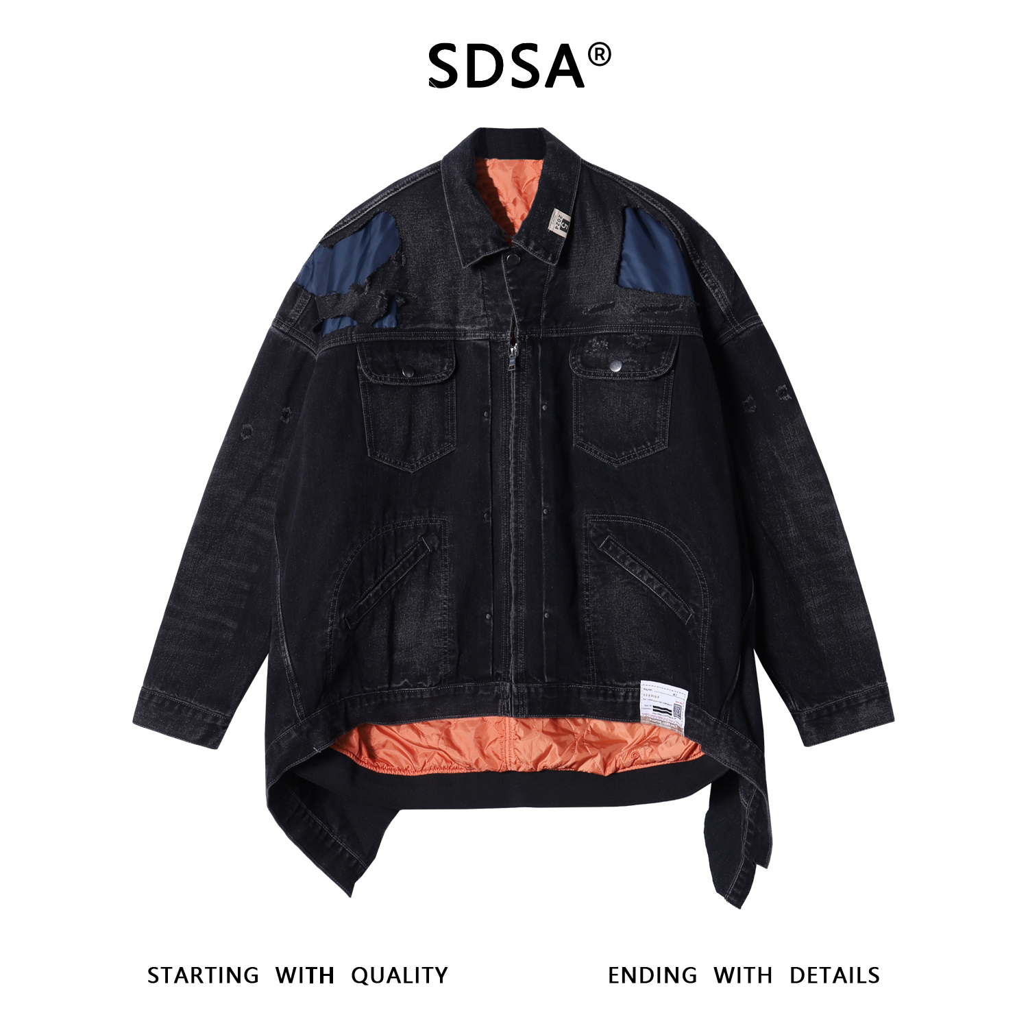 SDSA男士秋冬新款痞帅男装美式磨破拼接牛仔外套夹克复古时髦潮