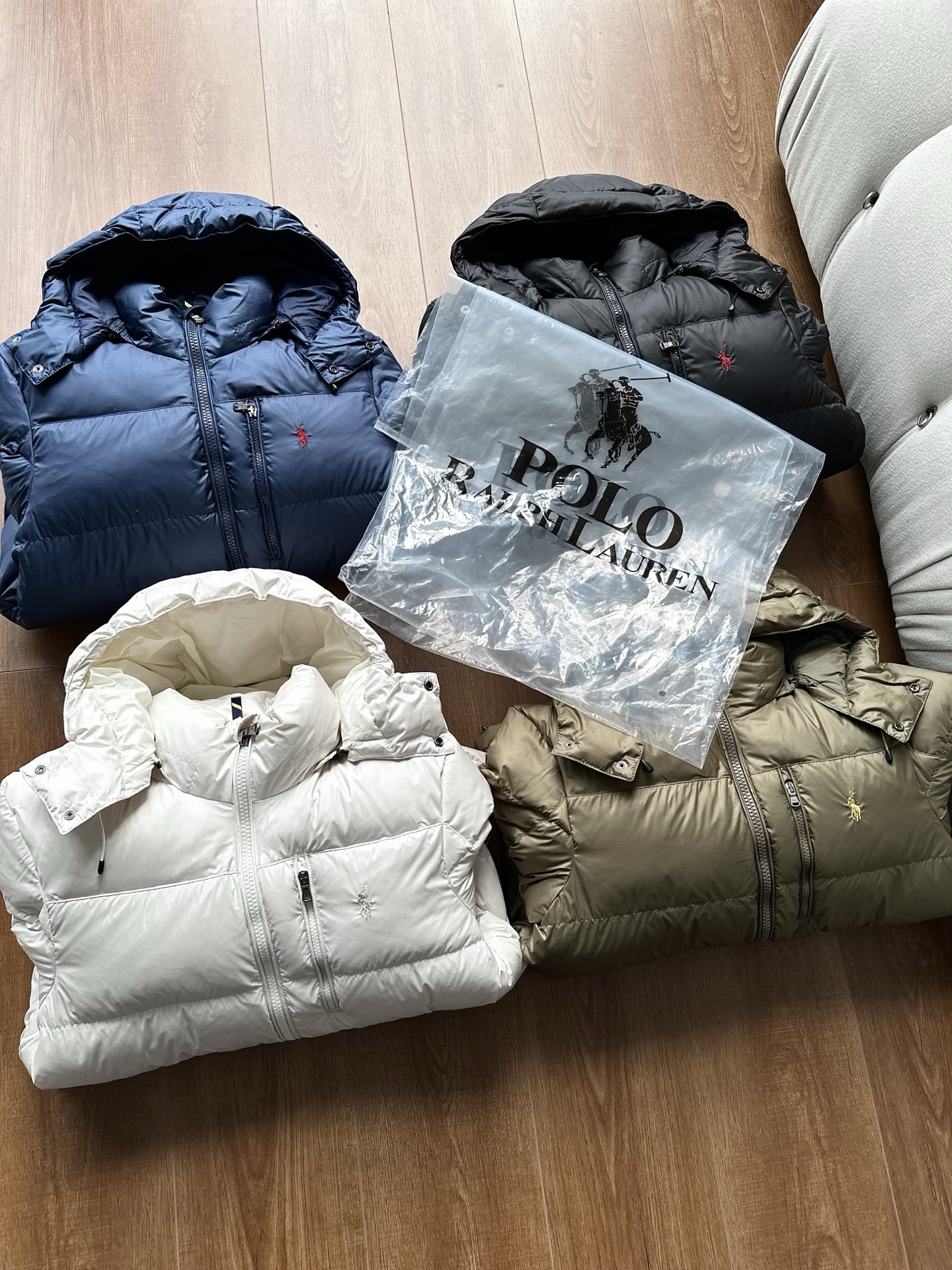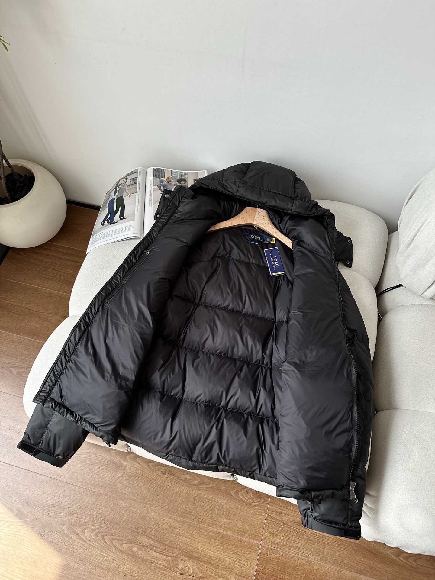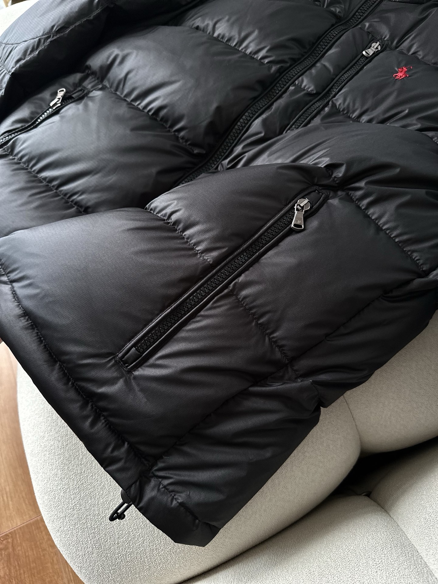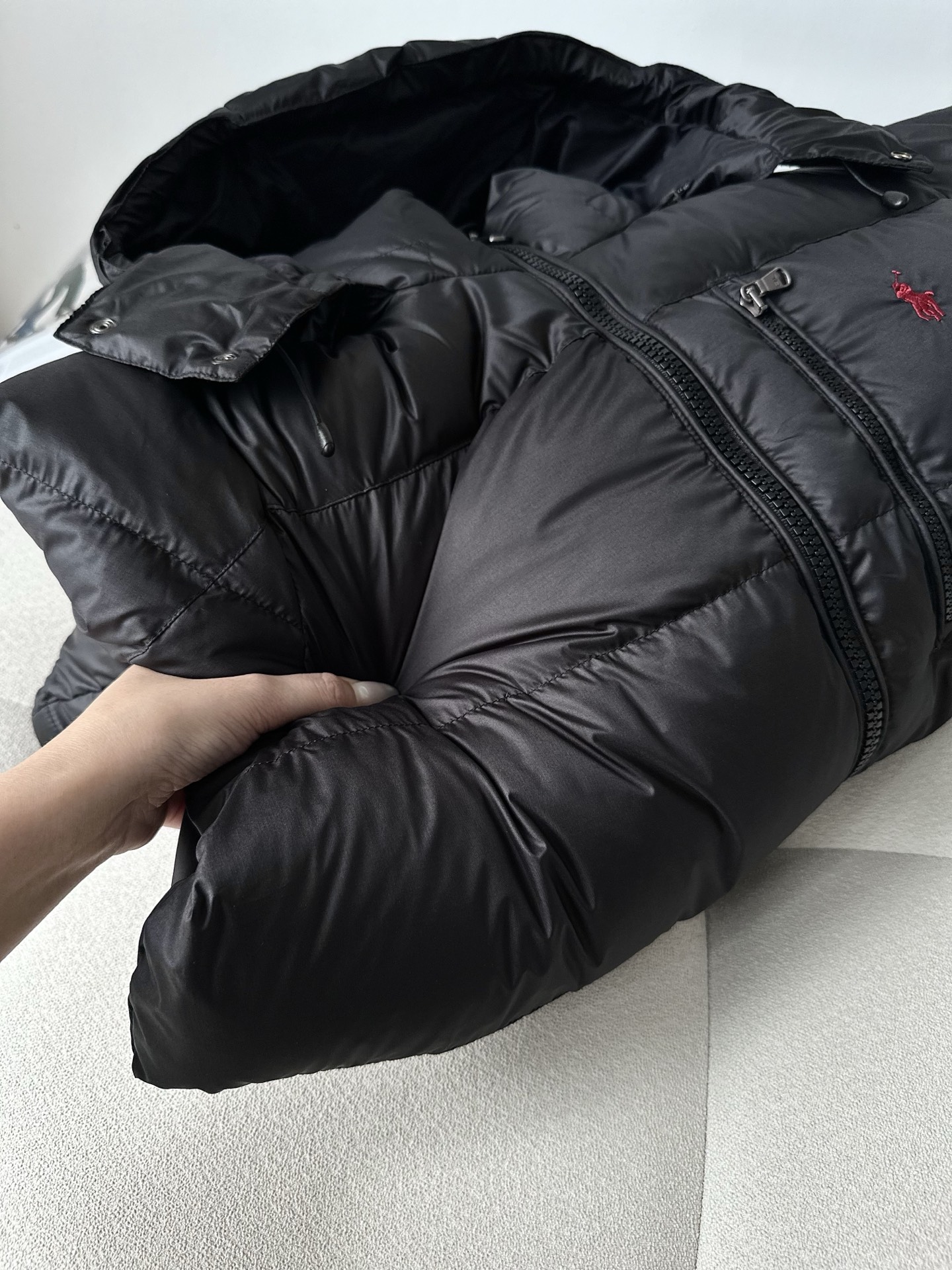 Ralph Lauren 拉夫劳伦可拆卸帽羽绒服 男女同款 🔥爆款推荐 75鸭绒,超高含量鸭绒填充!! 内料填充的超饱满绝对没有一点偷工减料 肉眼看手感都是非常蓬松的,每一格绗缝里的羽绒都很充盈,没有丝毫瘪塌的地方 保暖性能超好的毋庸置疑!不会跑绒 防水效果也很好,比市面上一般羽绒服都好打理,小雨雪天气也不怕,冬天出门裹这一件就够了,版型偏正方形,有松量,不挑人,一点也不会显胖,完全不压身高,显高显腿长,能很好地优化身材比例,上身不会有拖沓感,谁穿谁知道!五个颜色 黑色 藏青 墨绿 白色 码数XS-XXL