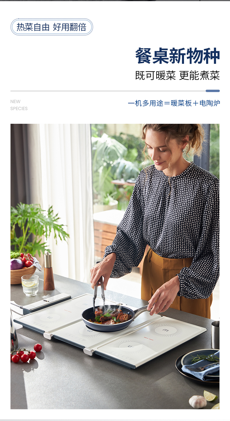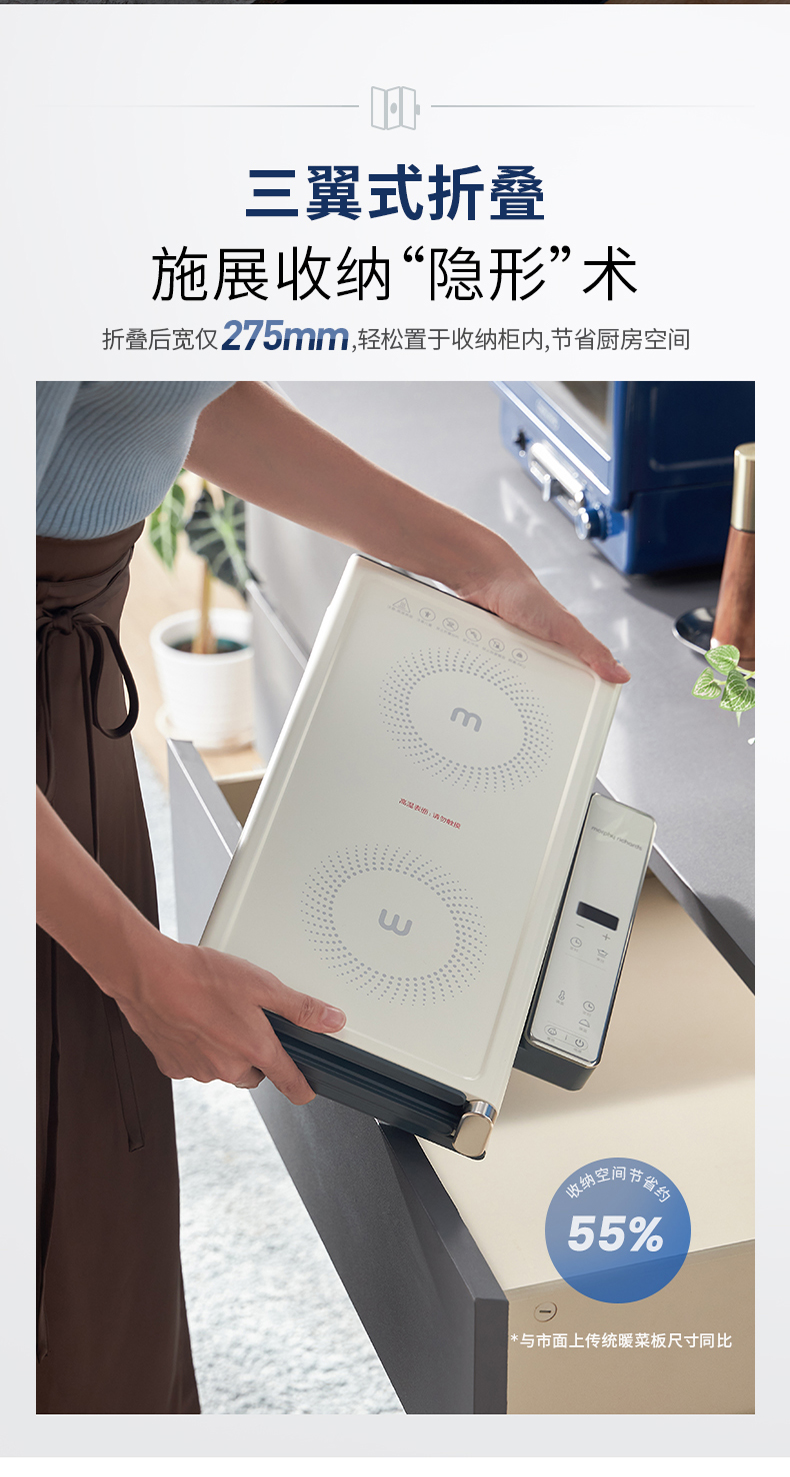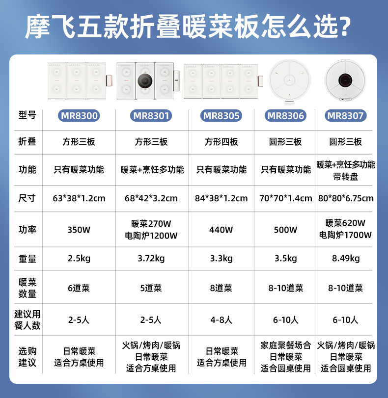 摩飞折叠暖菜板可旋转圆形餐桌转盘保温垫家用加热饭菜神器热菜板