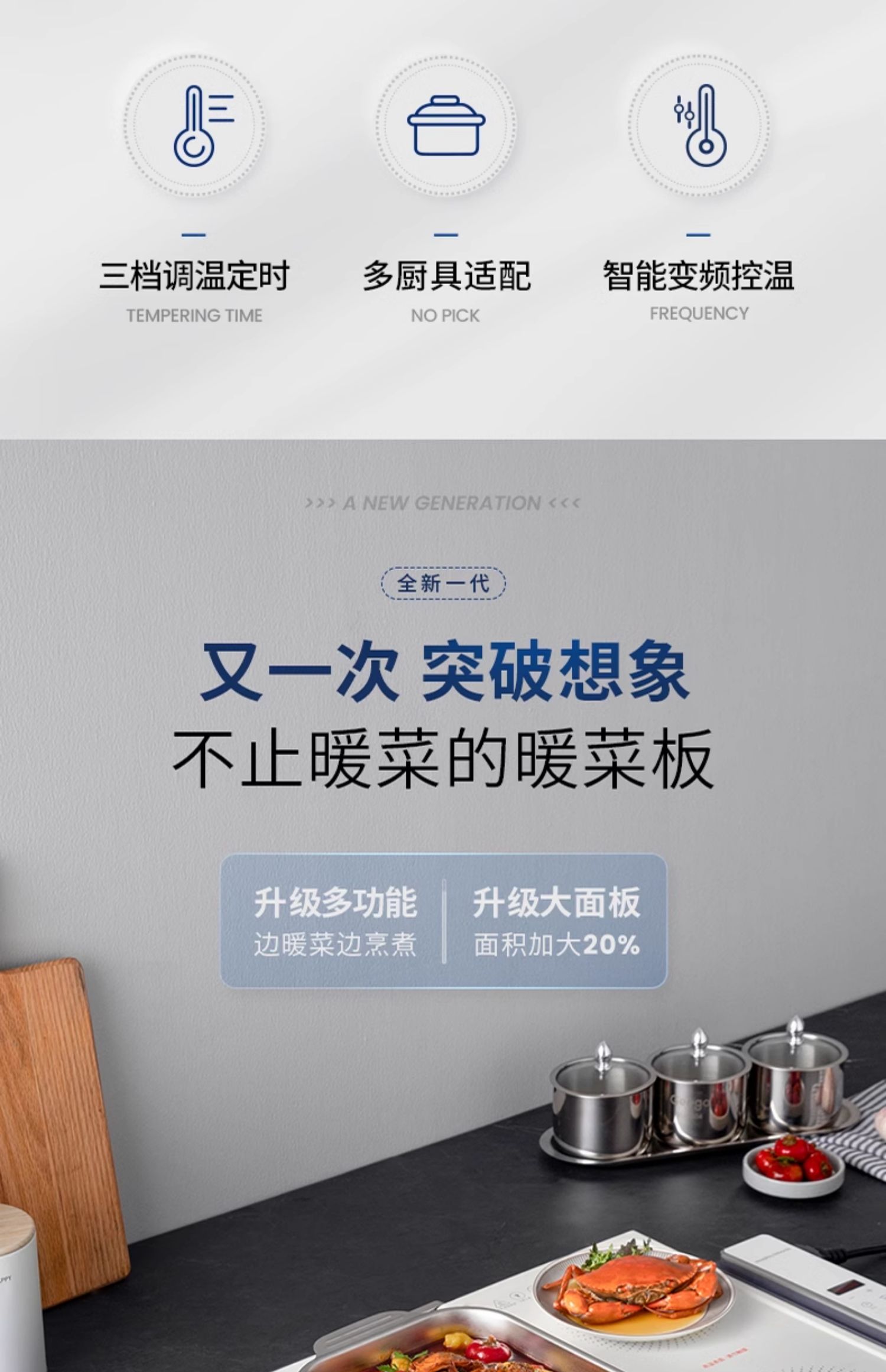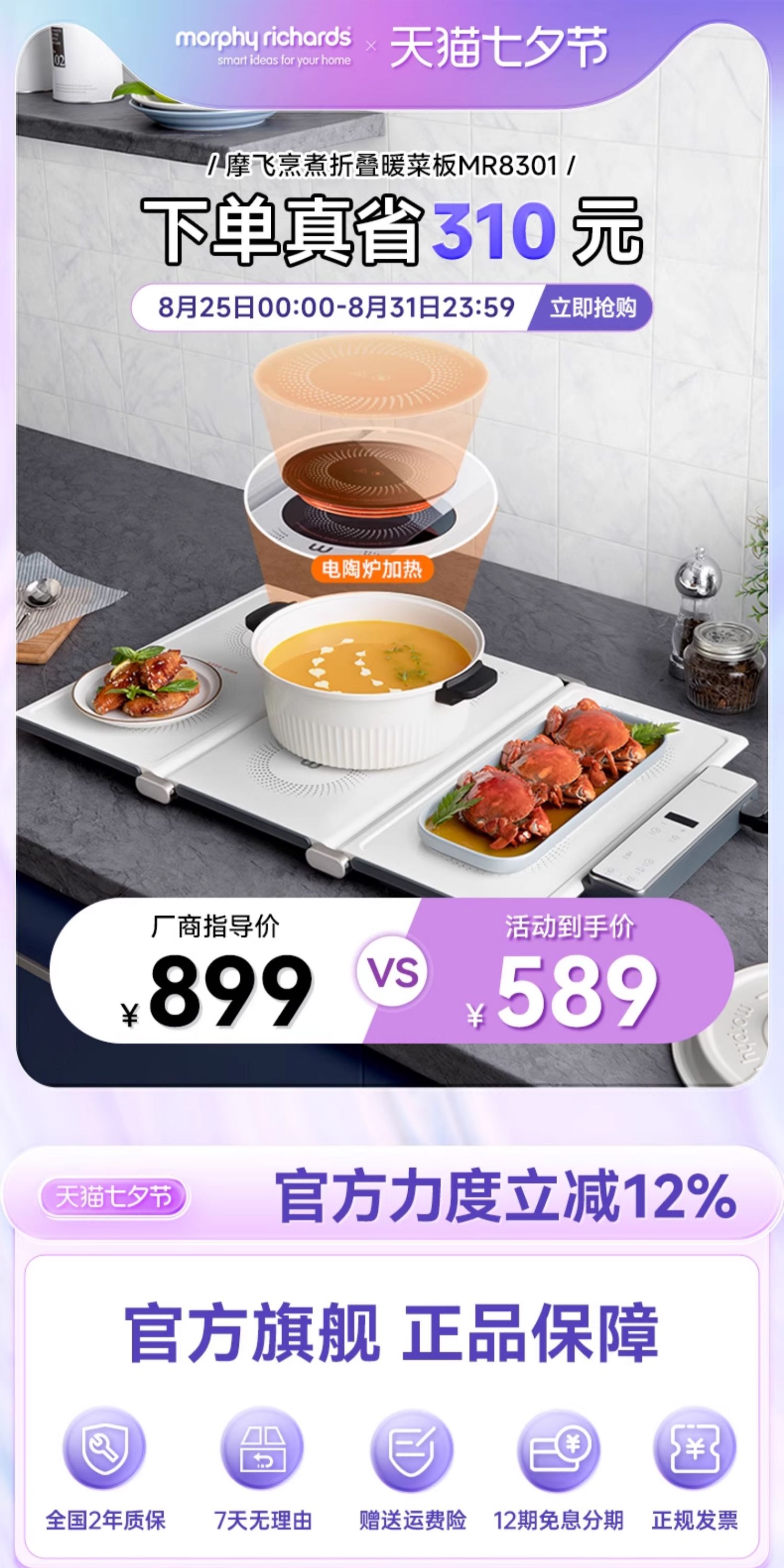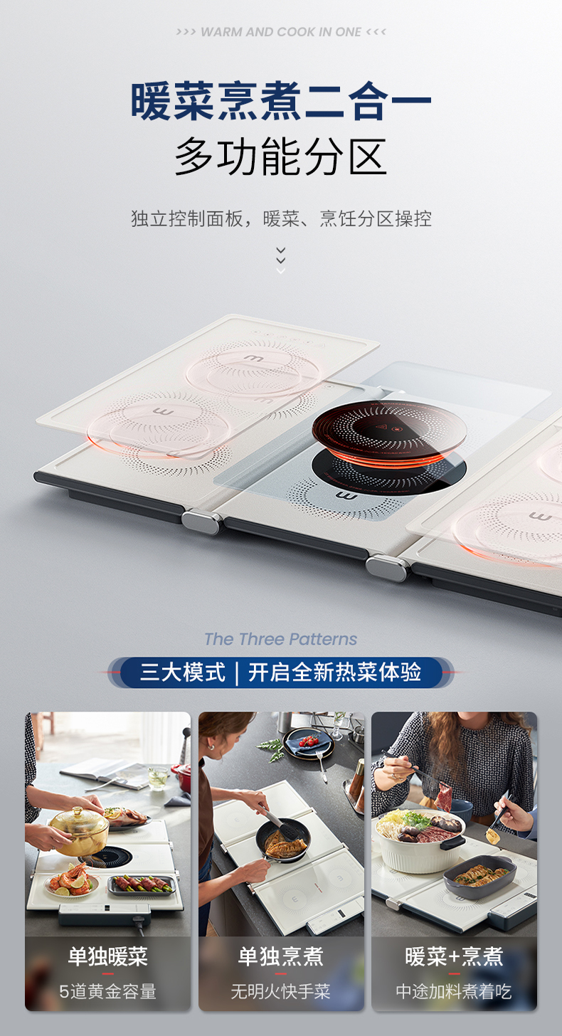 摩飞折叠暖菜板可旋转圆形餐桌转盘保温垫家用加热饭菜神器热菜板