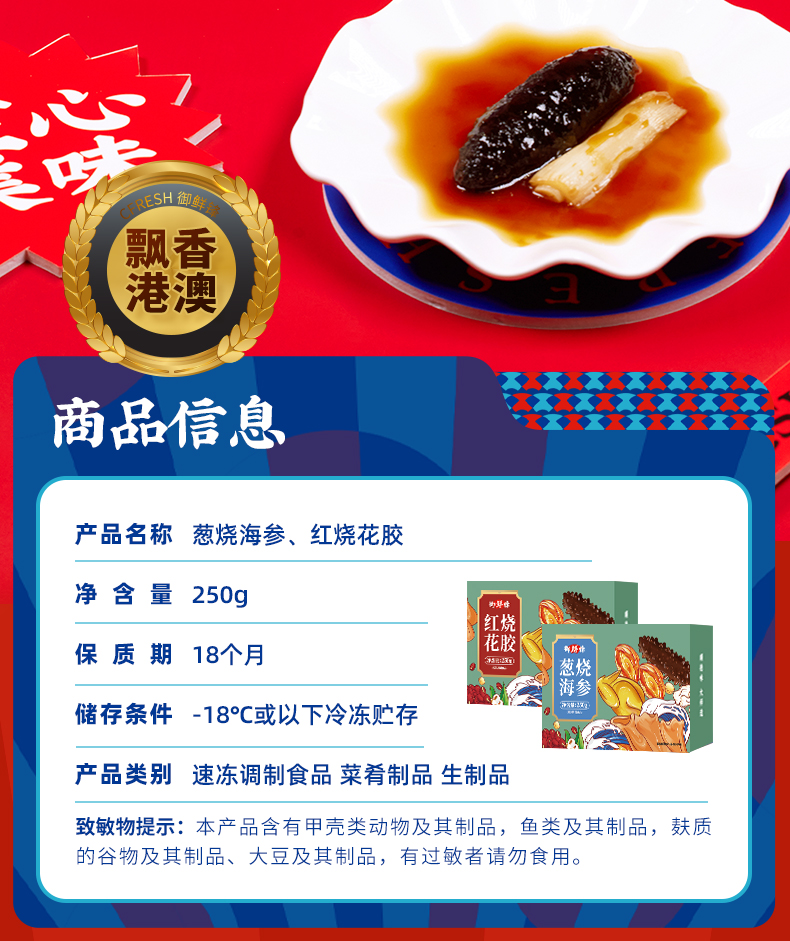 【御鲜锋】澳洲新西兰出口版葱烧海参、红烧花胶