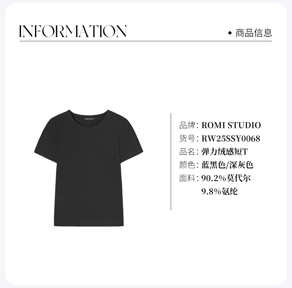 ROMI STUDIO 莫代尔混纺高弹快干修身超柔针织短袖T恤RW25SSY0068