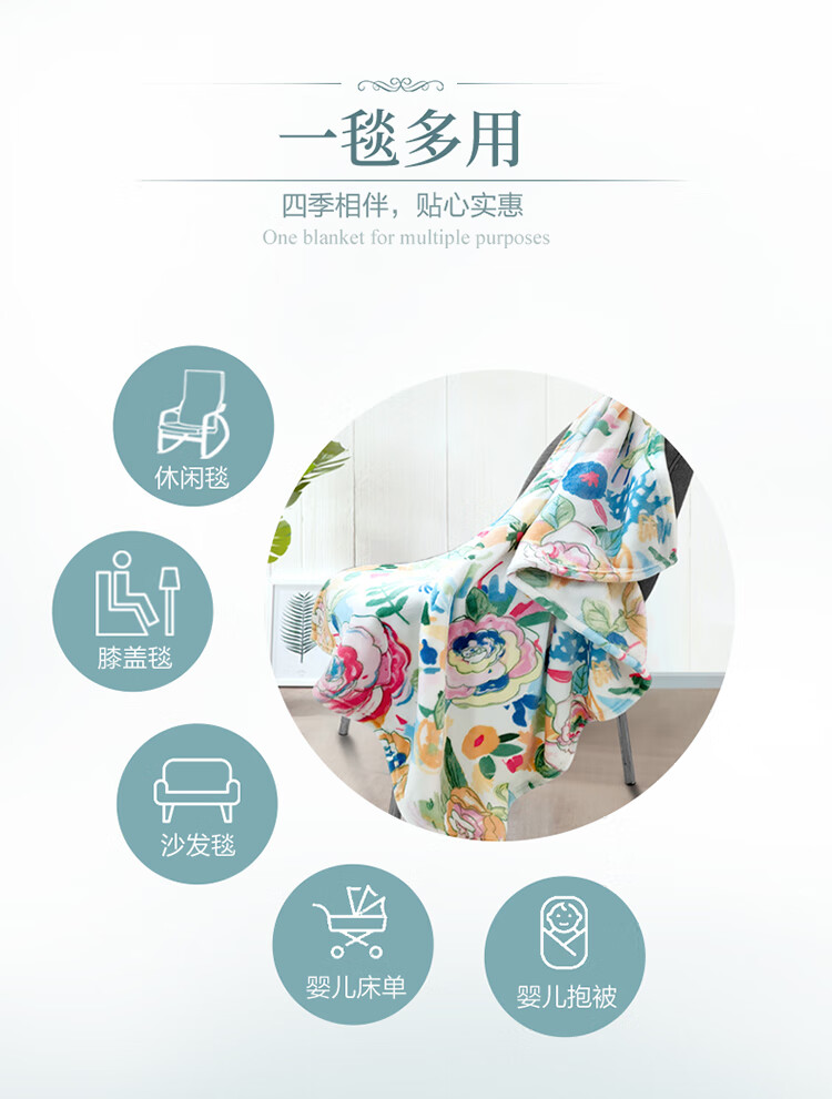 富安娜 毛毯 摩卡时光时尚多功能毯 休闲毯午睡空调毯毛巾被盖毯80x120cm