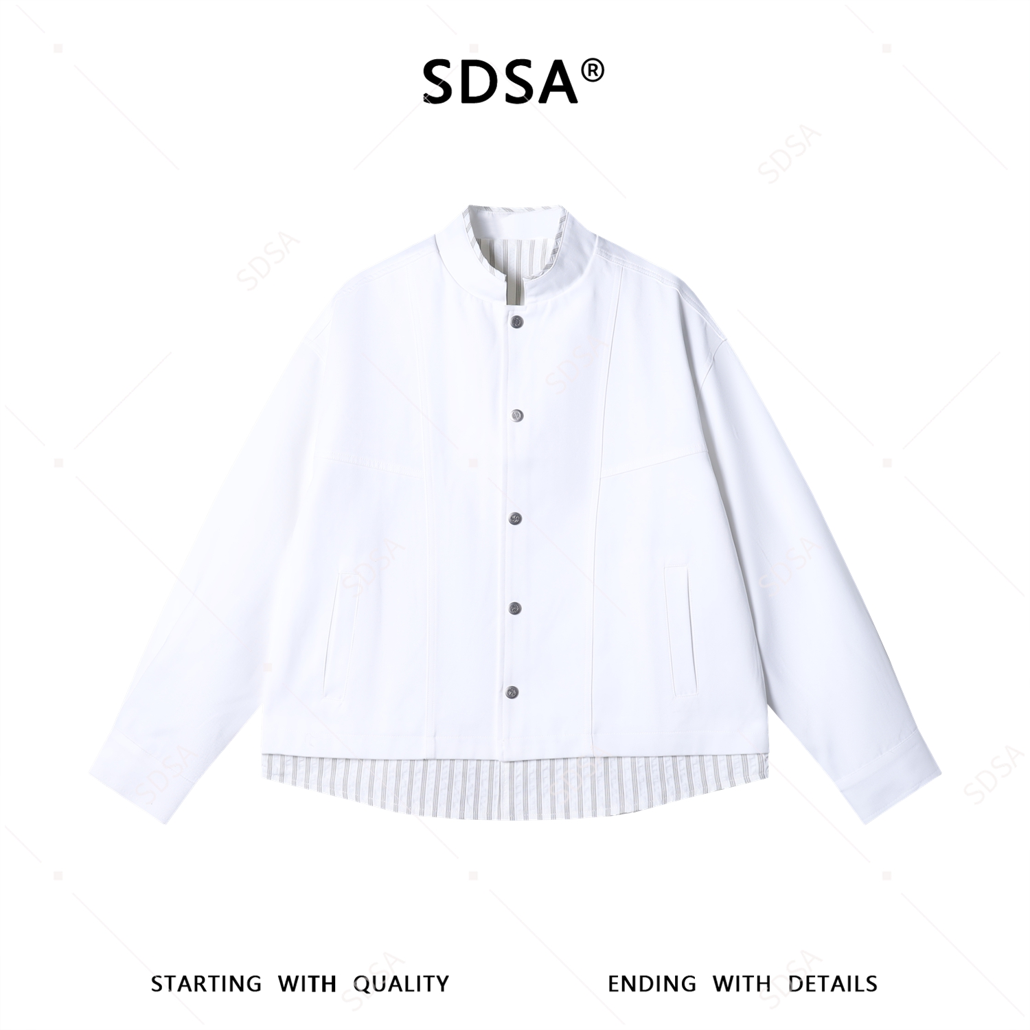 SDSA男装2026新款高贵轻奢假两件立领夹克宽松条纹拼接外套休闲款
