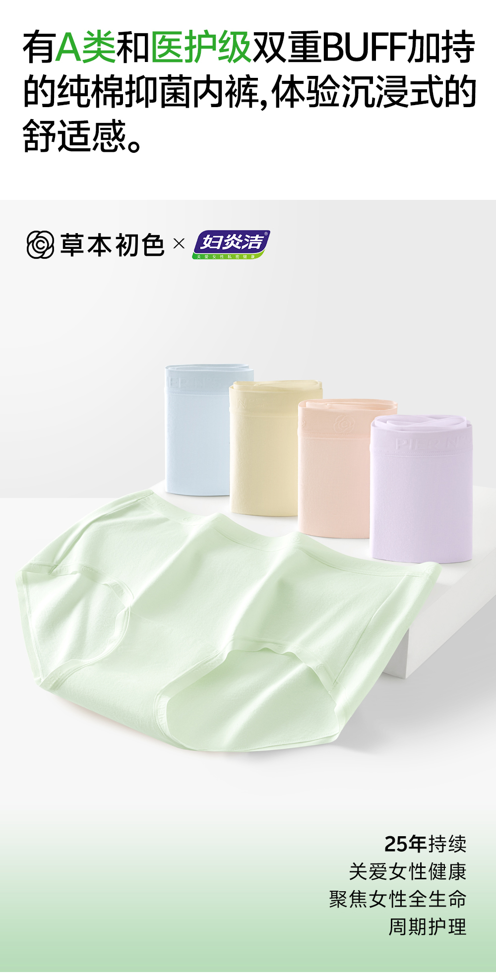 【六条装】草本初色&妇炎洁联名款 纯棉聚乳酸内裤 M-XXL码(90-160斤)颜色随机