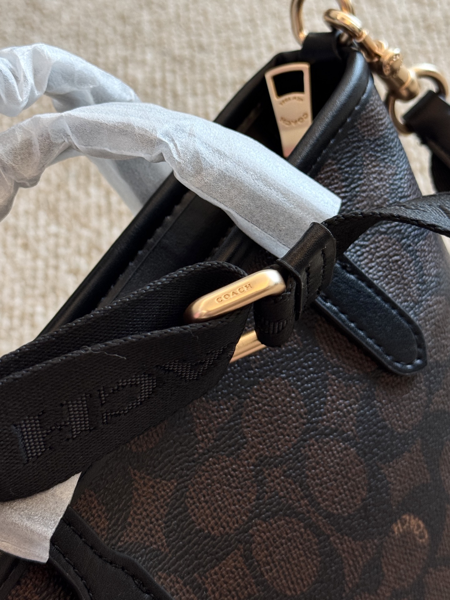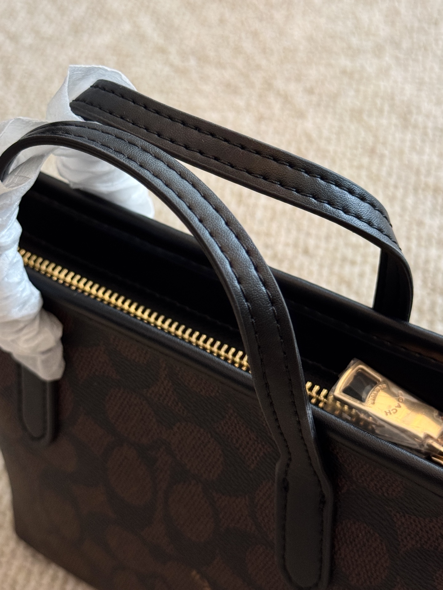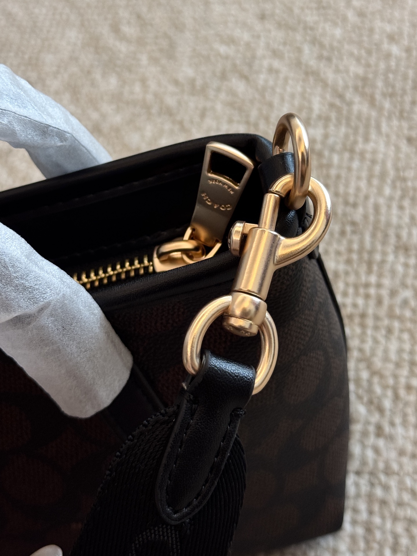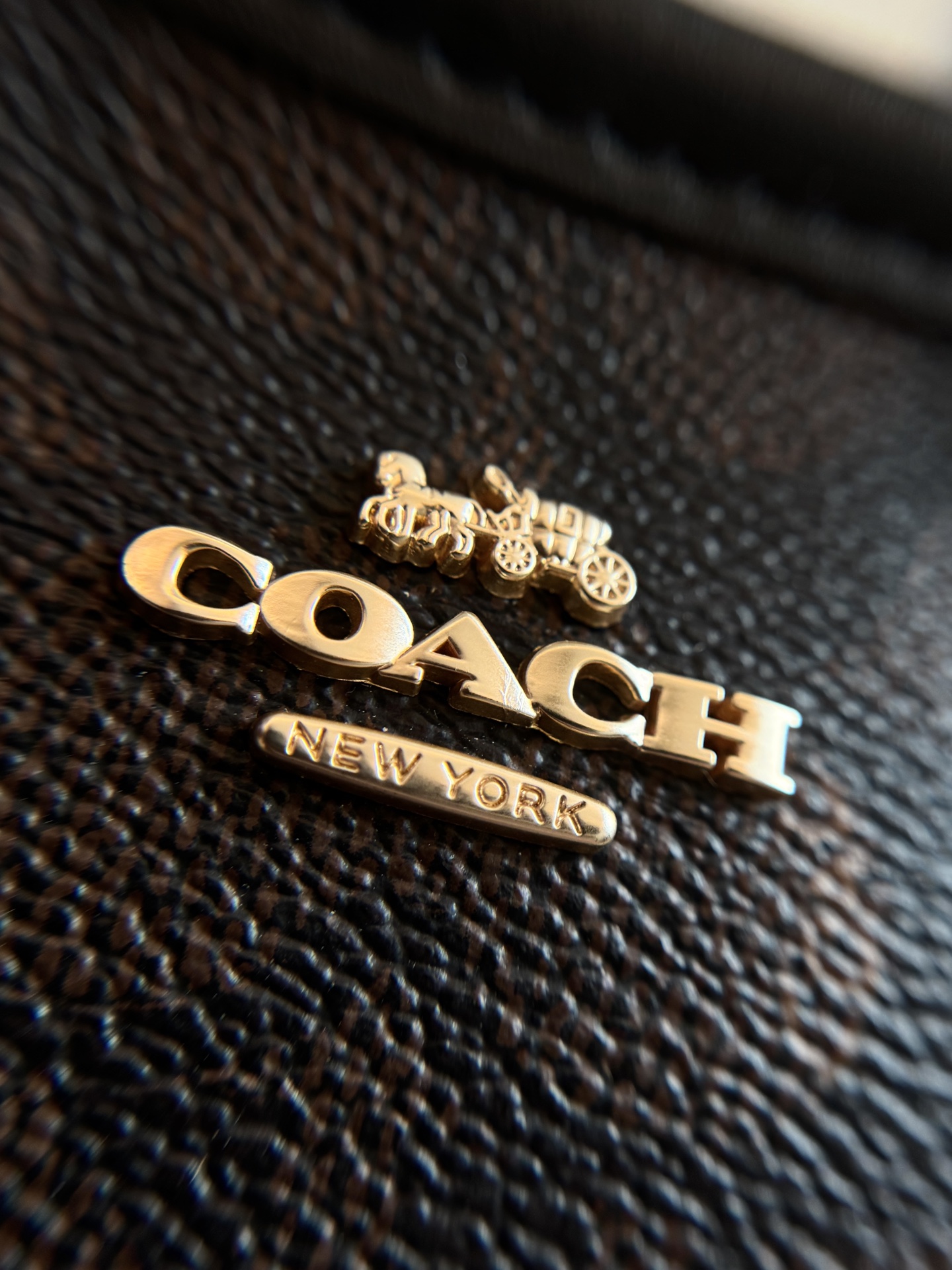 五金全部是COACH定制 不管是从刻字细节,色泽饱满度上都是傲骨的存在!秒杀市面所有同款的存在!复古铜制五金件!一直是蔻家标配,字体有深度、再小也清晰!我的图渣拍不太出来