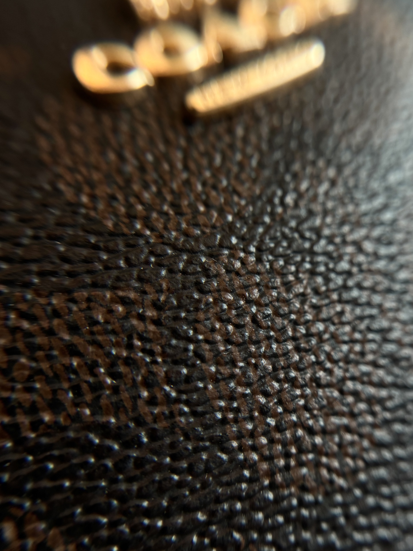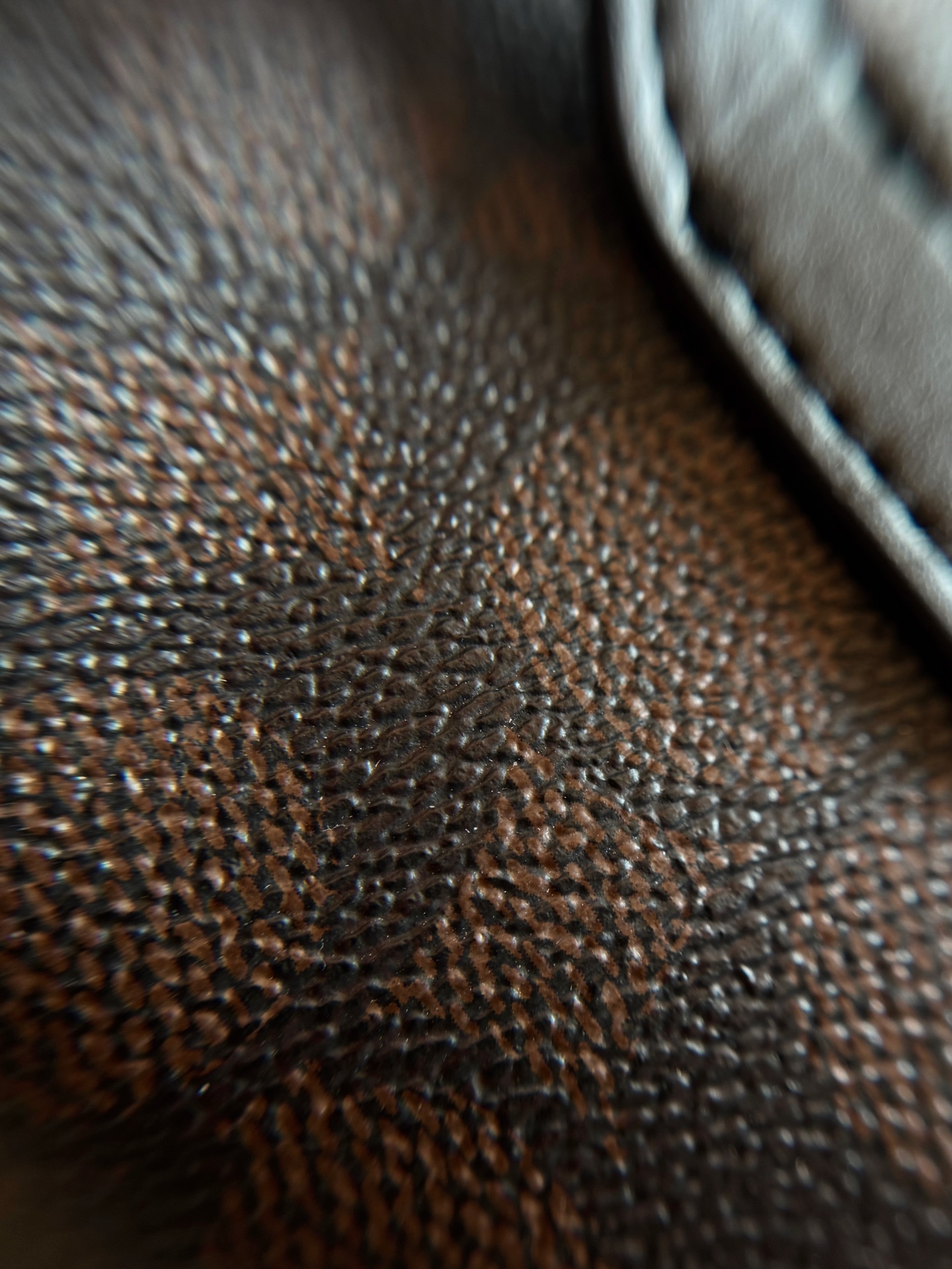 经典老花皮料,颗粒感十足,摸着也十分有质感 耐磨经用,最重要的是越用越有味道哈