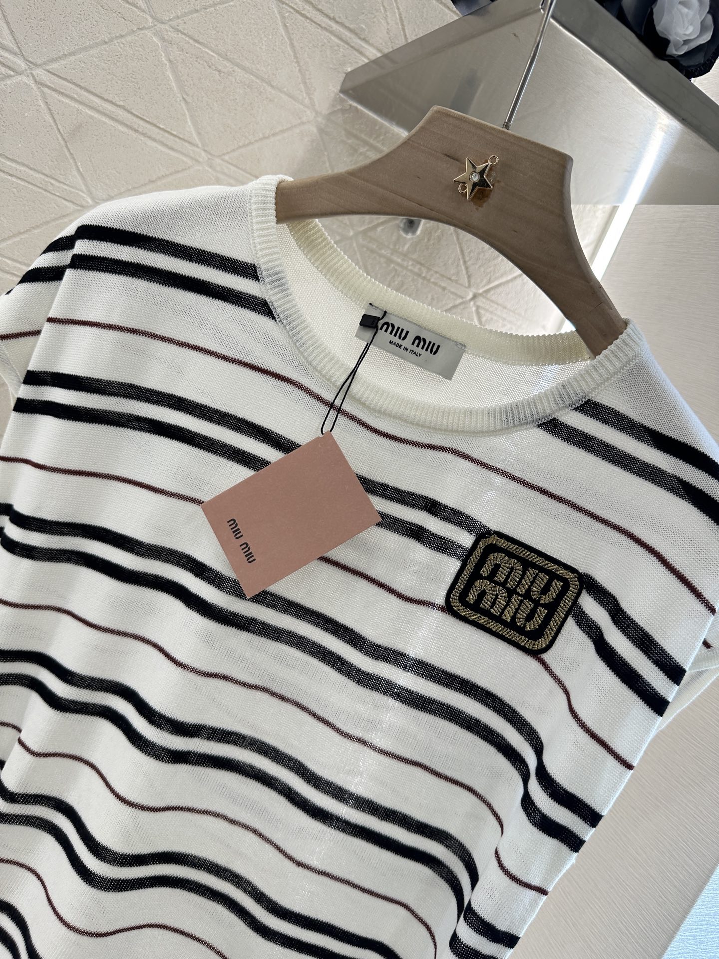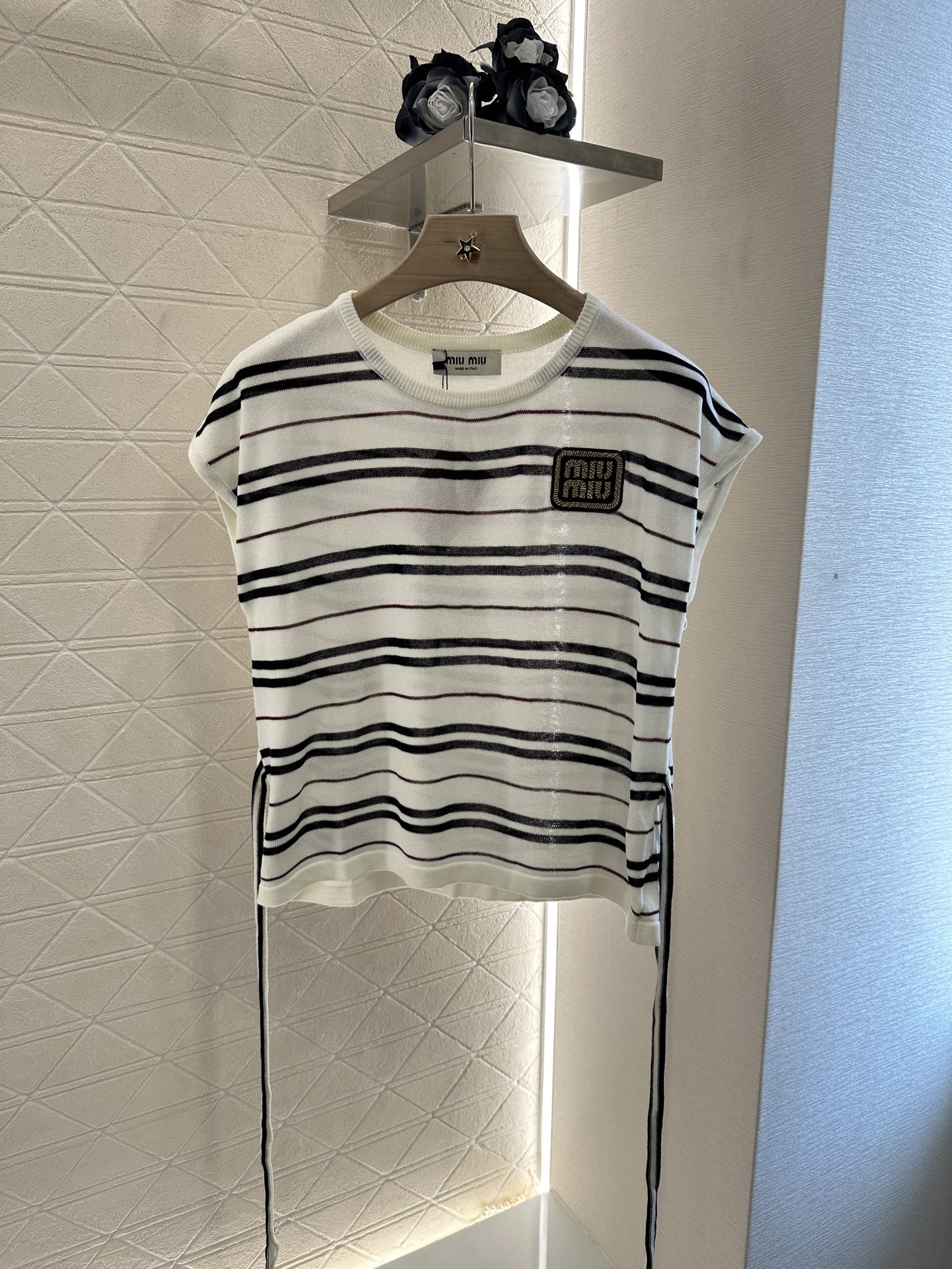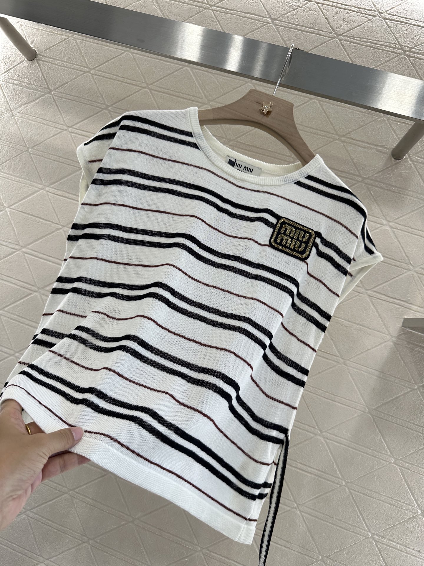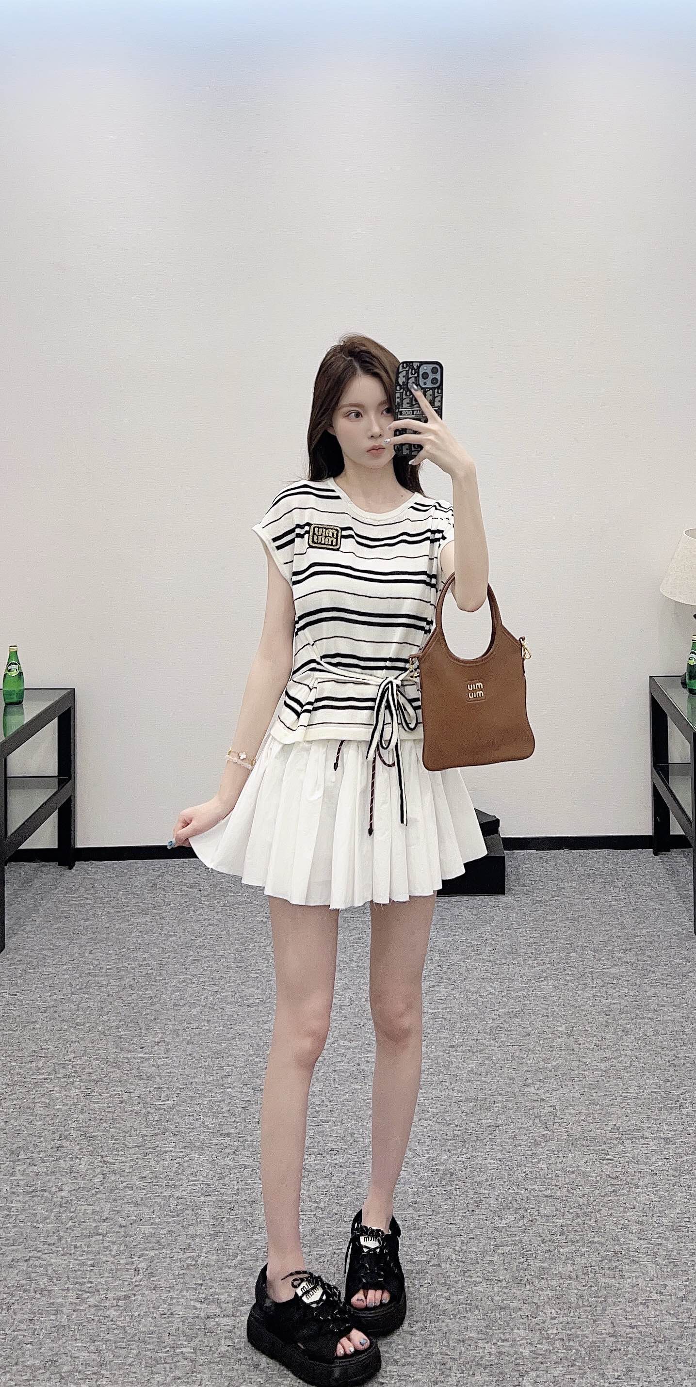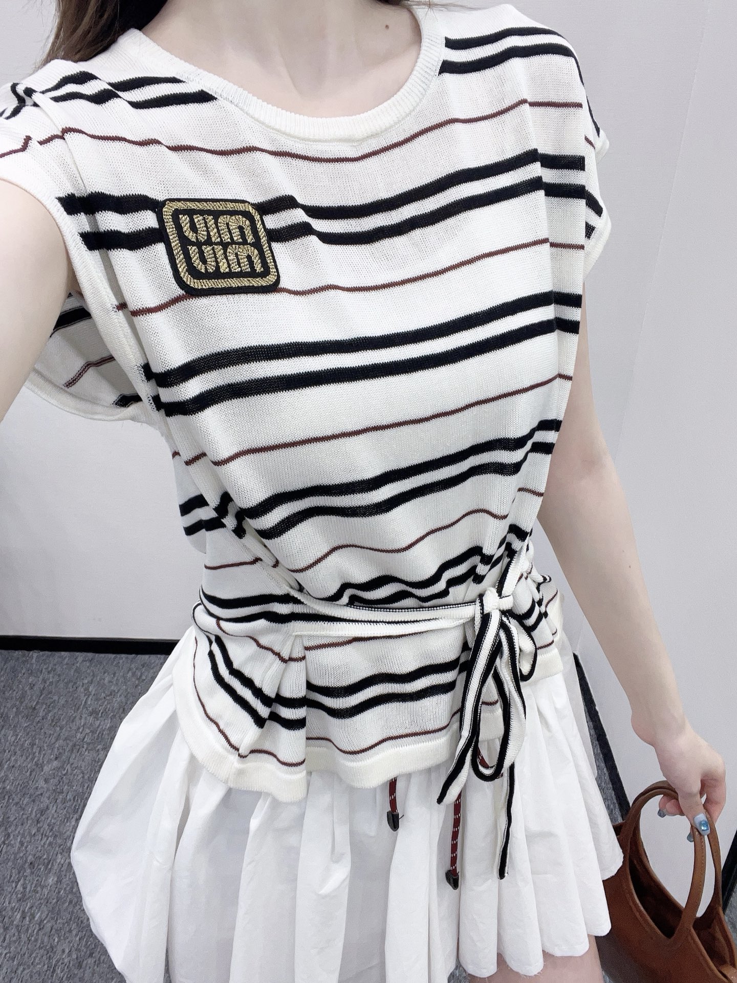 谬家*♥2025新品上架 绑带条纹针织短袖