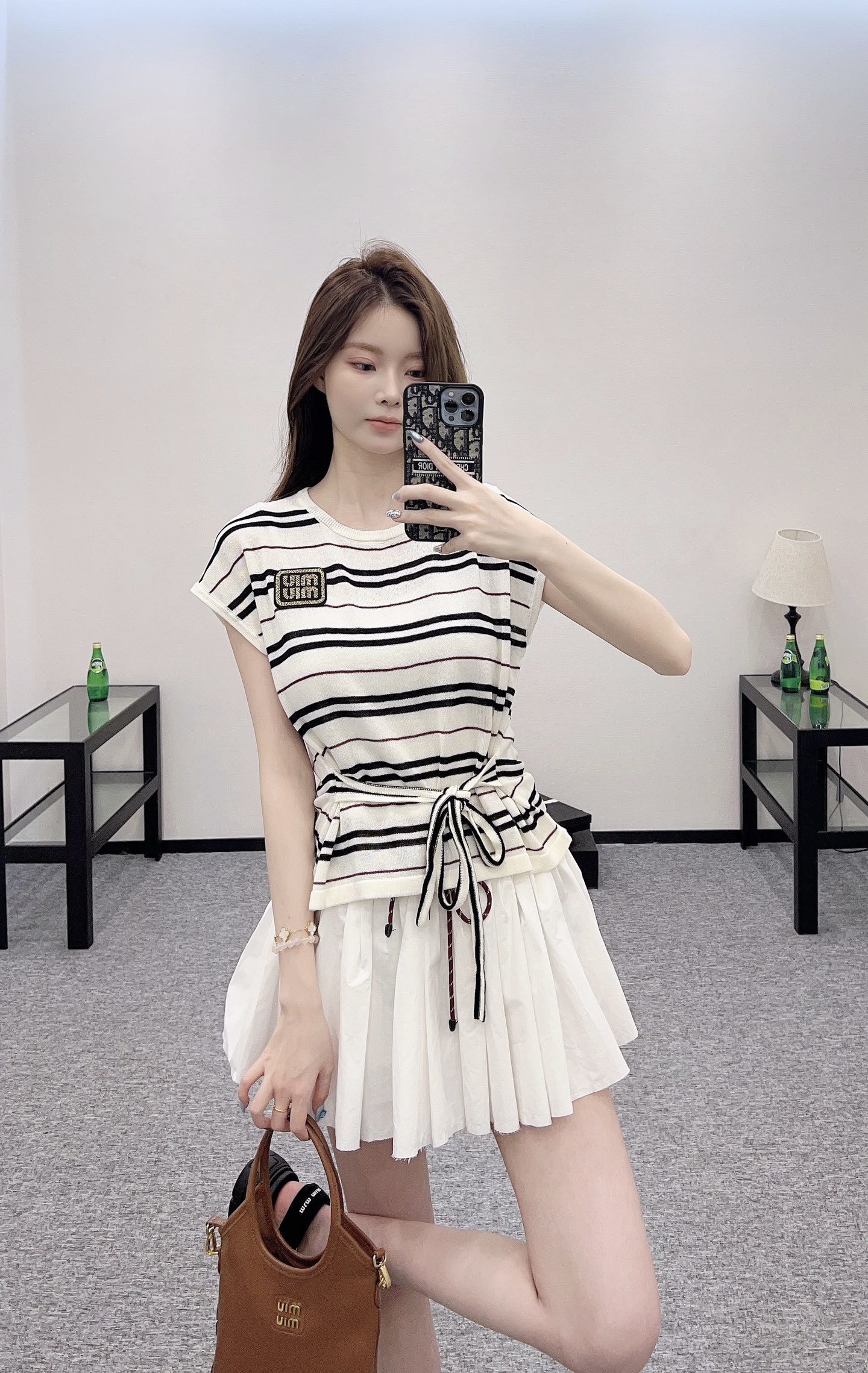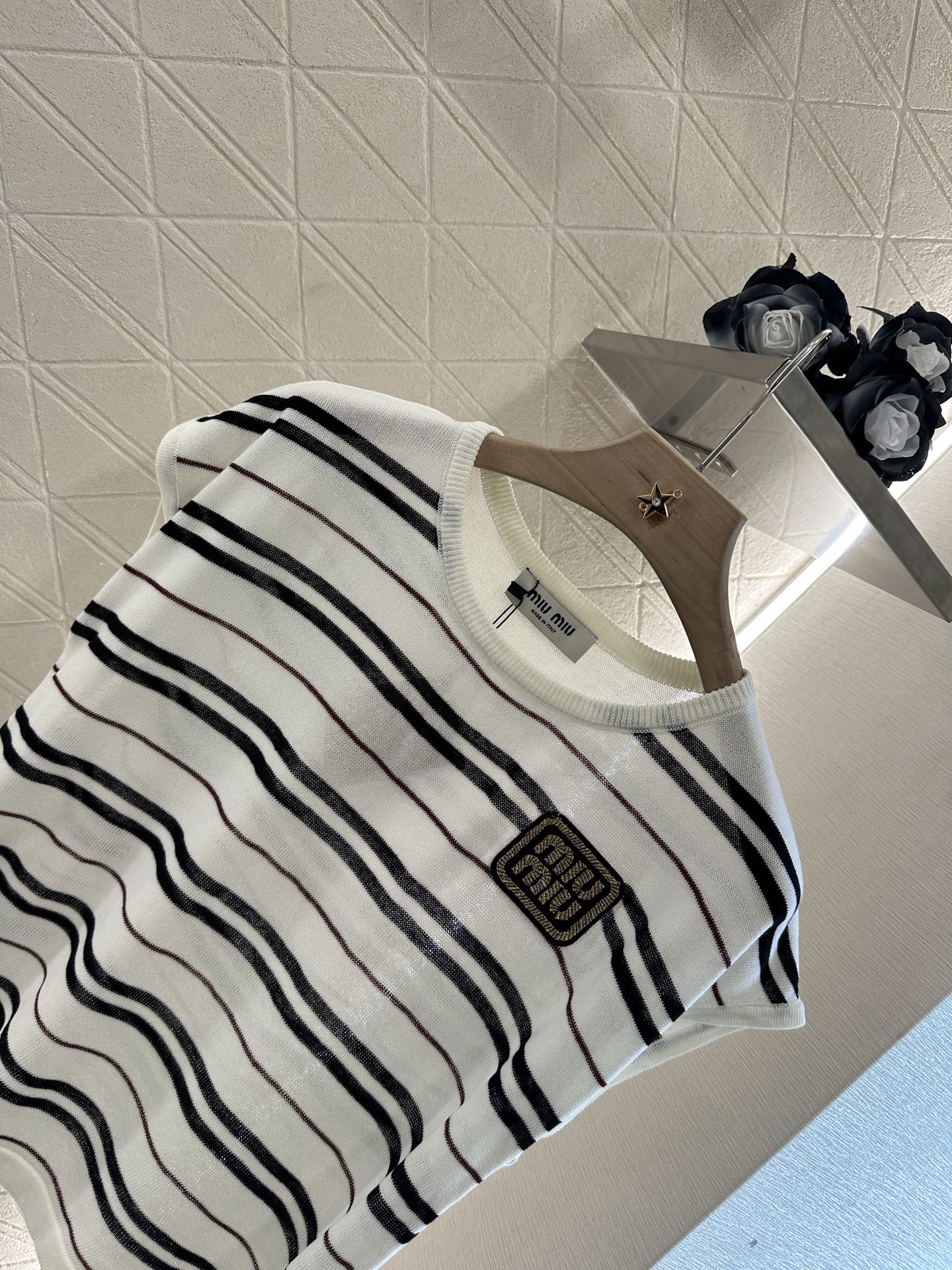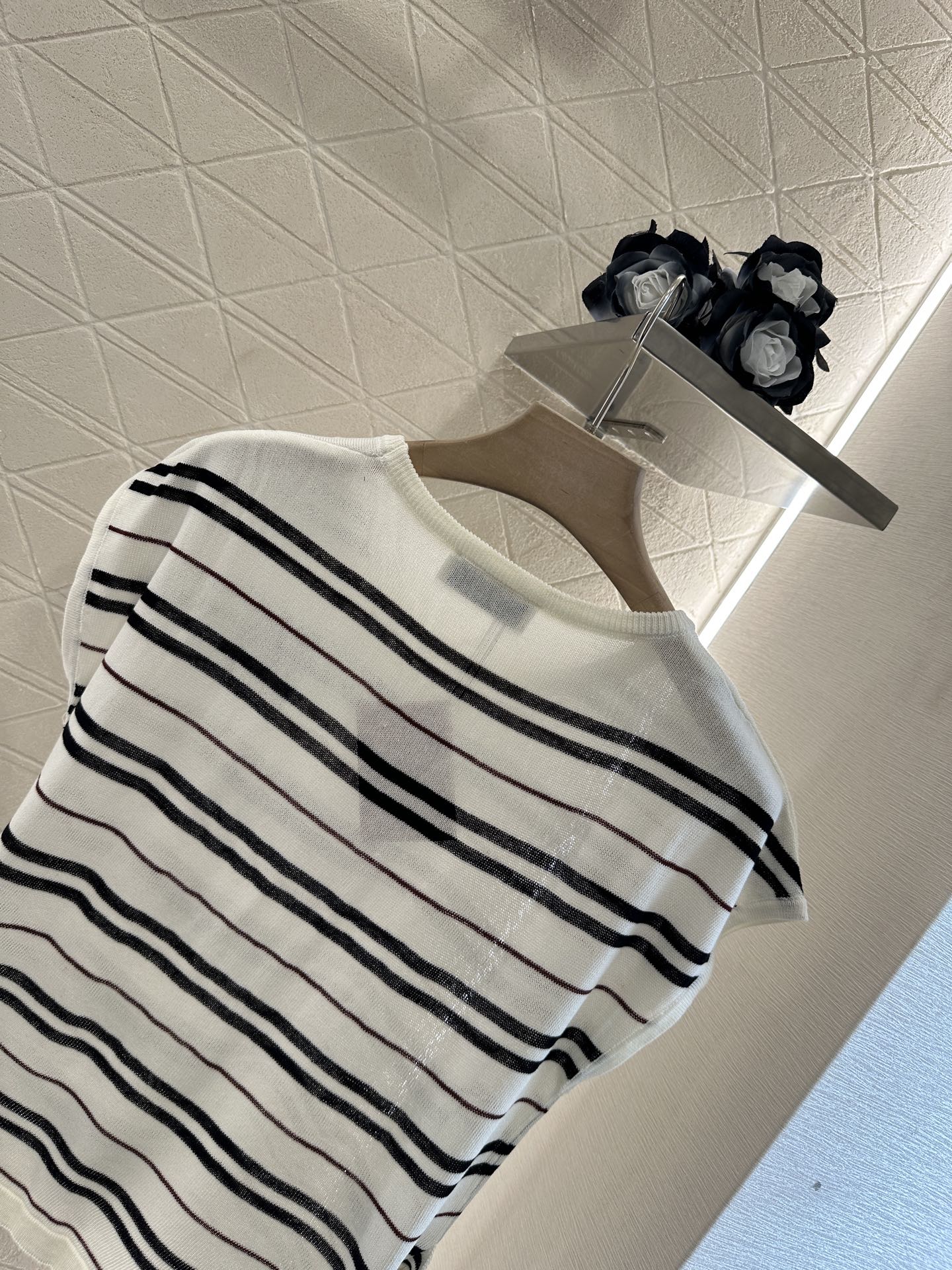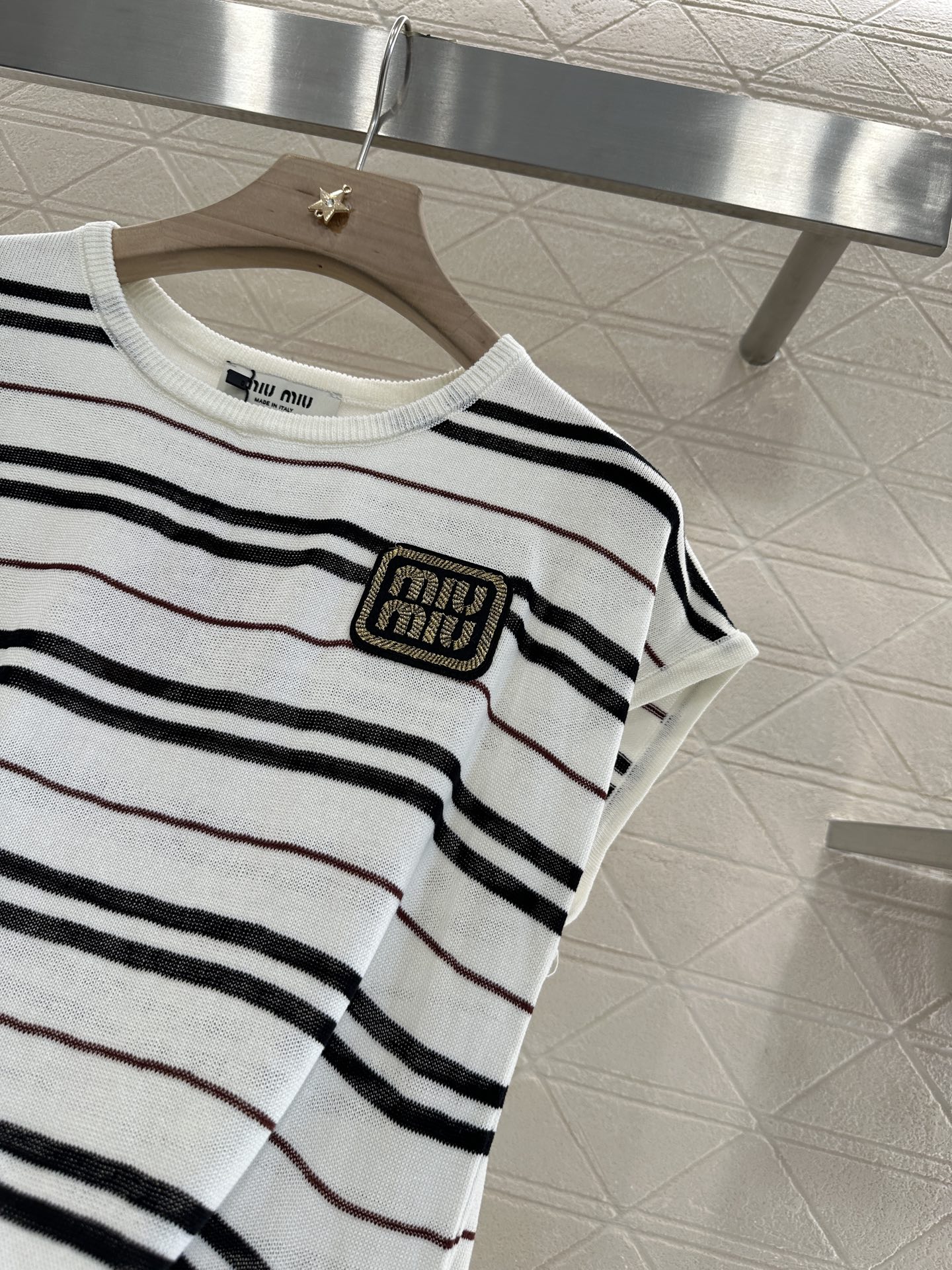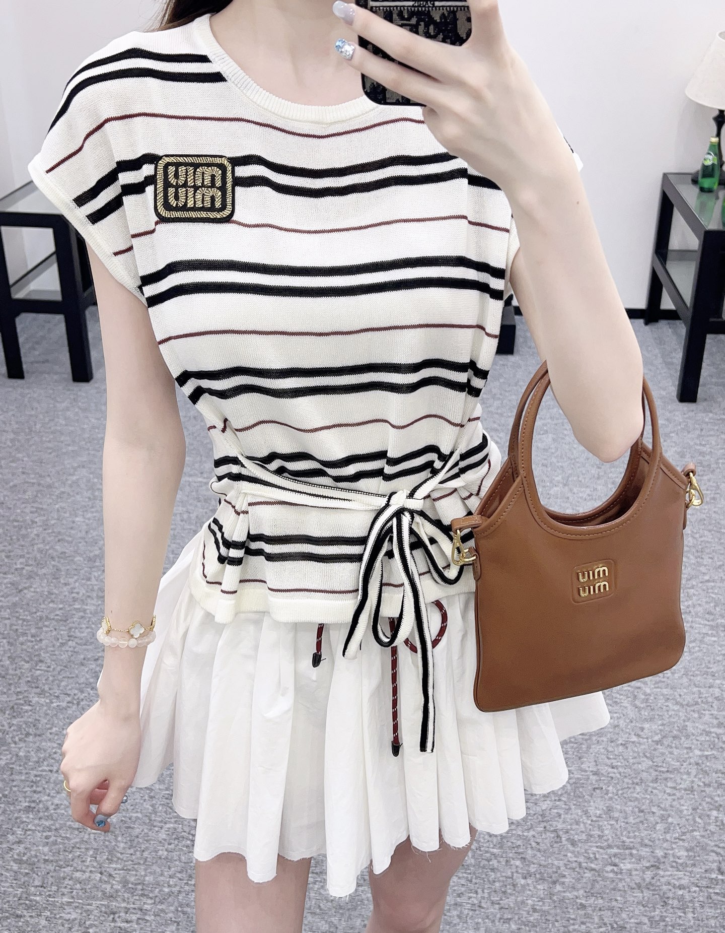 谬家*♥2025新品上架 绑带条纹针织短袖
