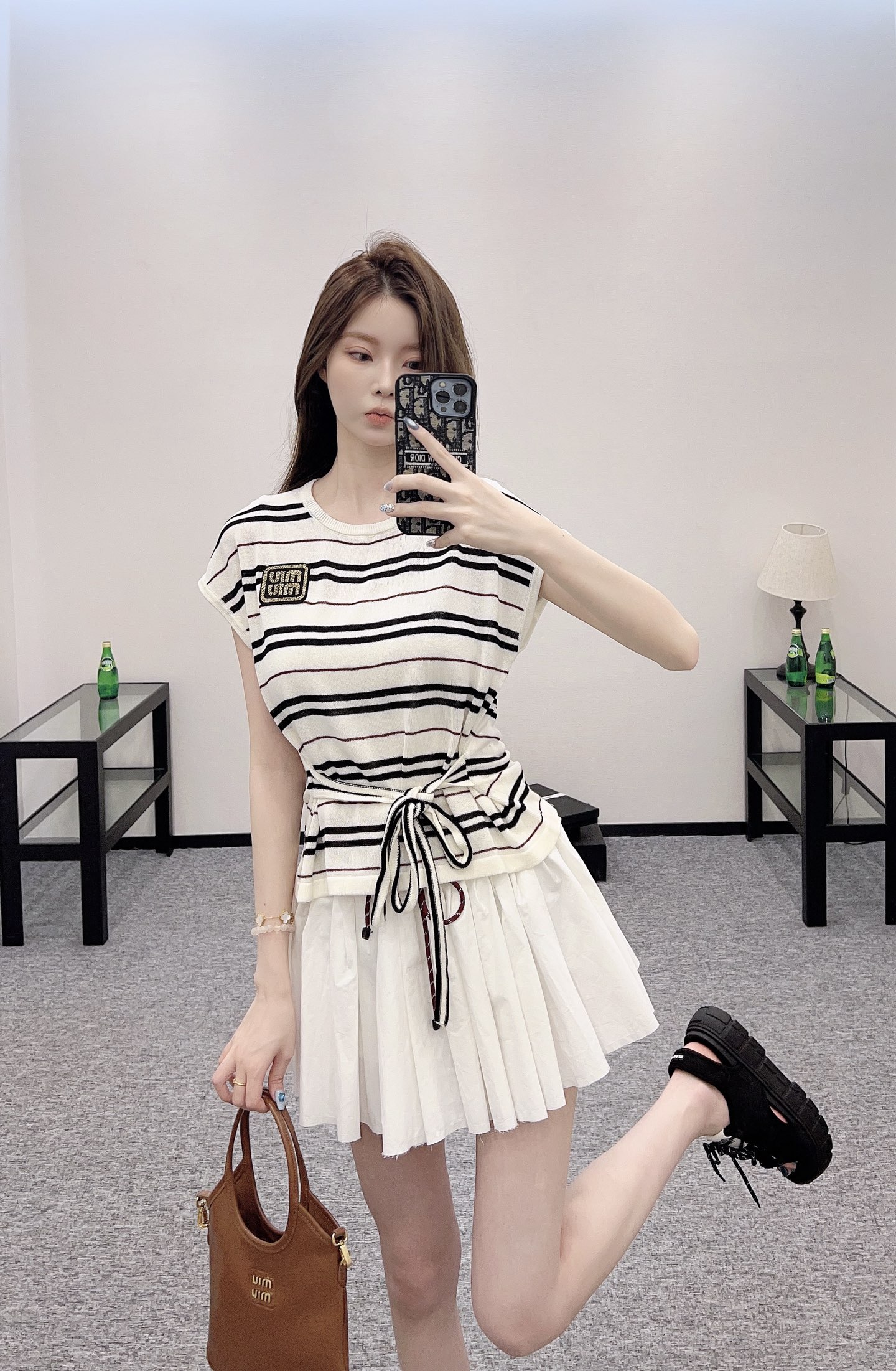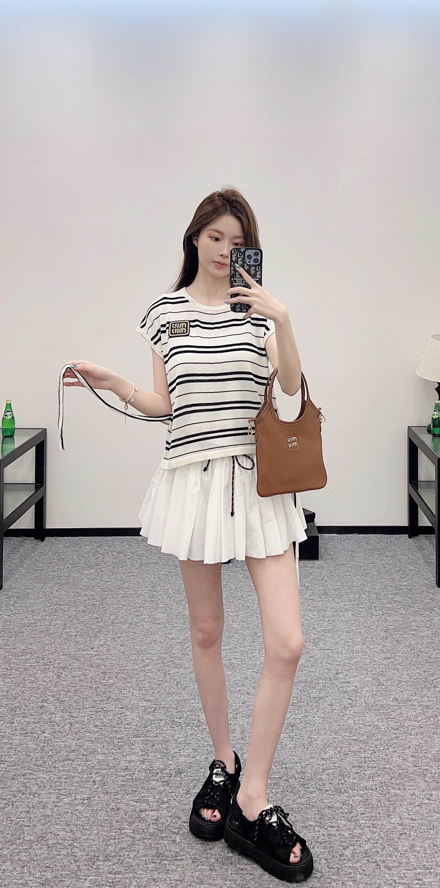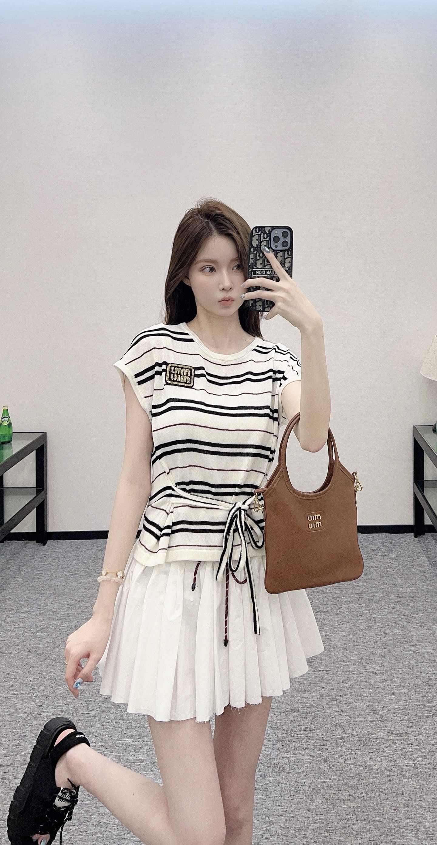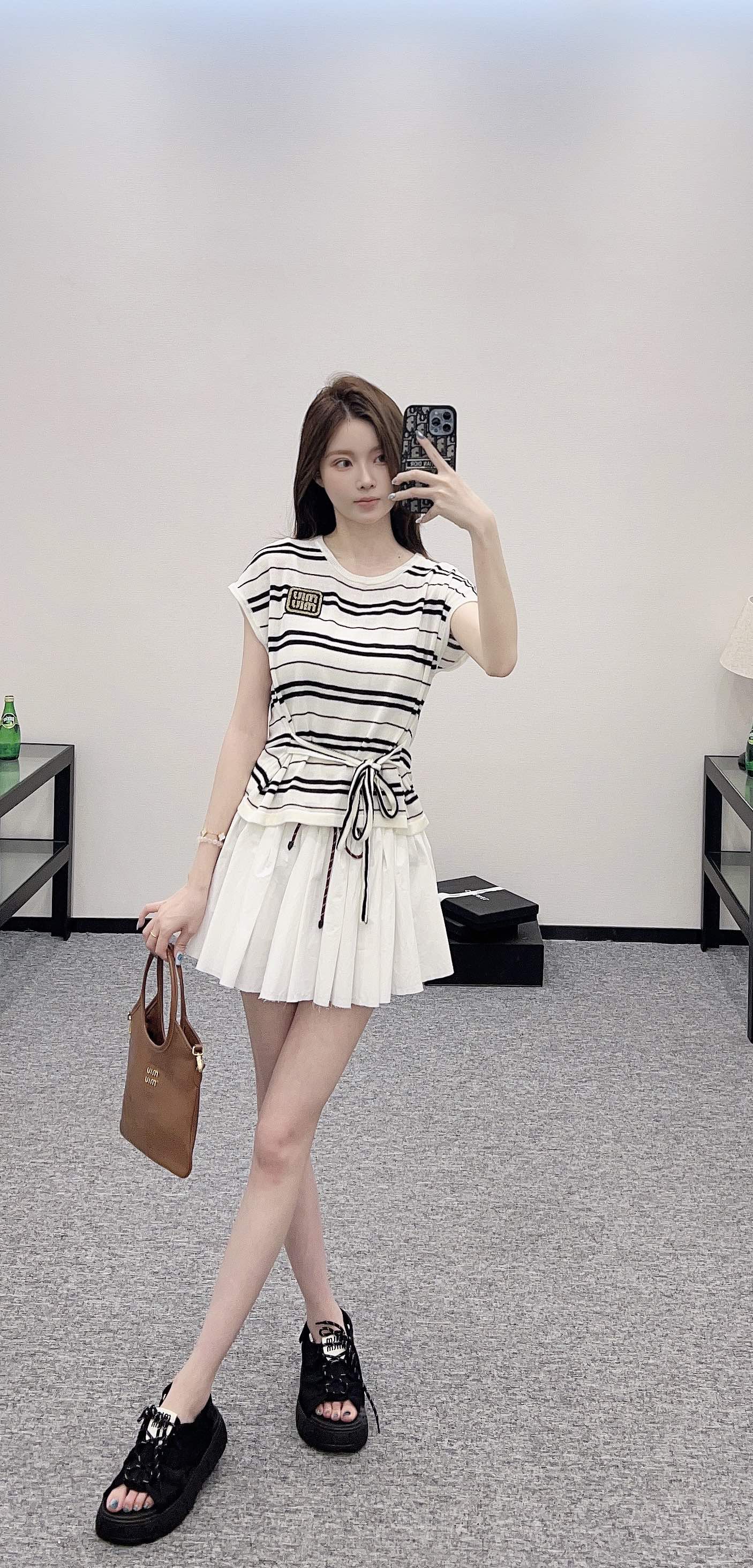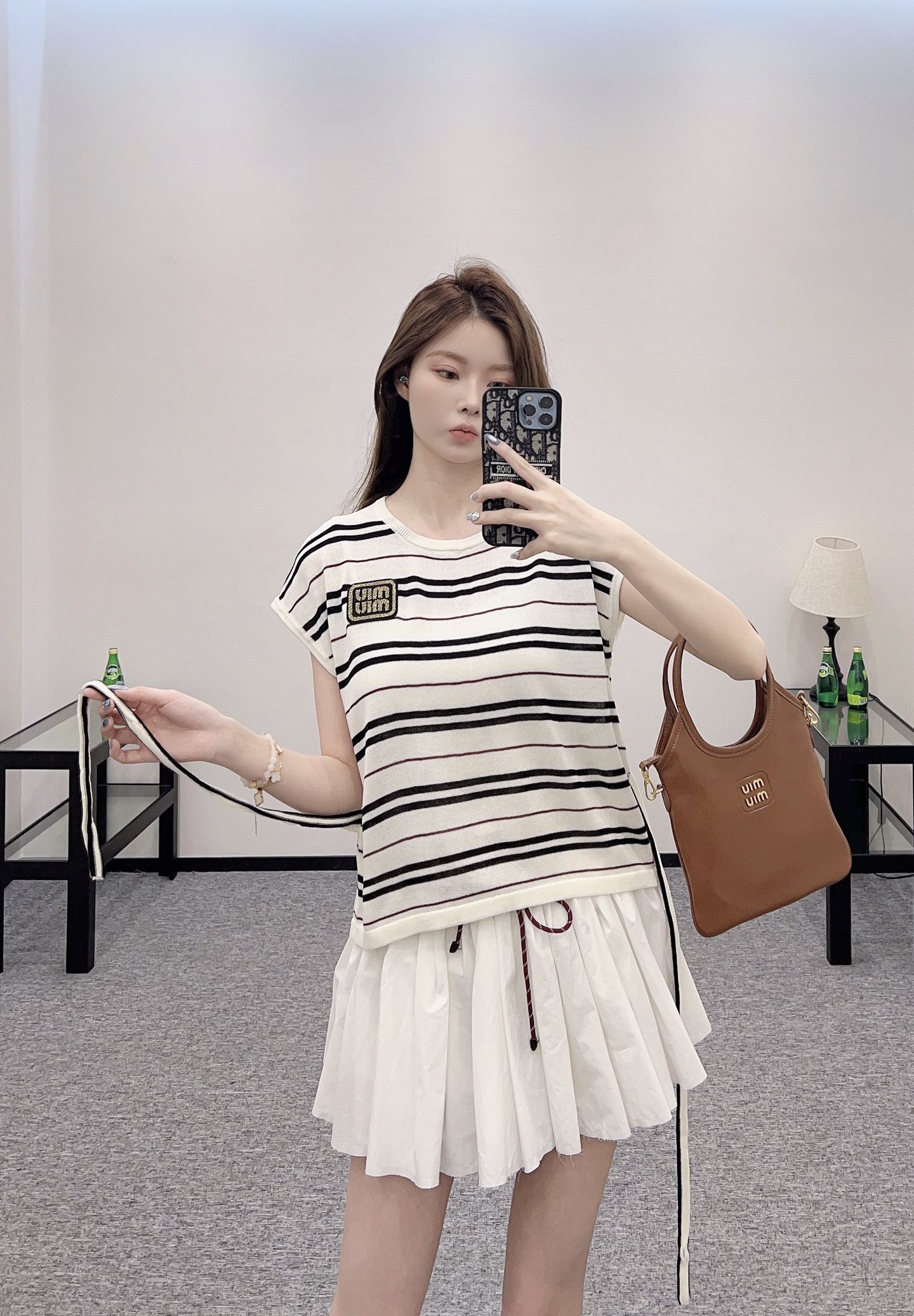 谬家*♥2025新品上架 绑带条纹针织短袖