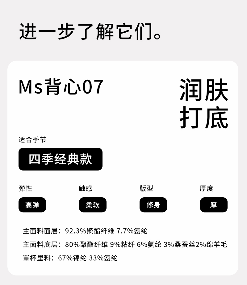 半醒Ms背心07 免穿文胸大码打底桑蚕丝羊毛IG0025