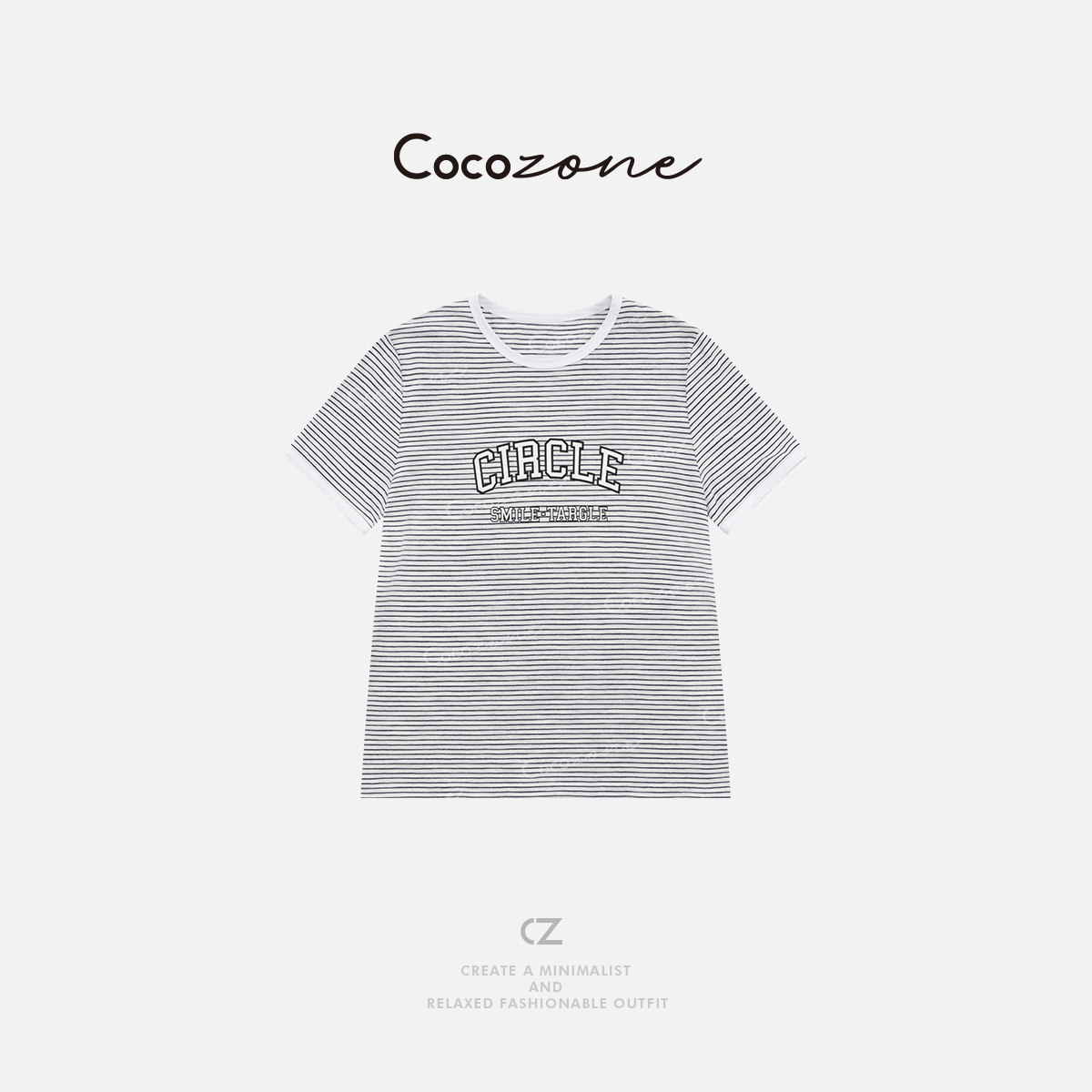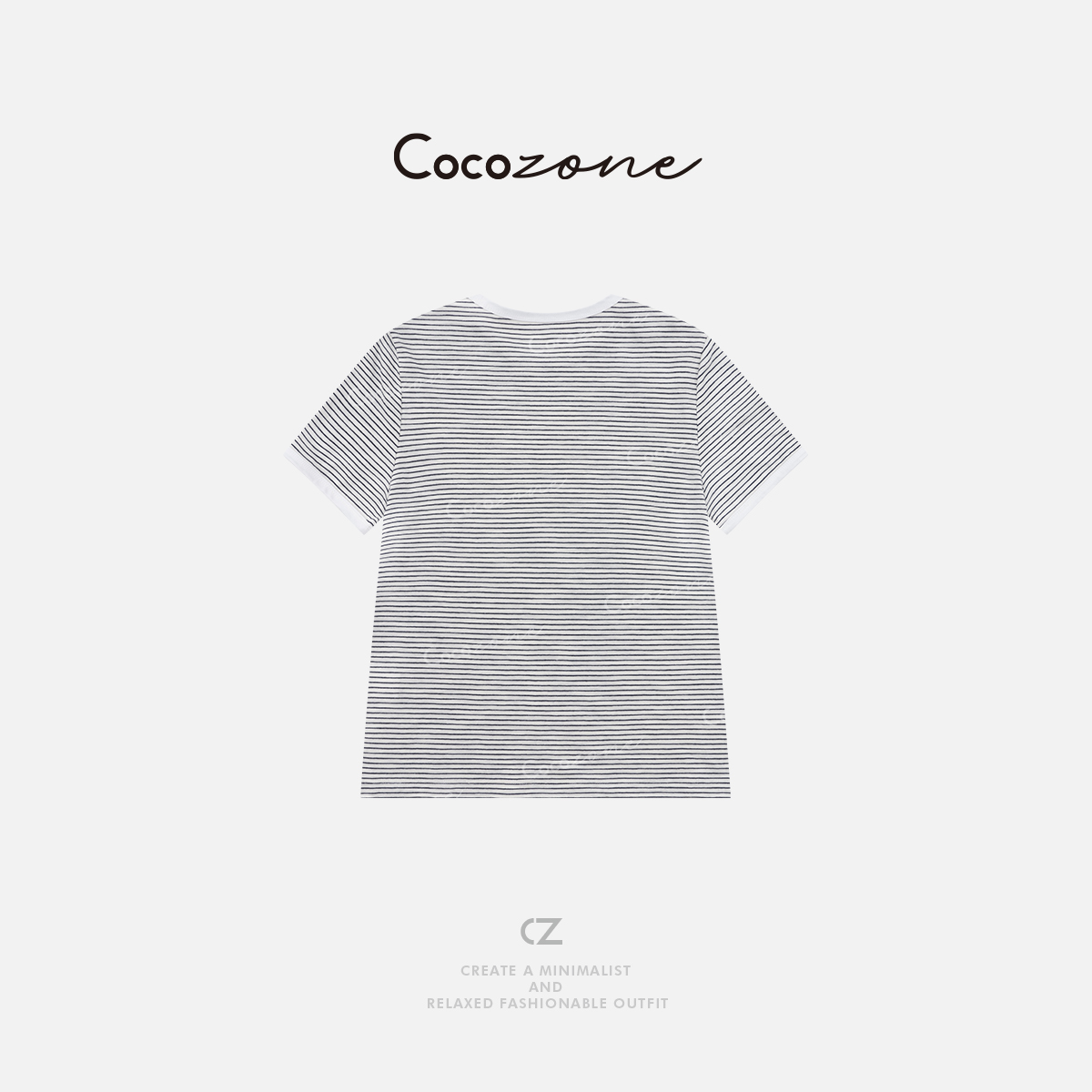 COCO ZONE 刘一一 圆领精致感撞色条纹短袖简约T恤 CD1A1144