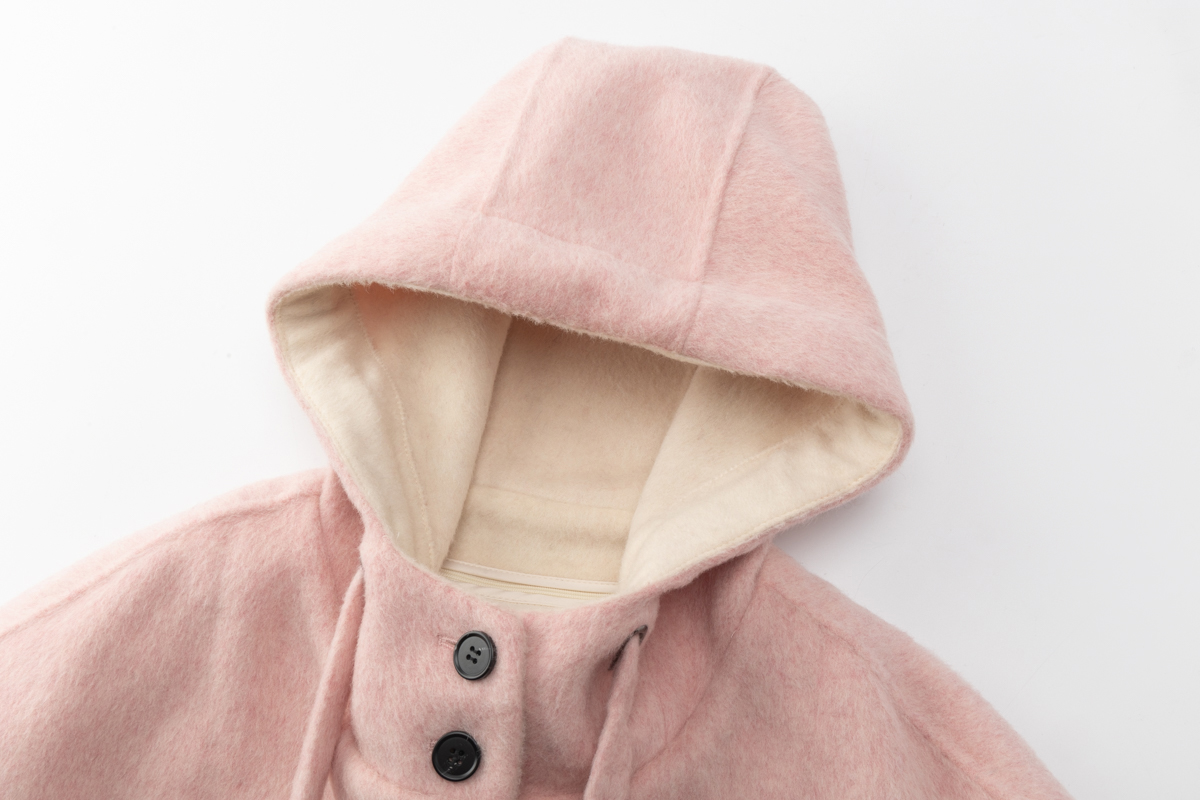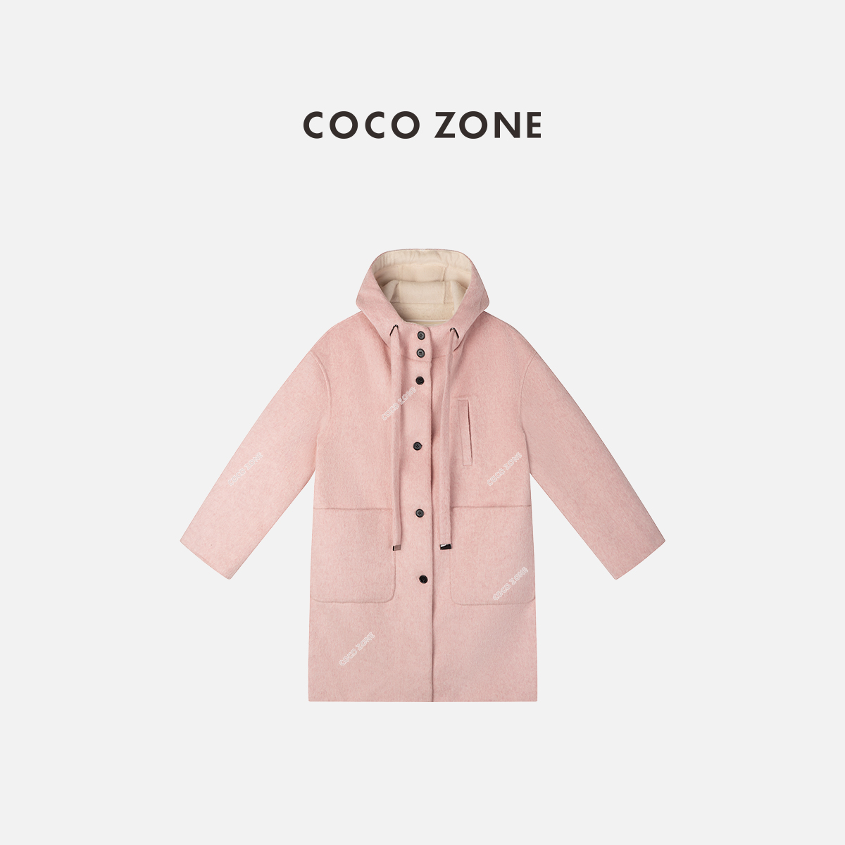 COCO ZONE 100绵羊毛连帽有内胆长款毛呢外套CC2D2906
