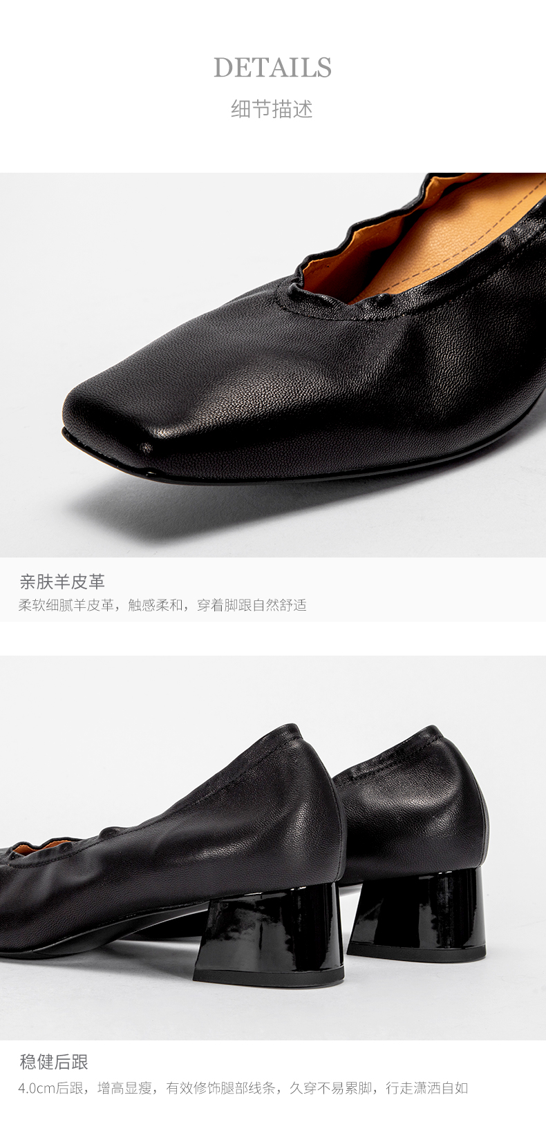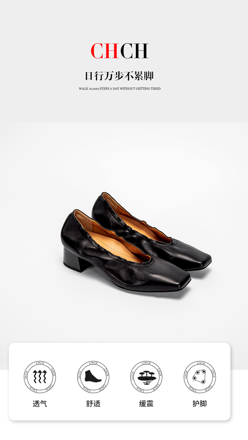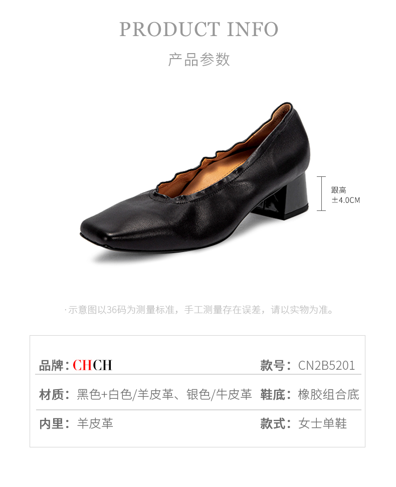 CHCH平衡鞋2024秋冬新品专柜同款 牛皮光面一字带玛丽珍浅口粗跟通勤女鞋CO2B5141