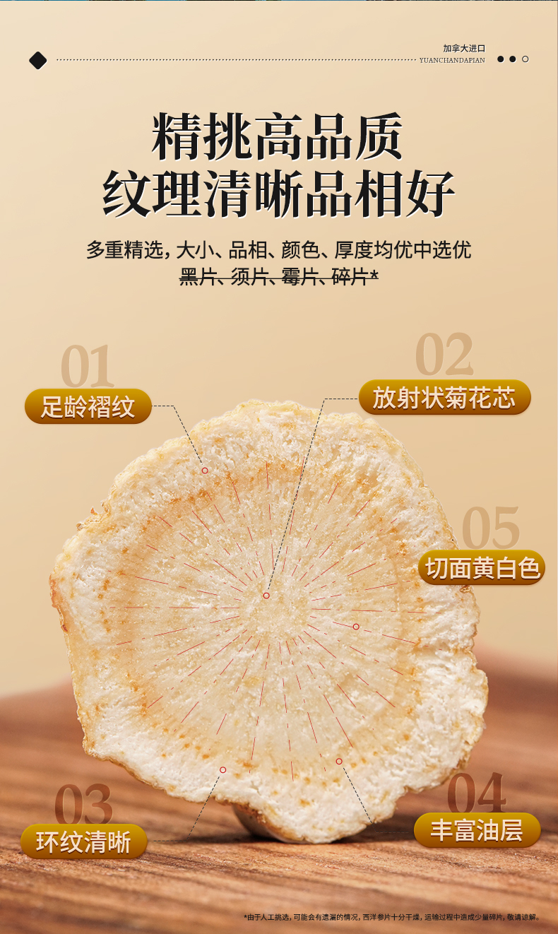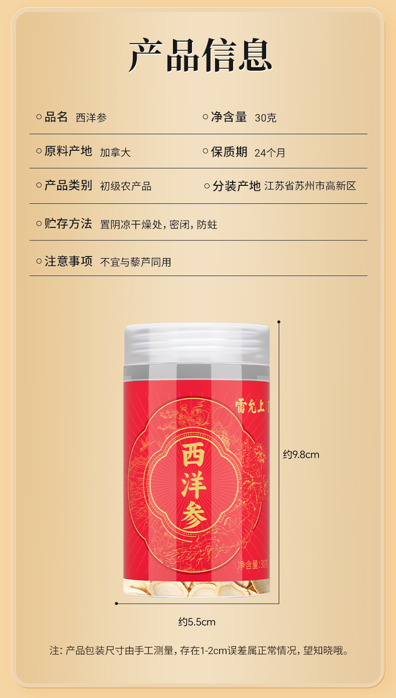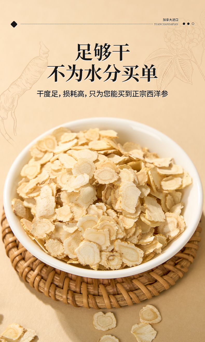 雷允上加拿大西洋参片30g/瓶(1.2-1.4cm)*2瓶装