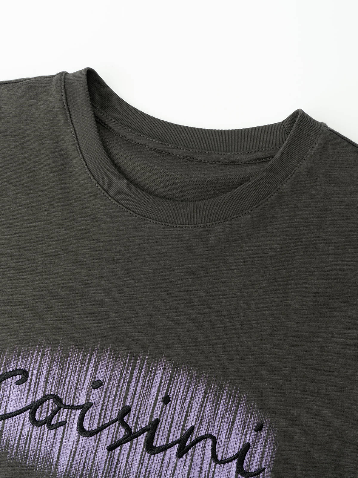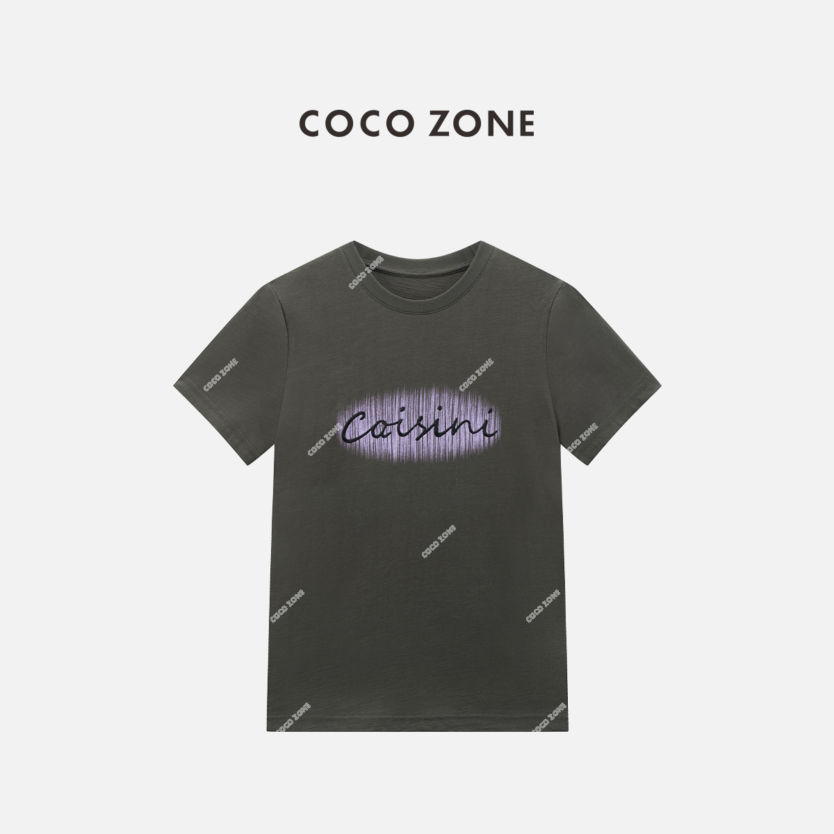 COCO ZONE “灰紫”时尚字母短袖T恤百搭圆领休闲上衣CC2B1182