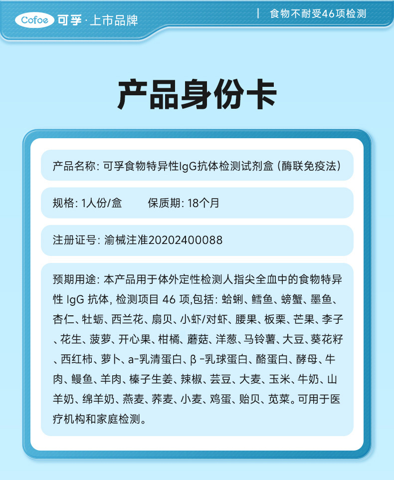 食物不耐受检测居家自检 46项基因lgG检测 慢性过敏源测试 成人儿童