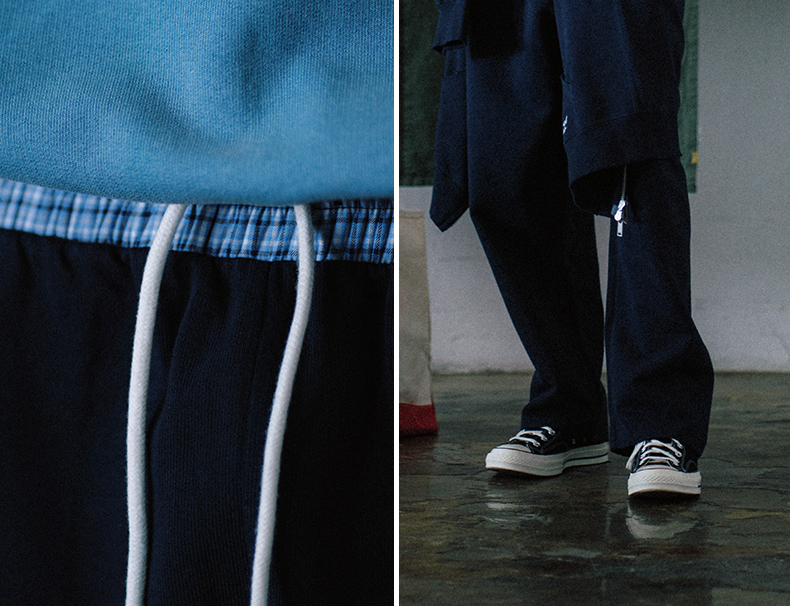 a minimal club格纹撞色裤腰直筒休闲卫裤水洗微吊档AM59SP07