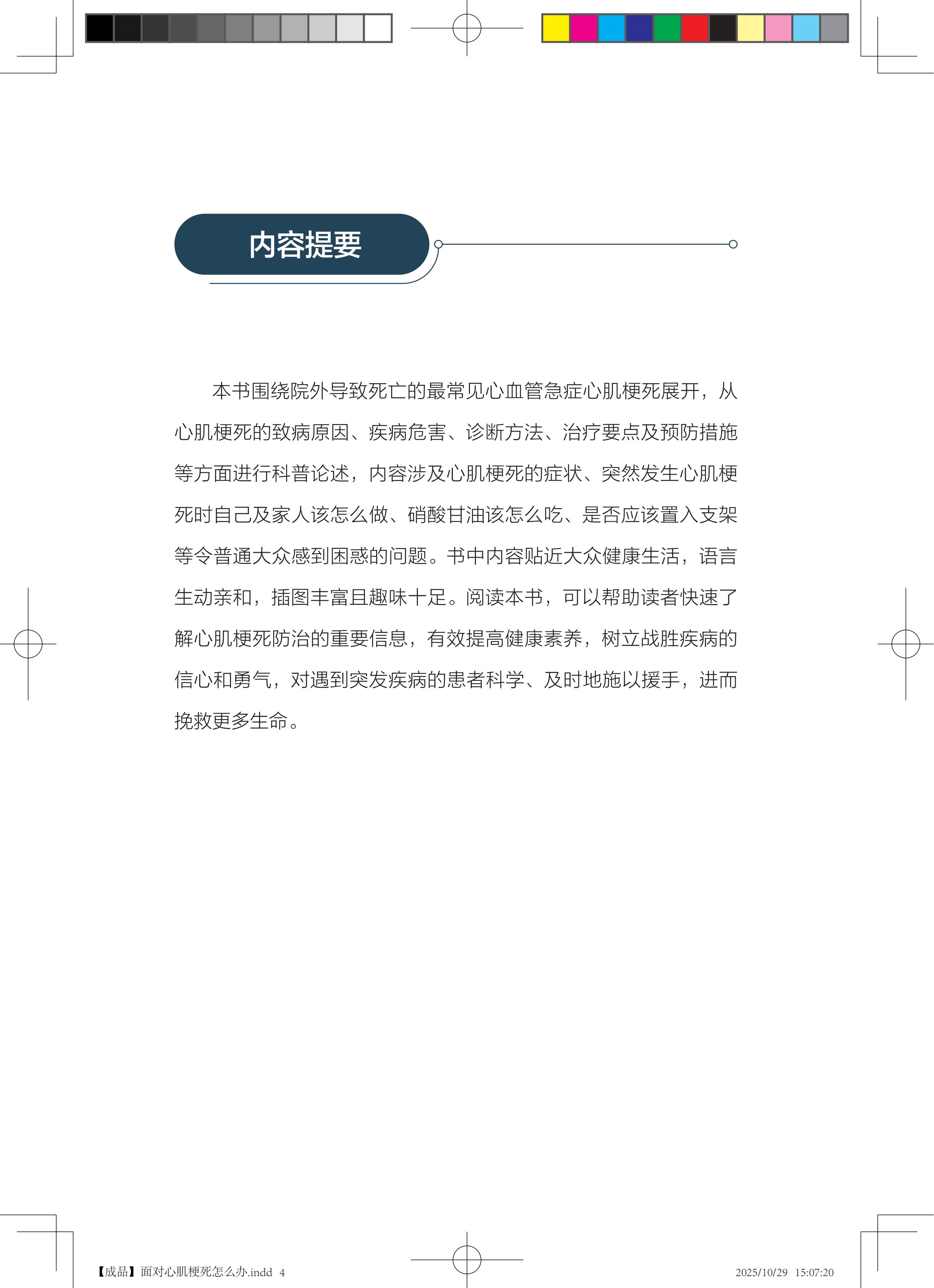 书中内容贴近大众健康生活,语言生动亲和,插图丰富且趣味十足。阅读本书,可以帮助读者快速了解心肌梗死防治的重要信息,有效提高健康素养,树立战胜疾病的信心和勇气,对遇到突发疾病的患者科学、及时地施以援手,进而挽救更多生命。