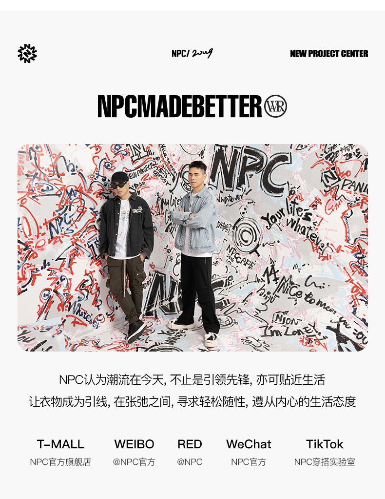 NPC潮牌100%棉做旧复古牛仔衬衫秋渐变装饰口袋炒盐工艺NP5CDC25