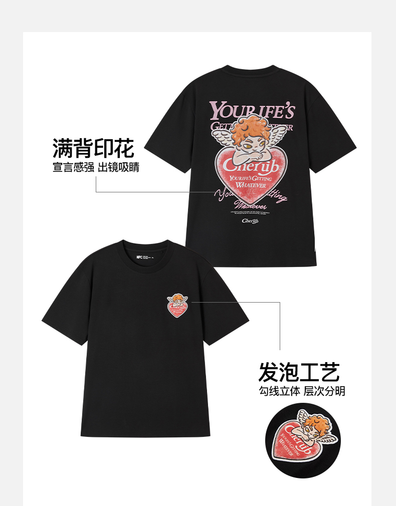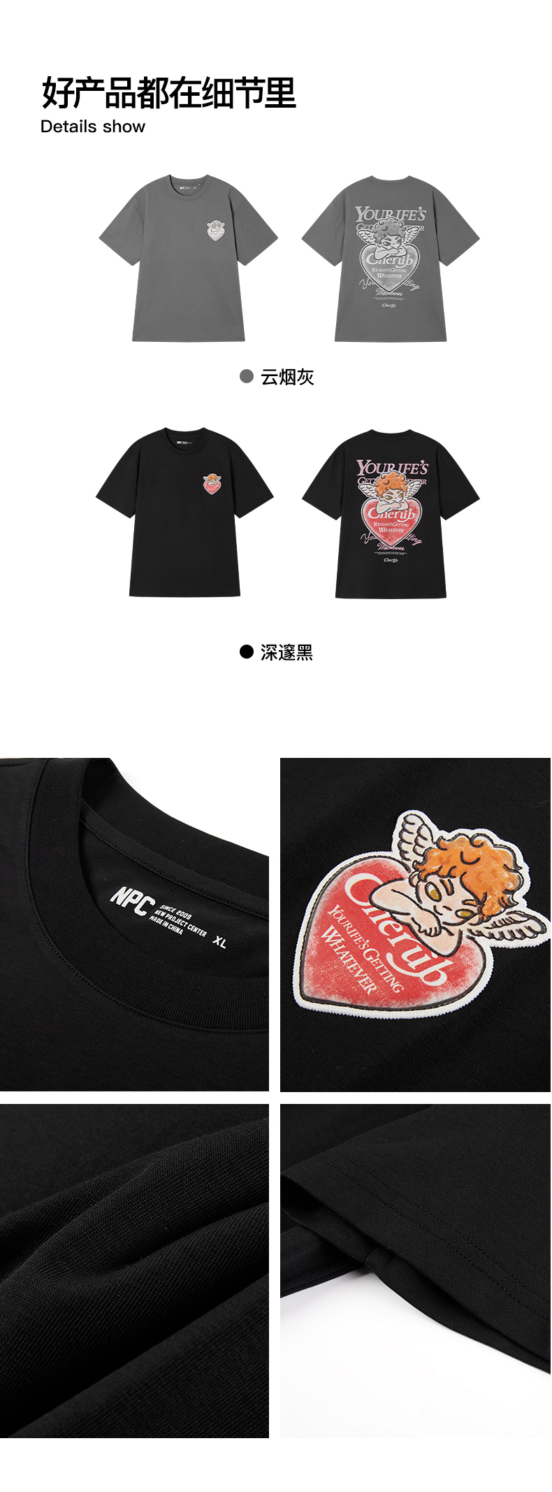 NPC潮牌背后撞色天使爱心印花短袖T恤男童趣索罗娜透气NP54TE24