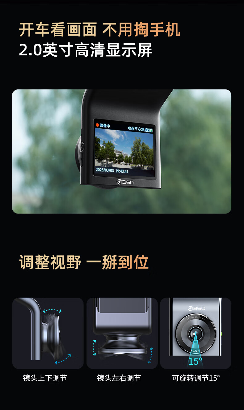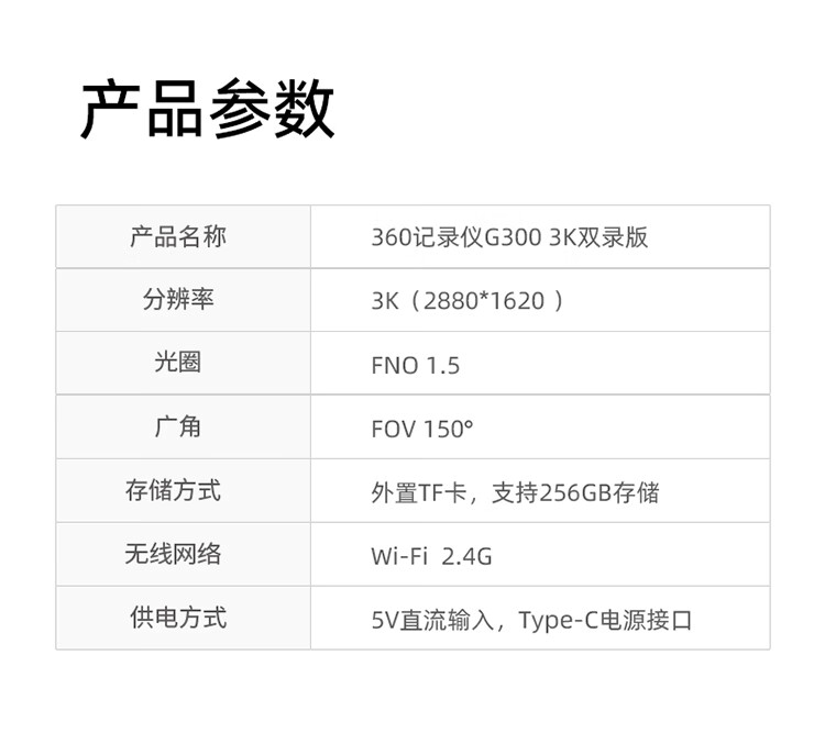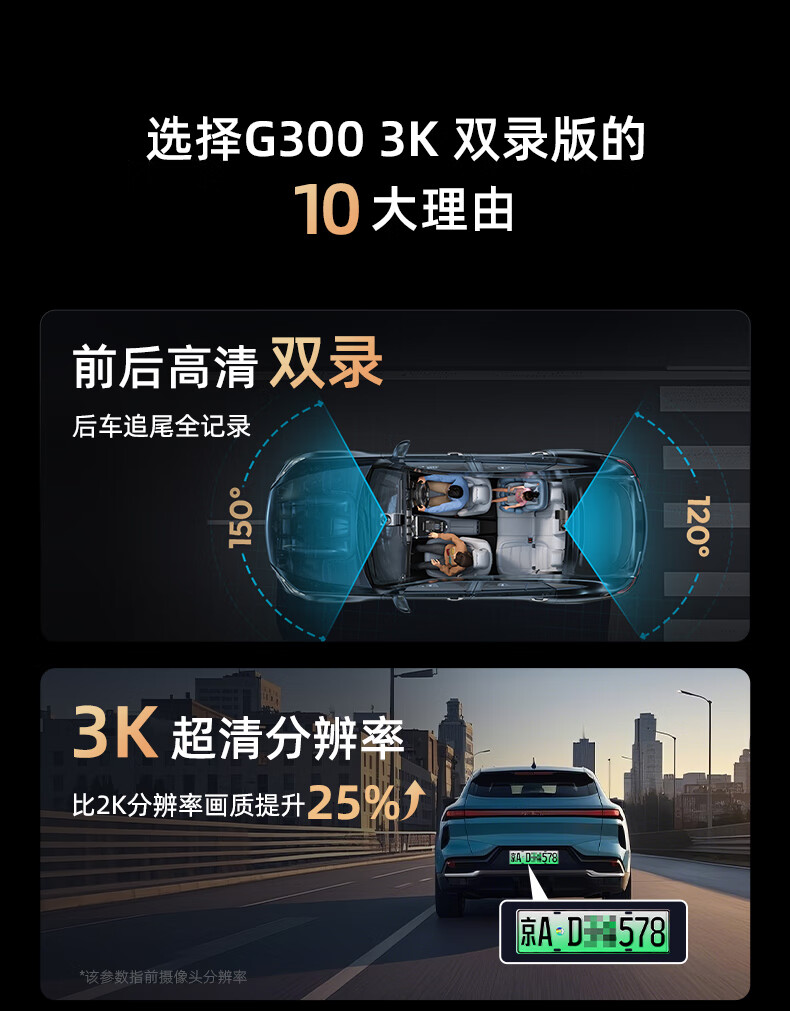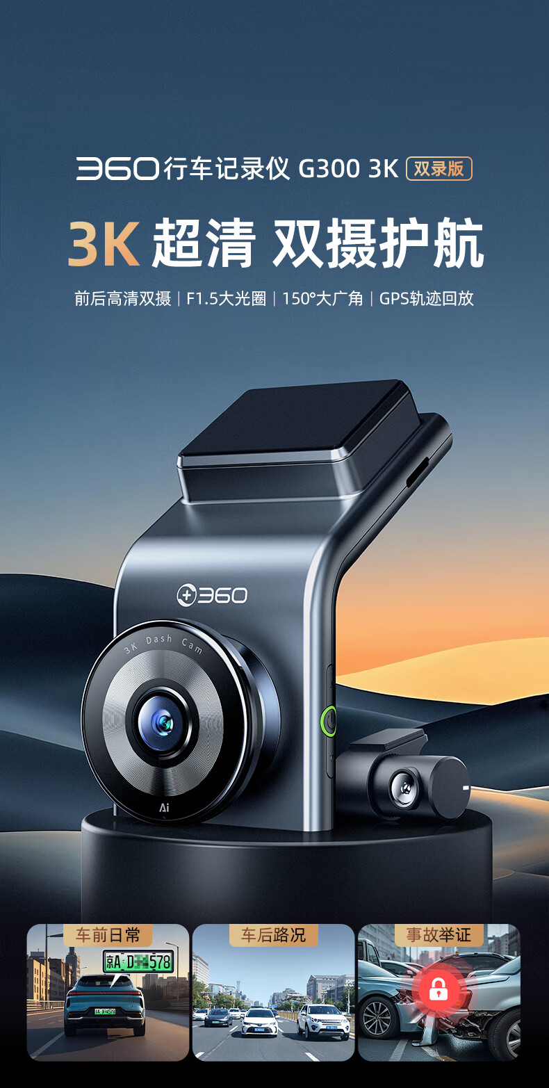 360行车记录仪G300 3K双录版