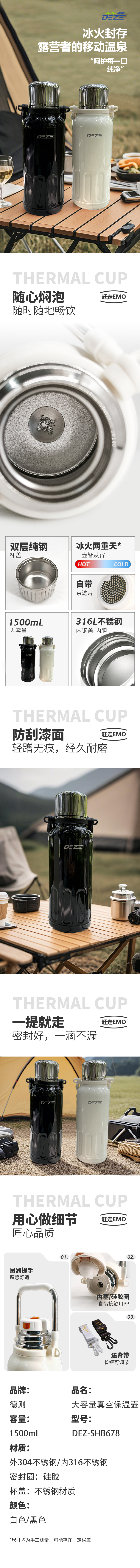 德则大容量真空保温壶DEZ-SHB678 黑/白