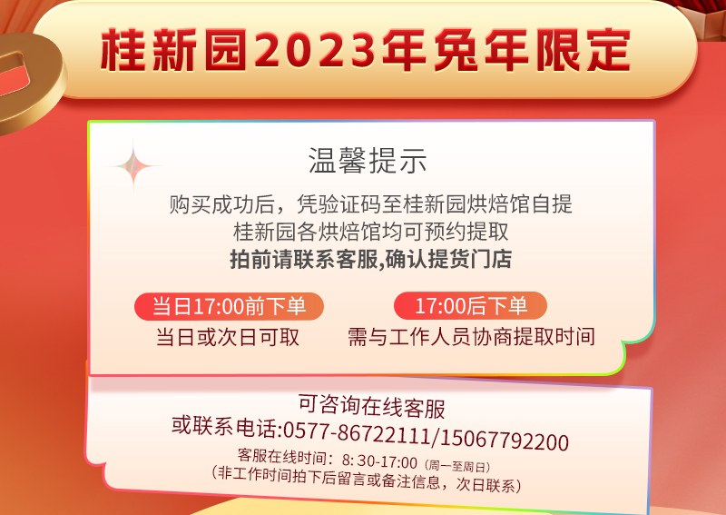 【福兔贺岁】温州桂新园手工烘焙馆——2023春节新品 新年限定纯乳脂生日蛋糕【除夕当天下午三点后订单暂不预约】【1月29日恢复正常预约】