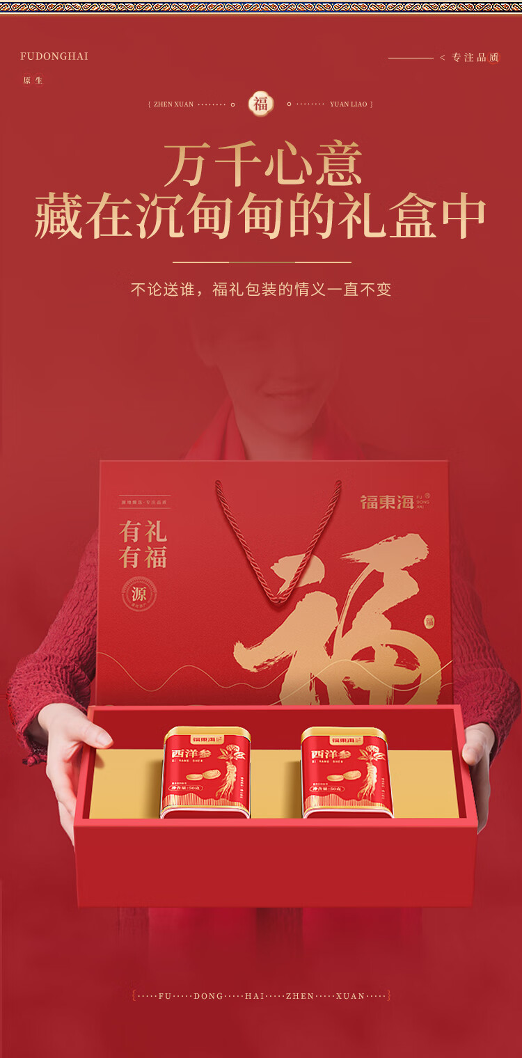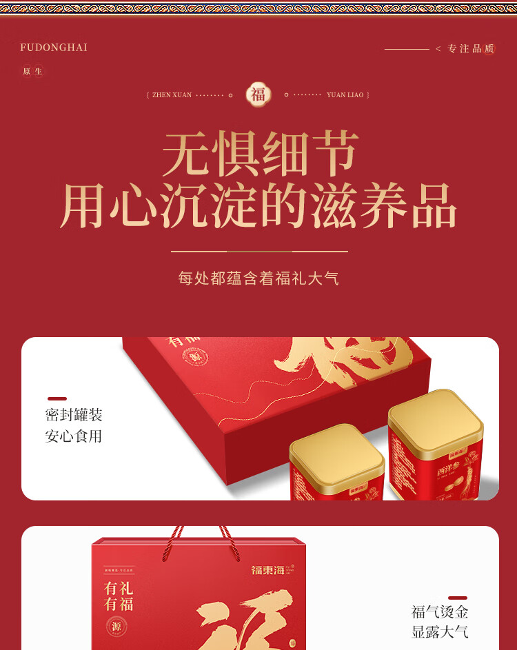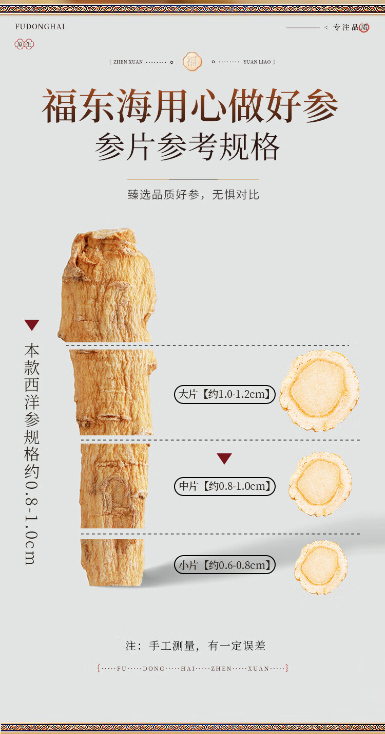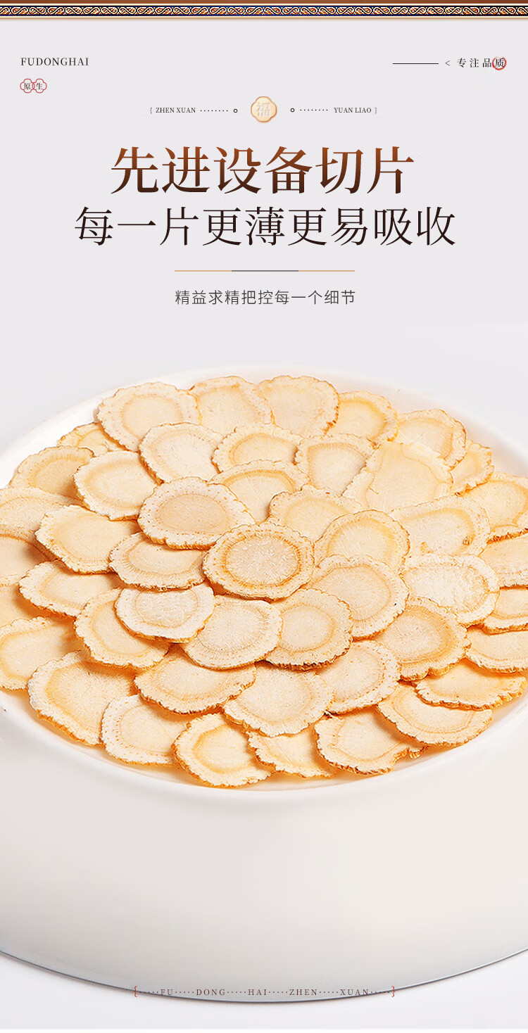 福东海 西洋参片100克(约1.0-1.2cm)花旗参片长白山人参皂苷 礼盒装
