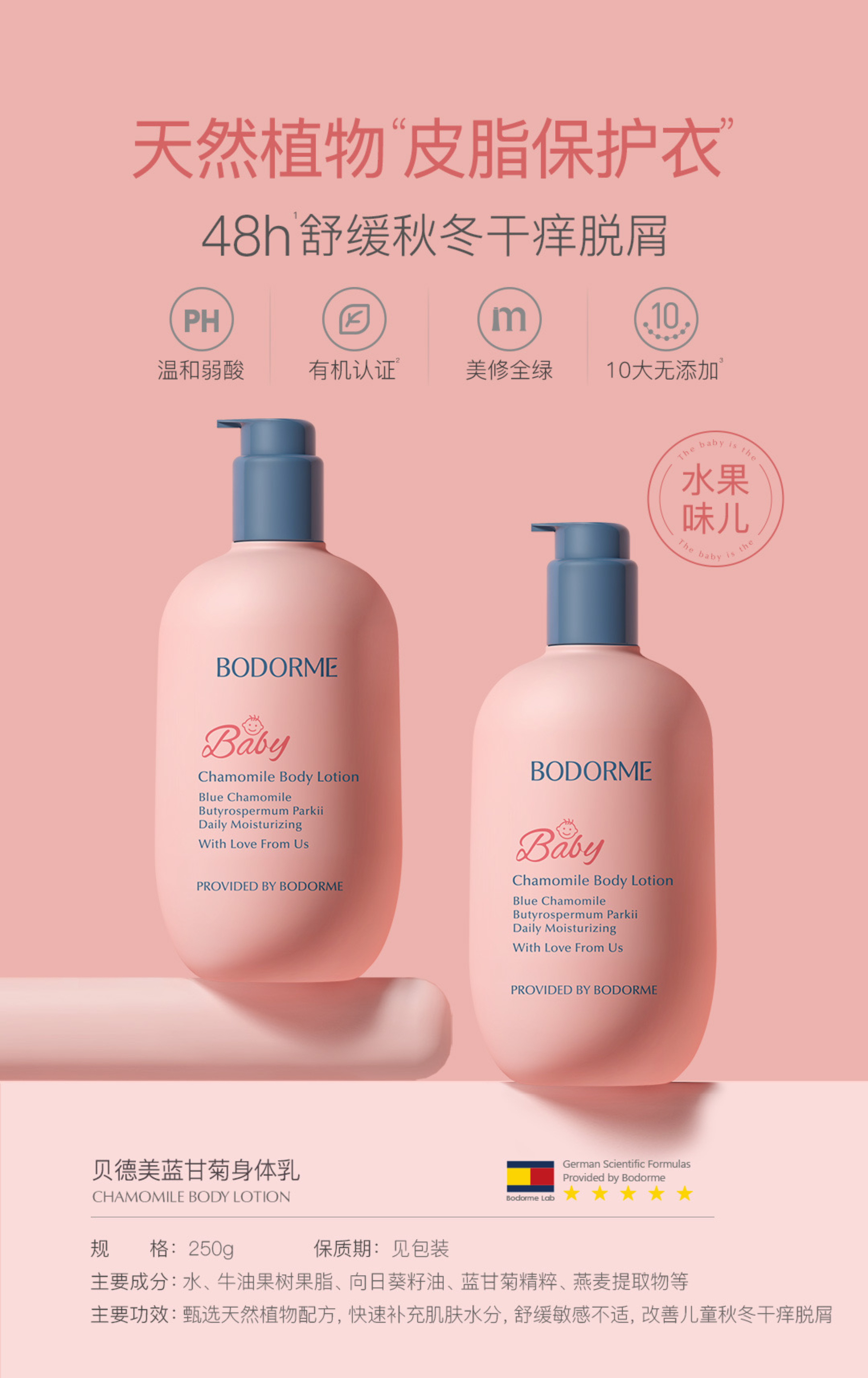 [屁侠推荐]贝德美 bodorme蓝甘菊身体乳 XIU护保湿滋润保湿乳 婴儿宝宝全身可用250g