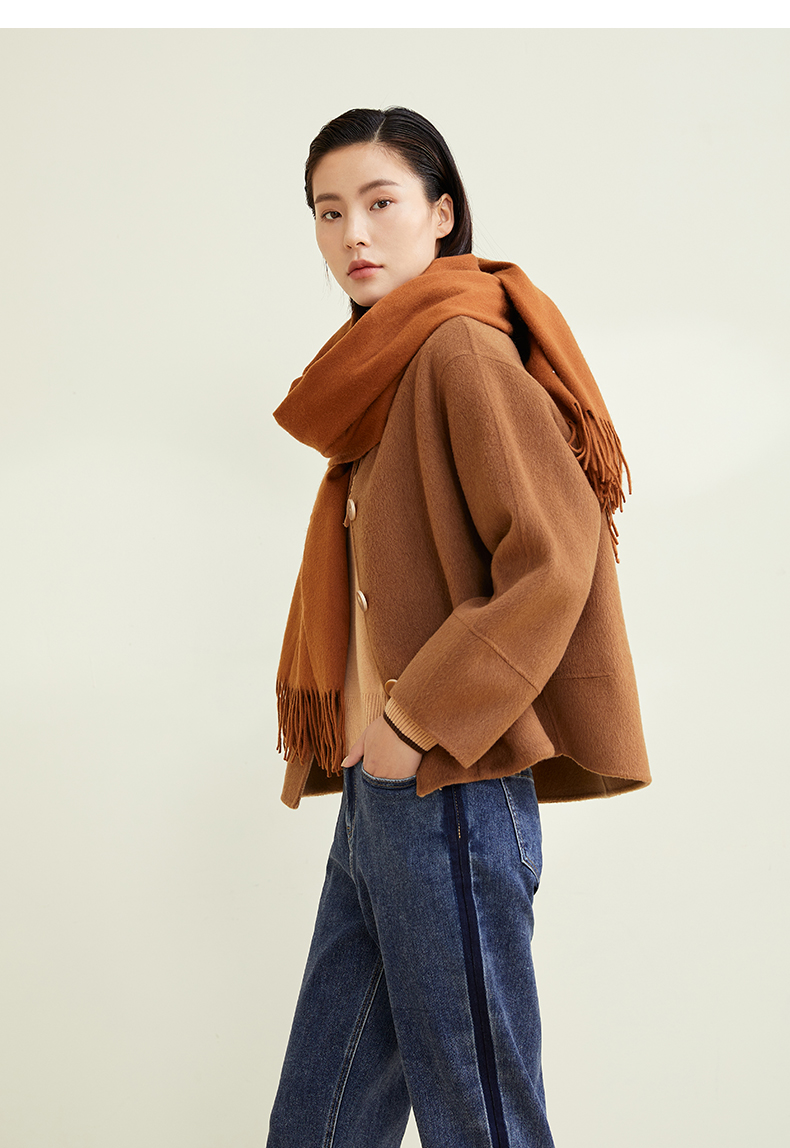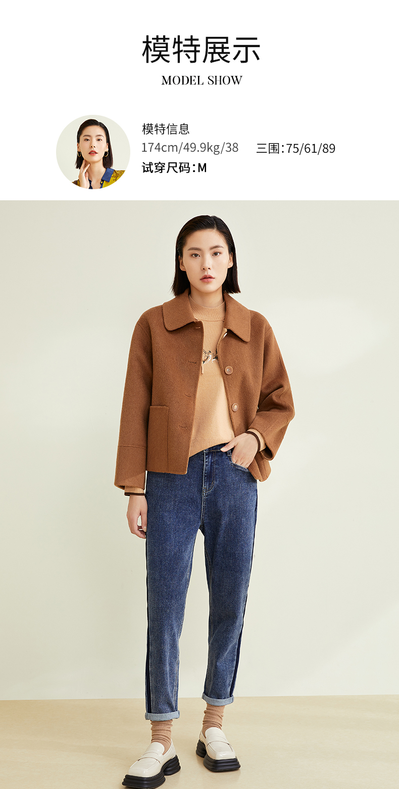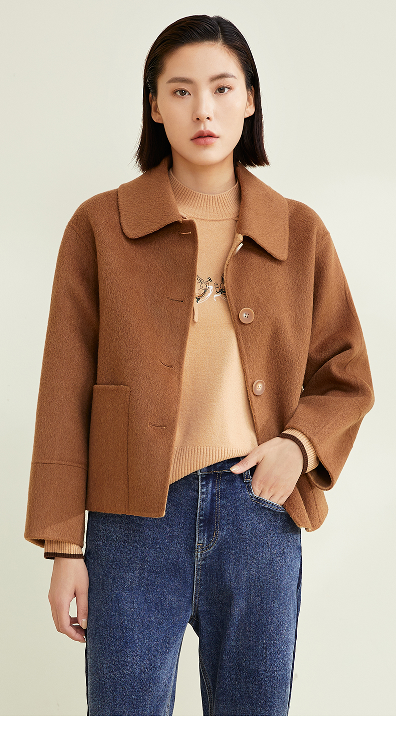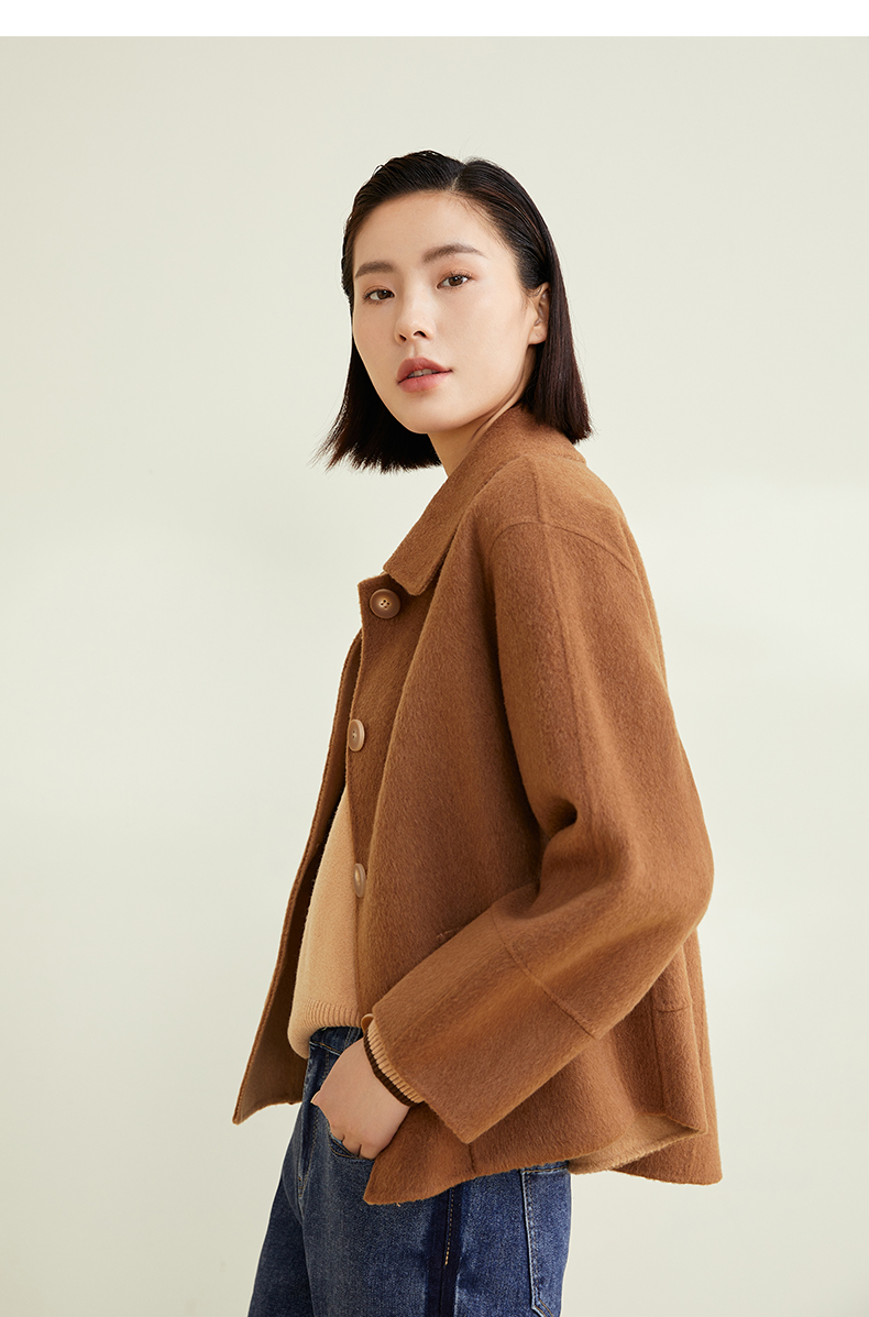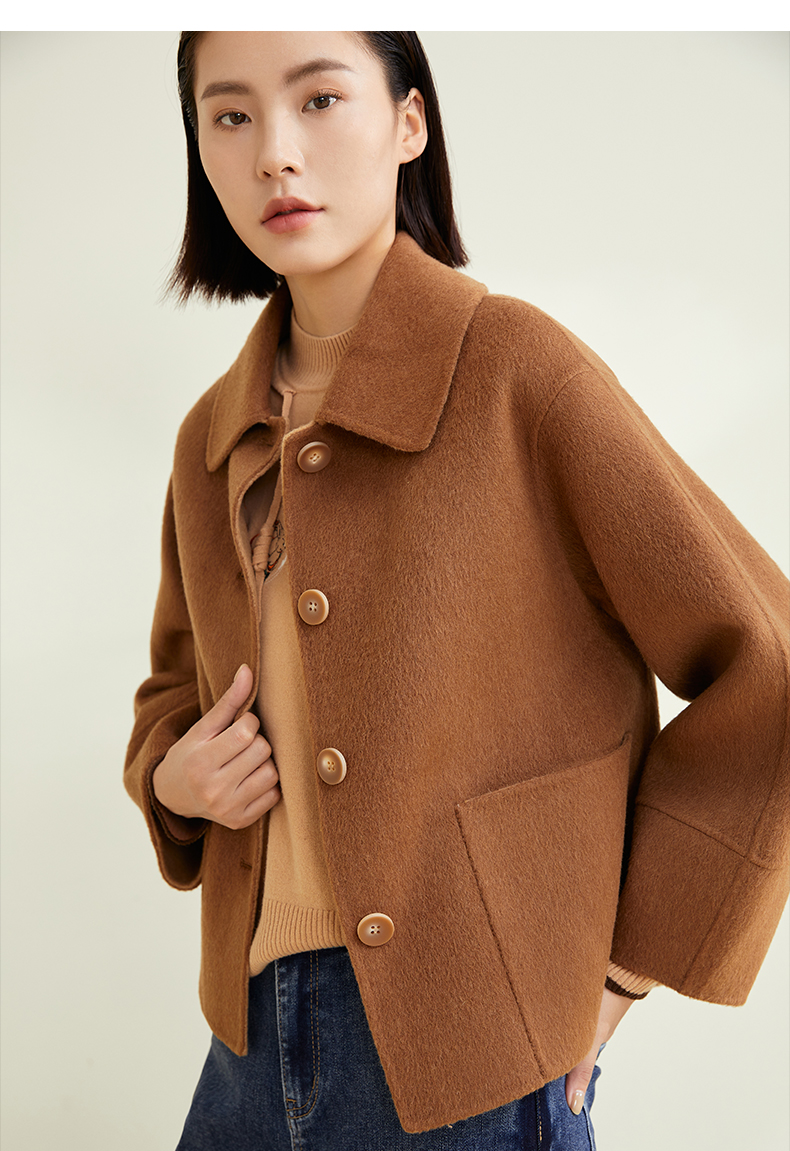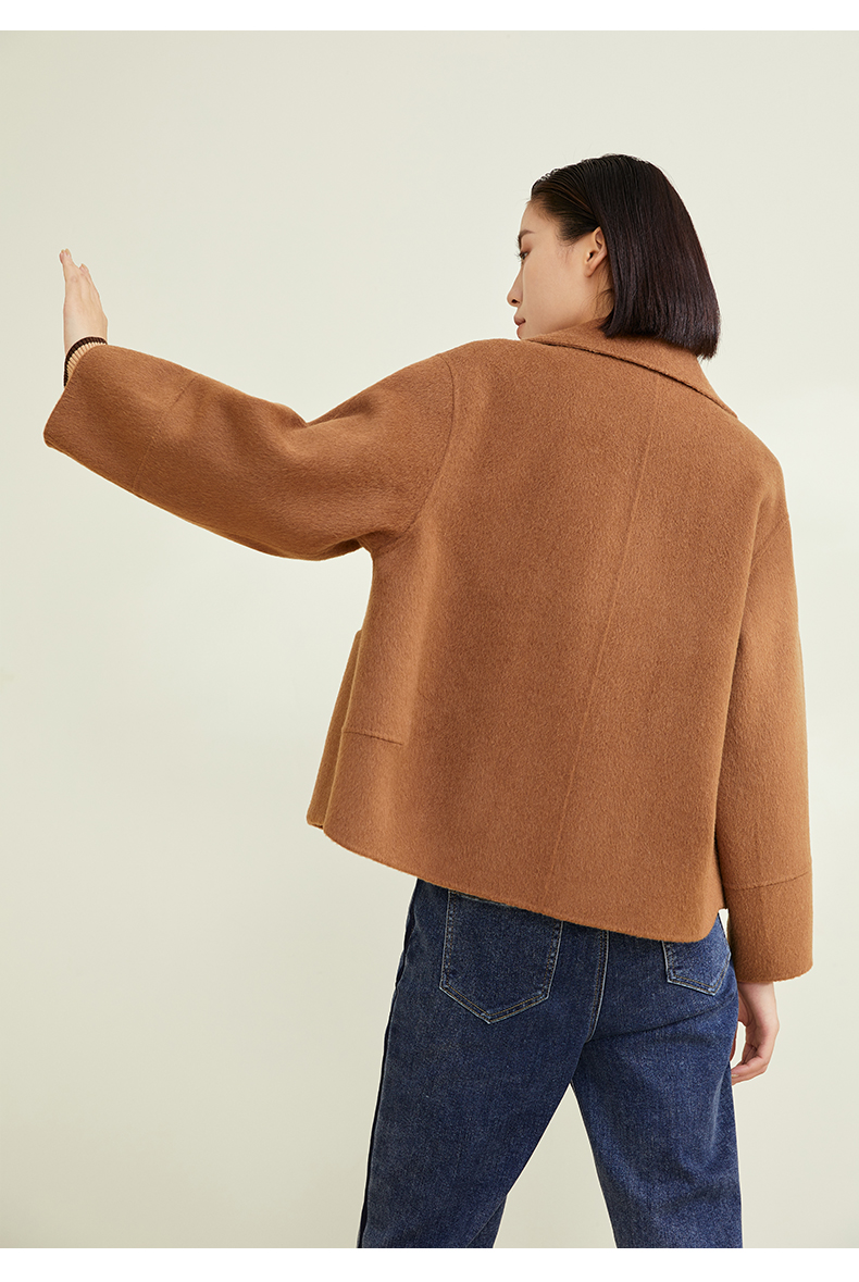 玳莎双面呢短外套女22冬季新款简约气质显瘦翻领毛呢大衣小个子 CD37302