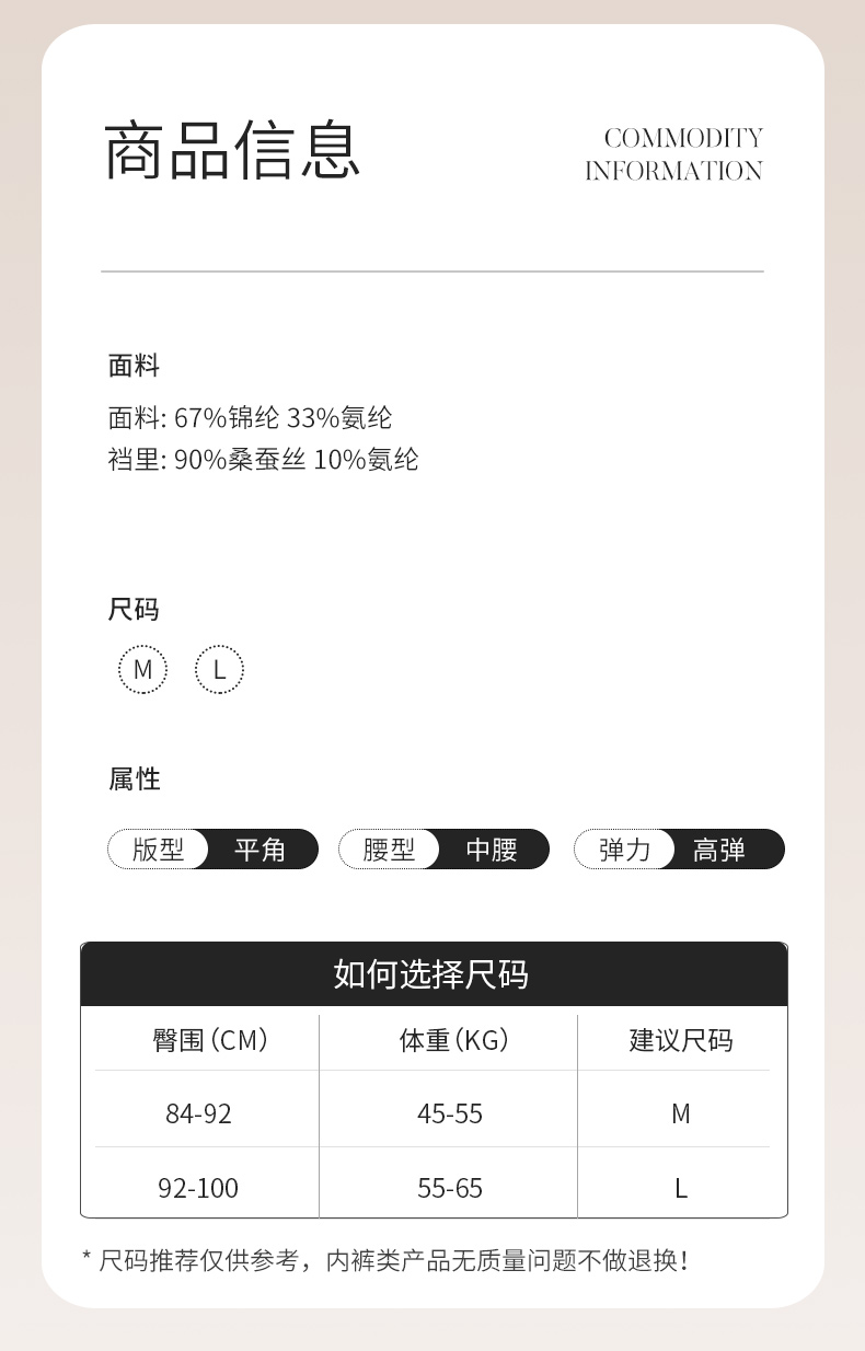 【2条装】金三塔桑蚕丝裆女真丝中腰高弹无痕抗菌三角裤内裤女春夏新品 (私密物品不支持退换) NZFDB201