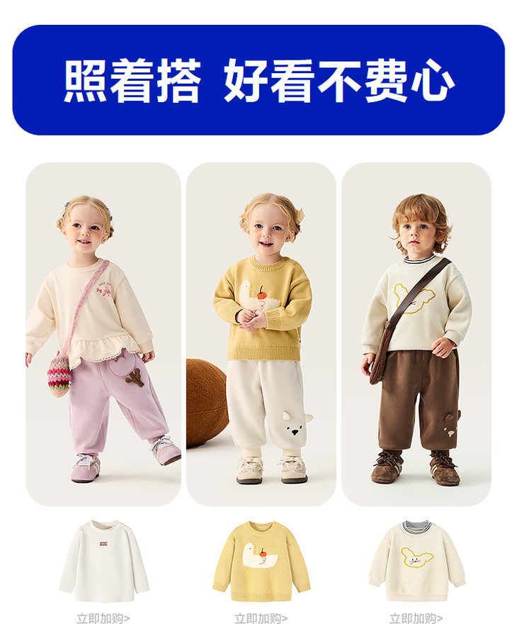 [屁侠推荐]巴拉巴拉balaOne 迷你巴拉可爱蹦蹦裤 保暖双面绒儿童长裤 多色可选