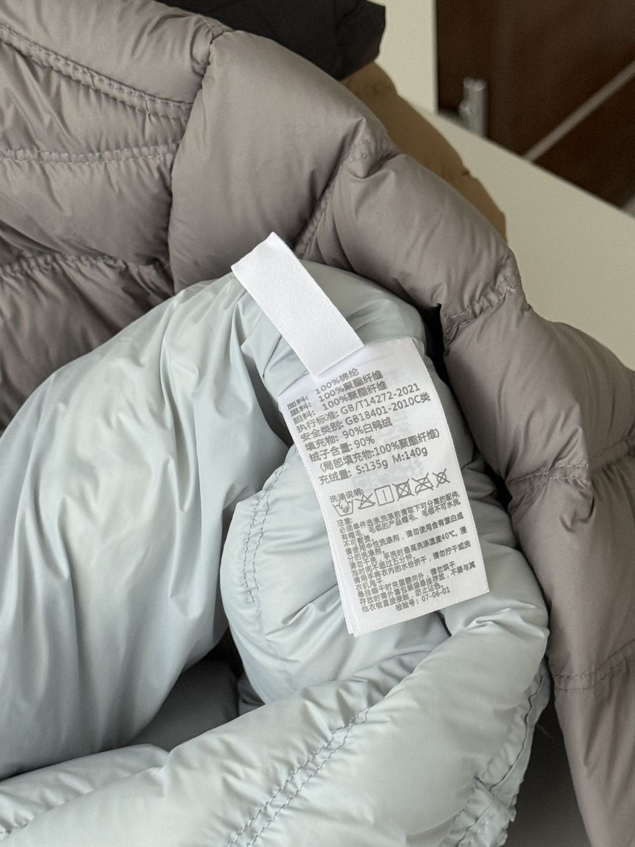 M 衣长48 肩宽45 胸围118 充绒量140g 建议体重115-130斤