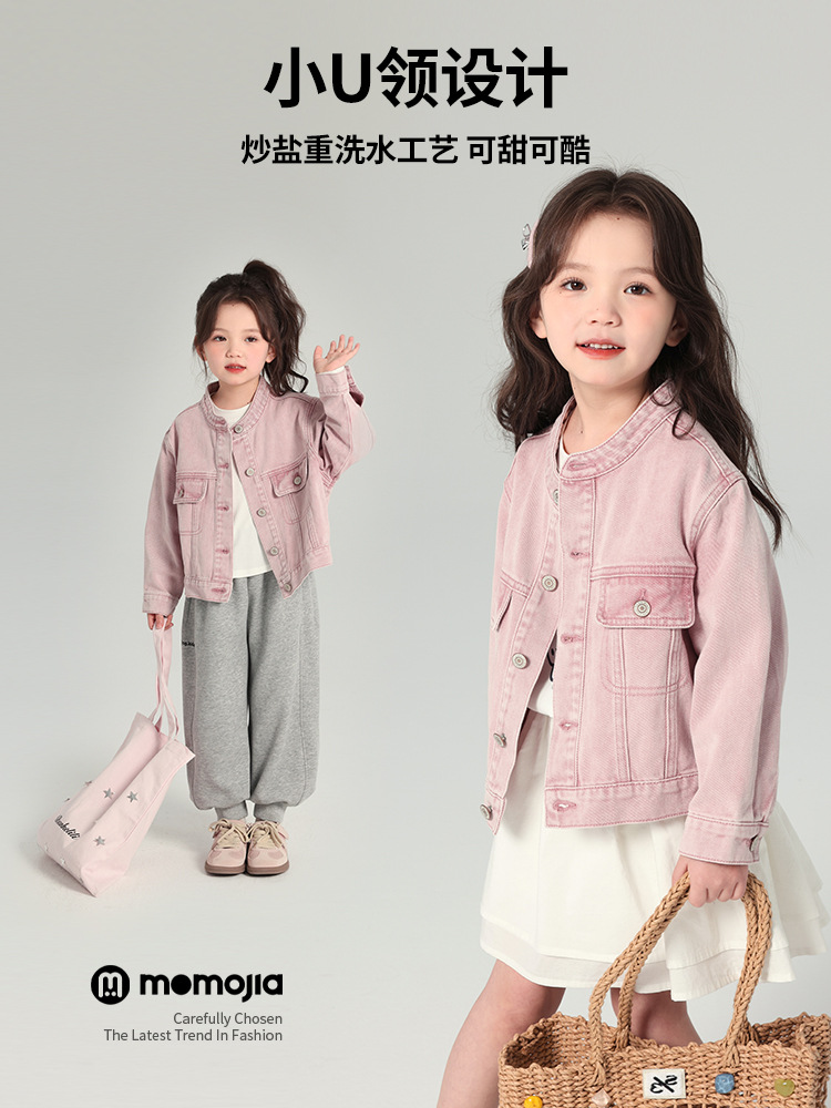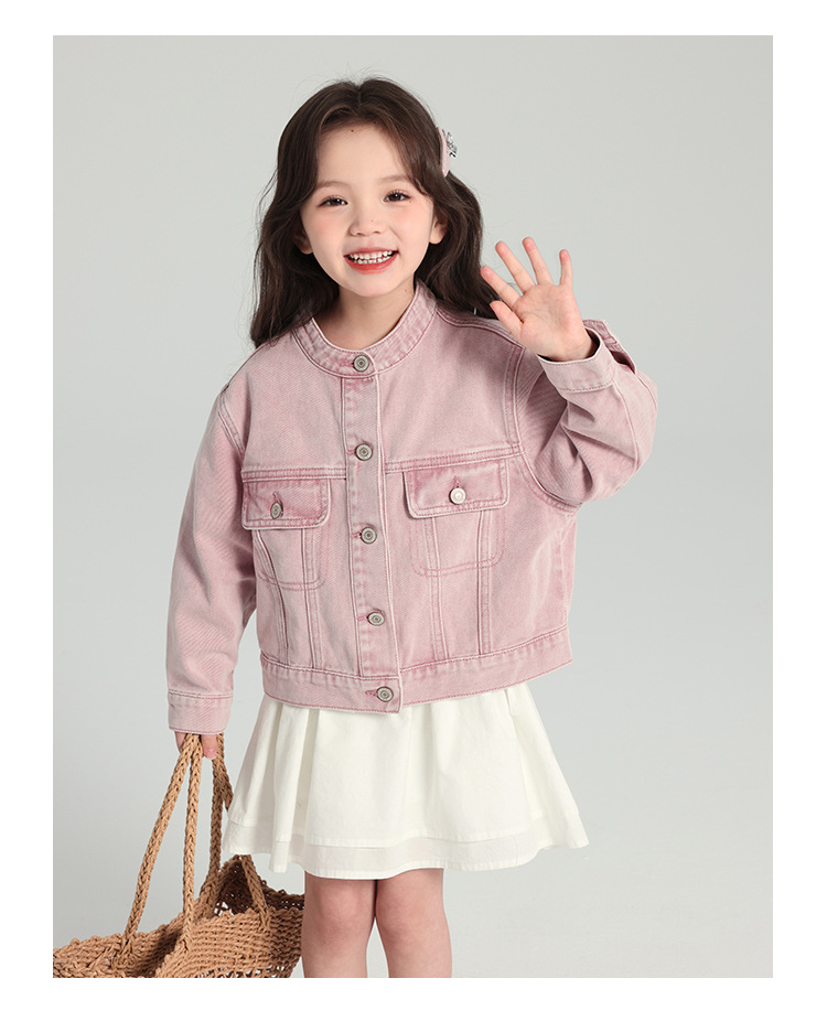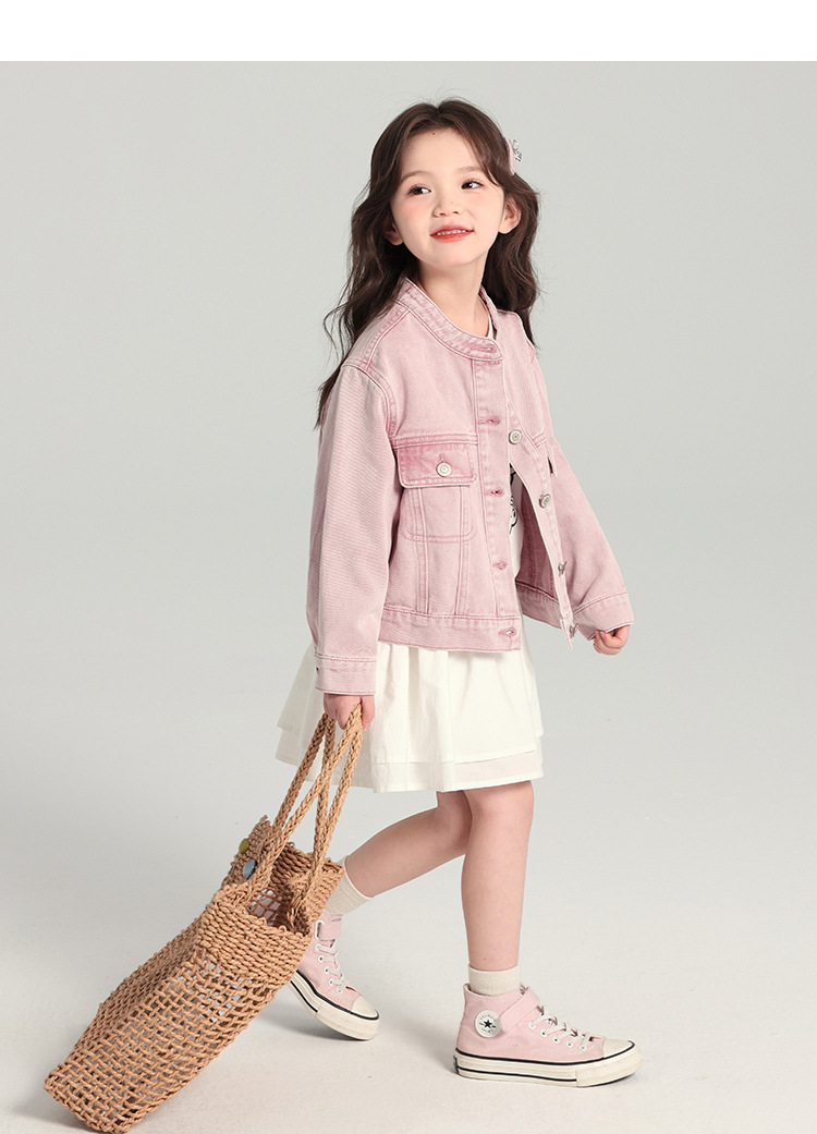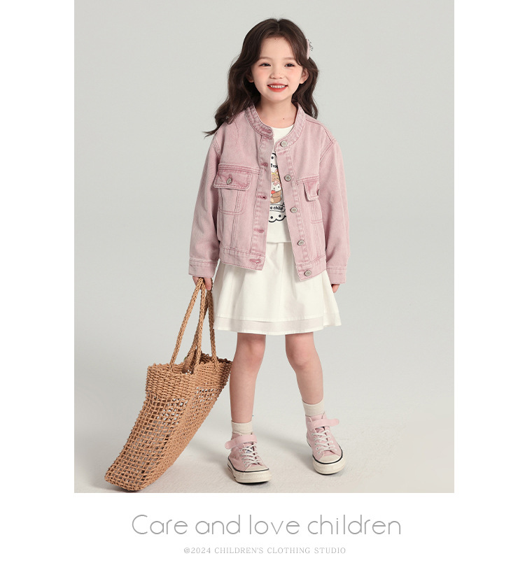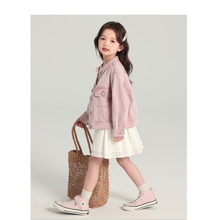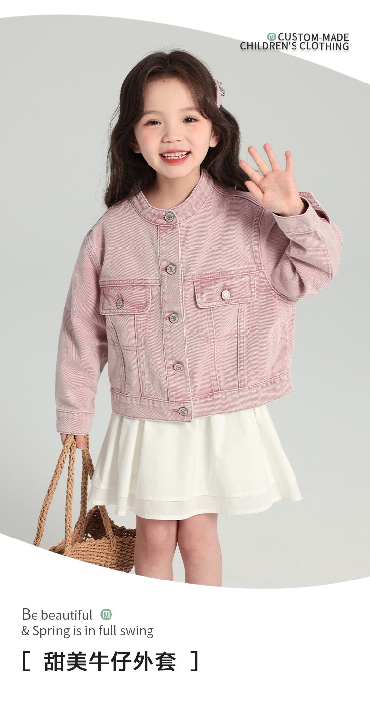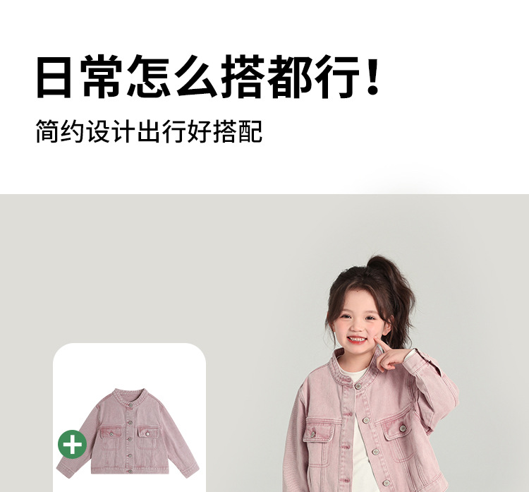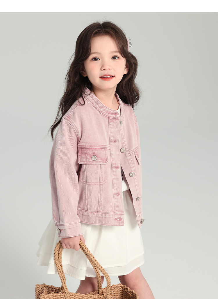 春装女童上衣2025春季新款儿童百搭洋气粉色牛仔外套!