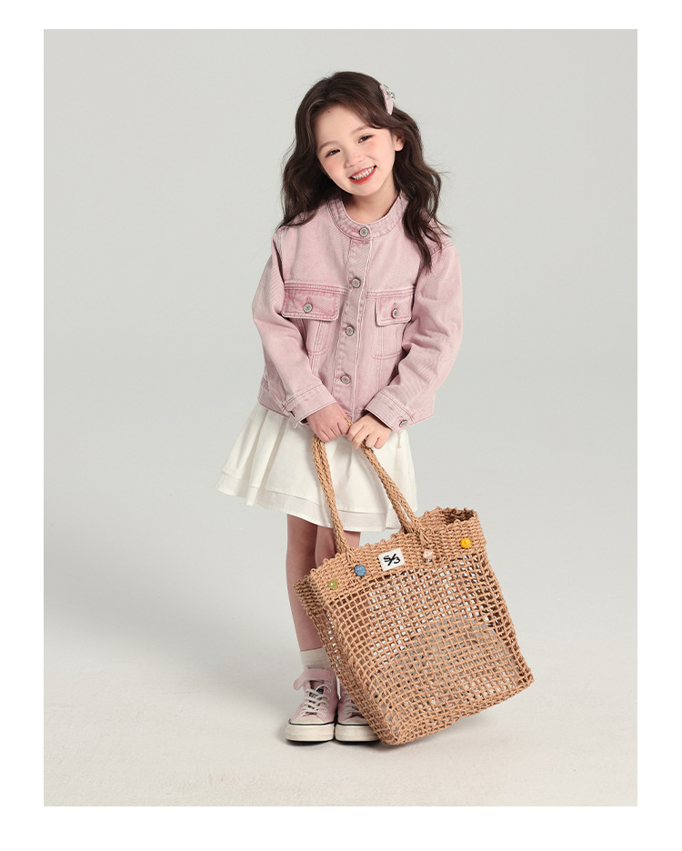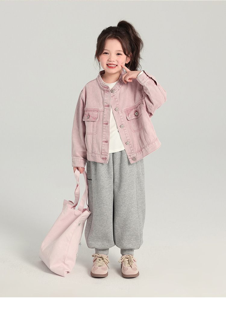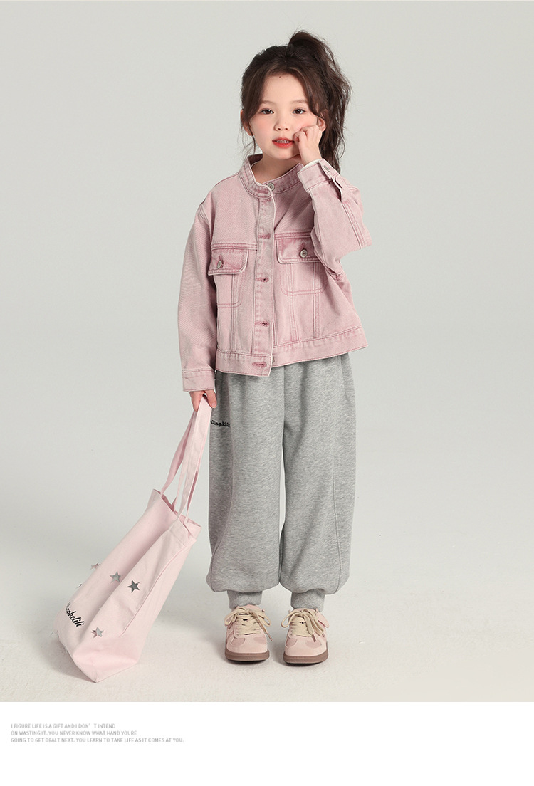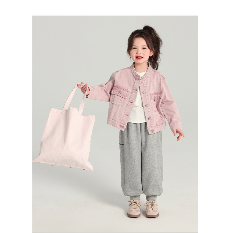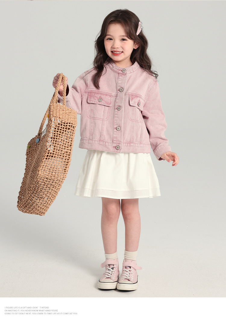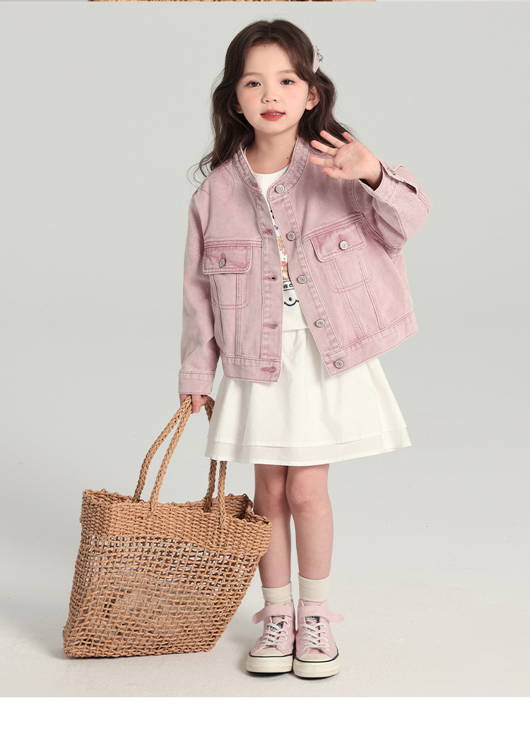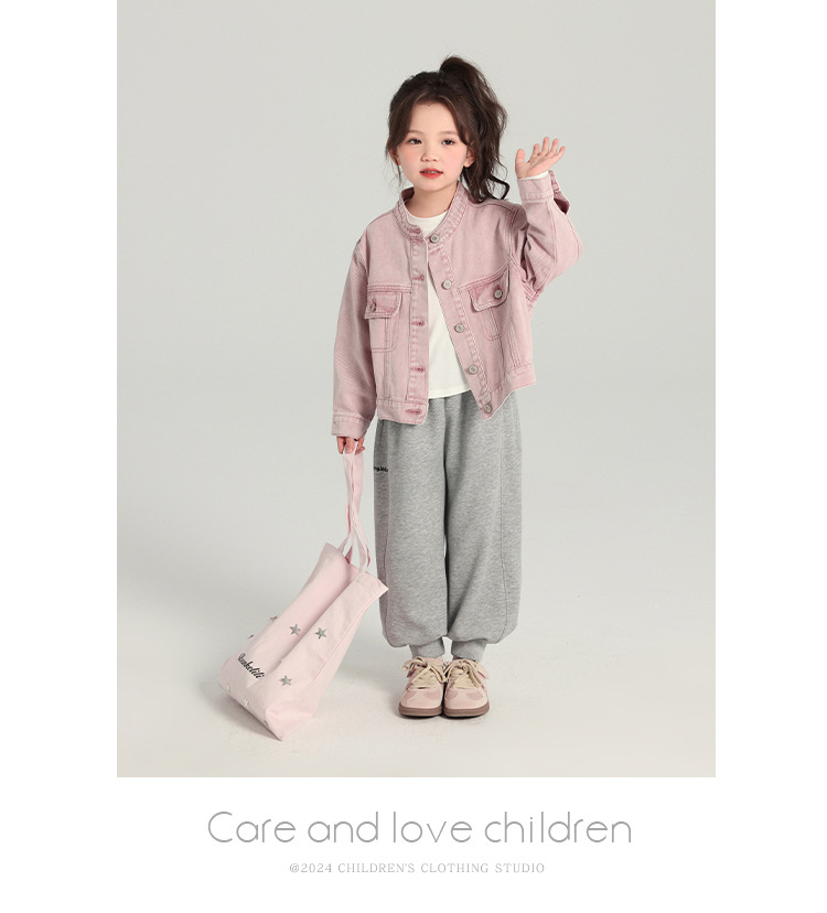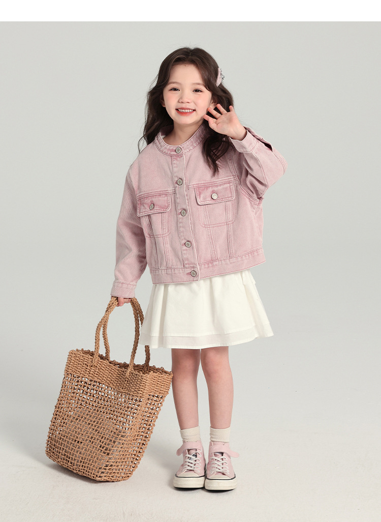 春装女童上衣2025春季新款儿童百搭洋气粉色牛仔外套!