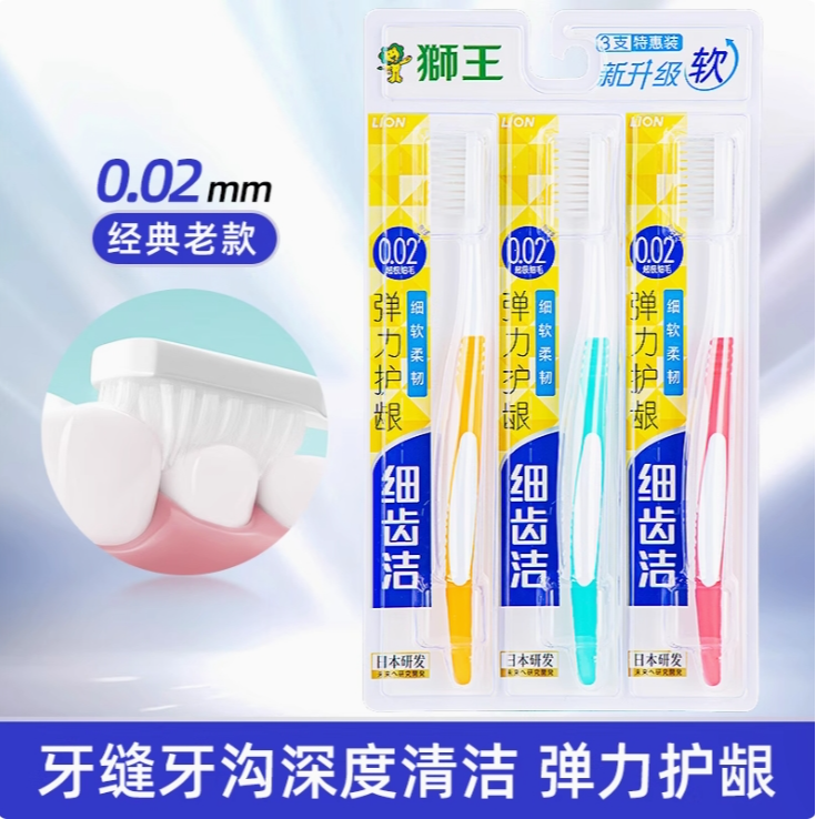 狮王细齿洁弹力护龈 牙刷(3支特惠装)